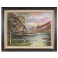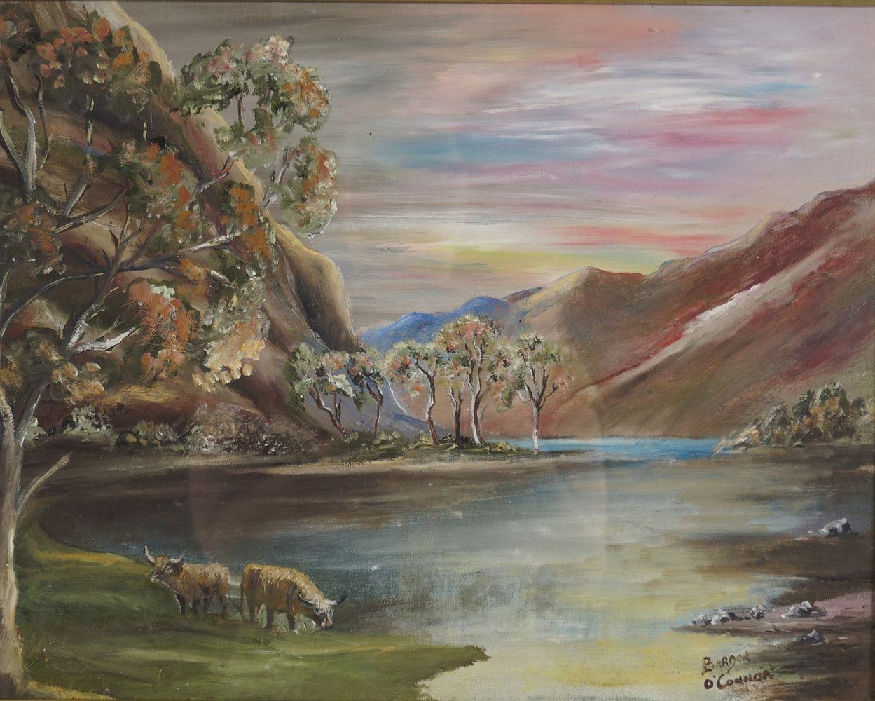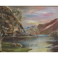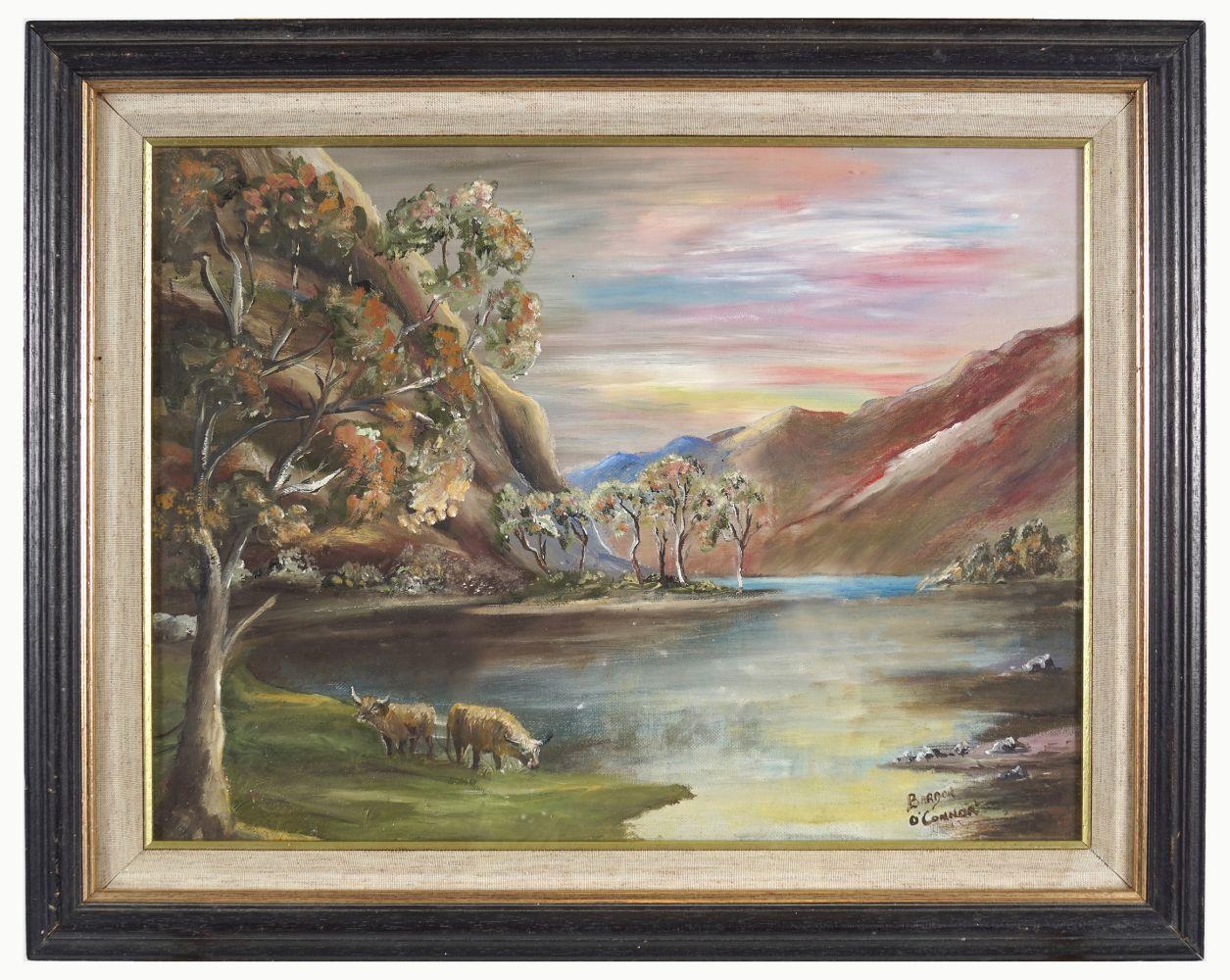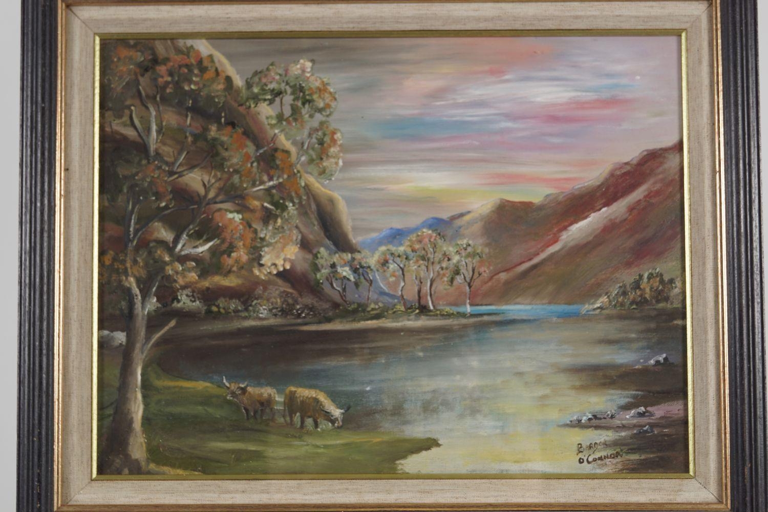 Cattle in a landscape. Signed oil on board. 29 x 39 cm.