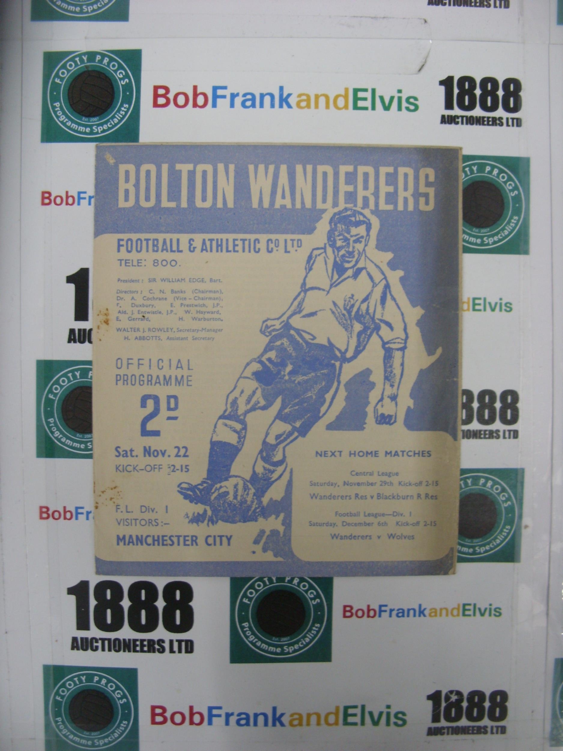 BOLTON WANDERERS, 1947/1948, a football programme from the game versus Manchester City, played on 22/11/1947 (pin hole in corner, slight marked/stained, folded).