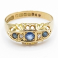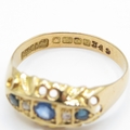 18ct Gold Diamond and Sapphire Boat Ring (2.2g) Size N