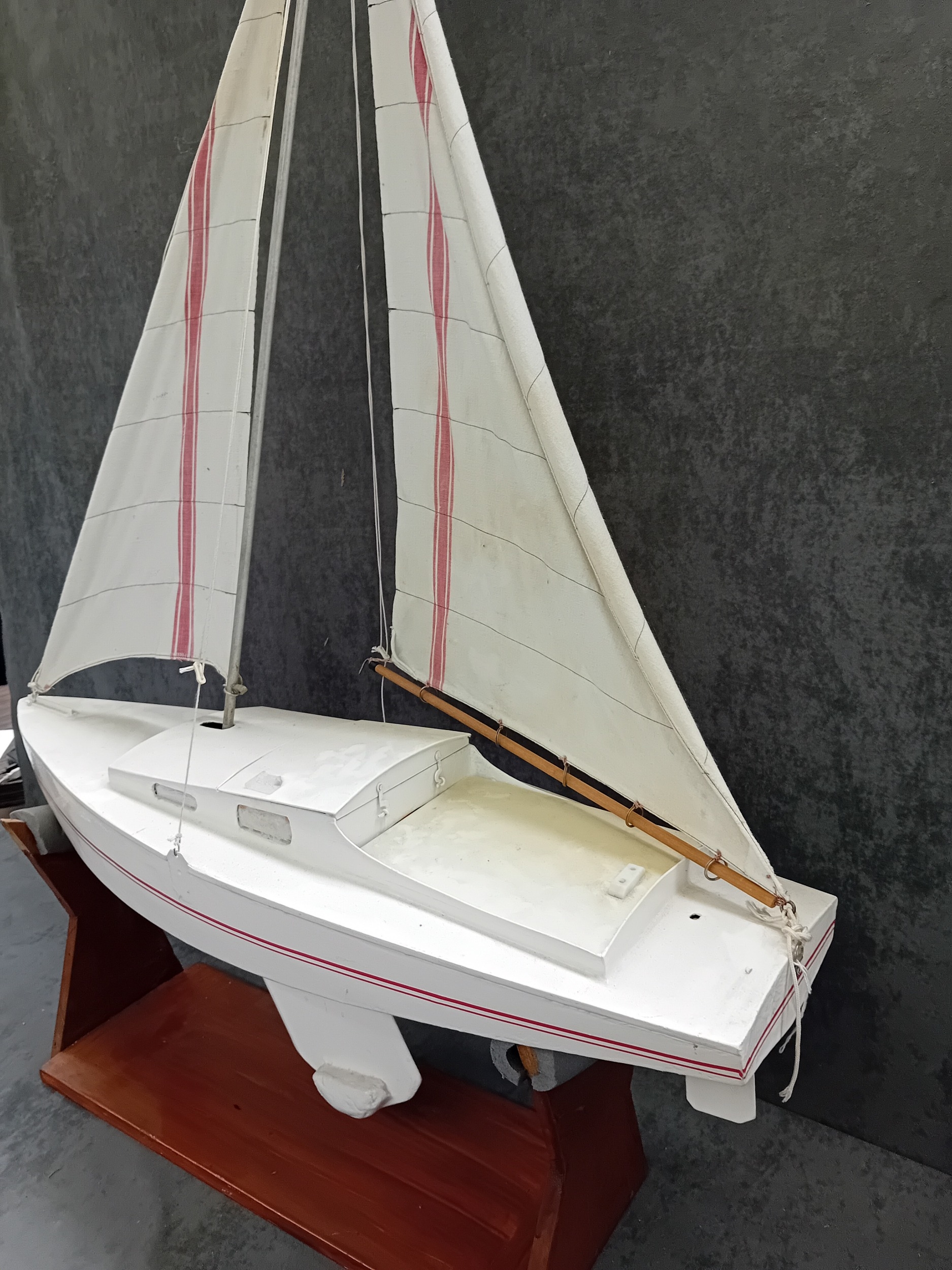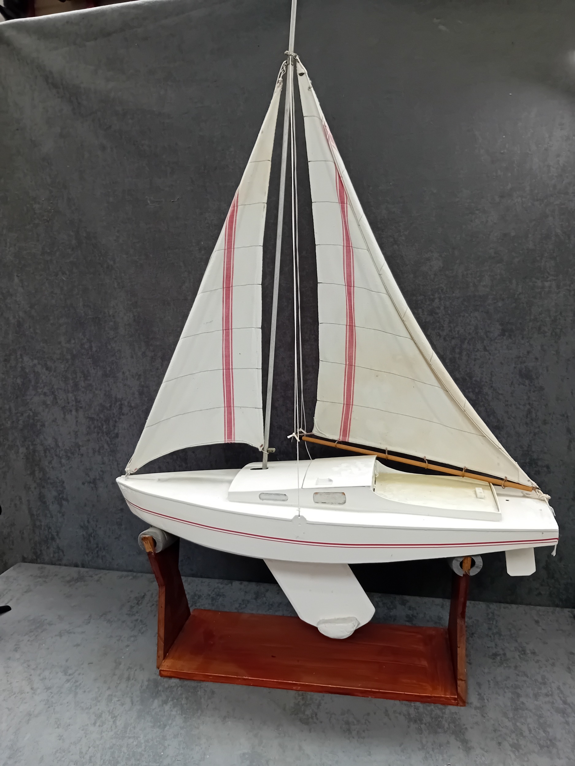 Large model sail boat White with stand size is 88cm long 150cm tall 31cm deep