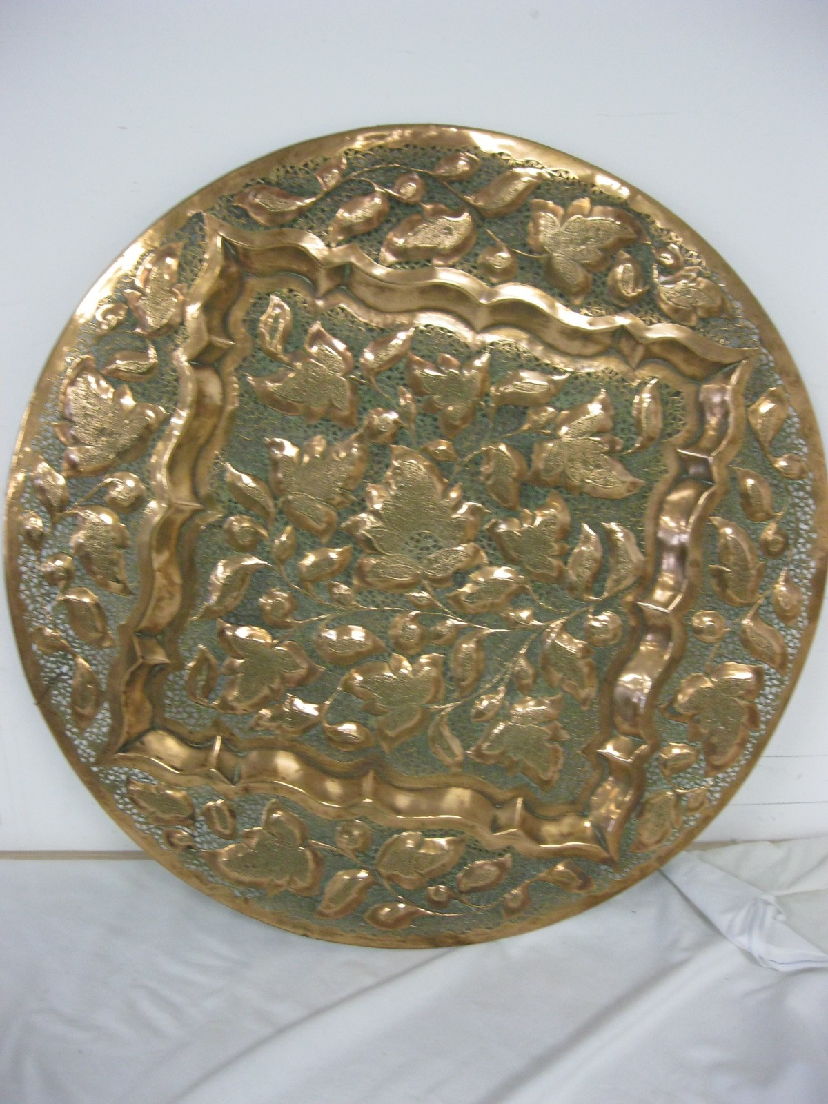 A reticulated copper plaque in good order, interesting design