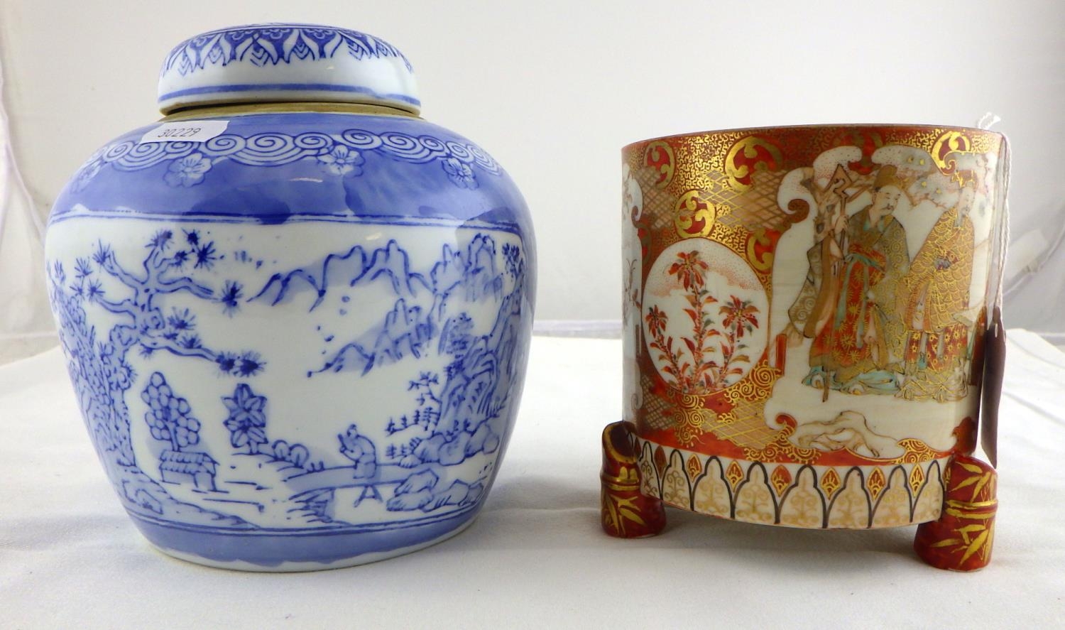 A Kutani pot 12cm (cracked base) together with a modern Ginger jar (2)