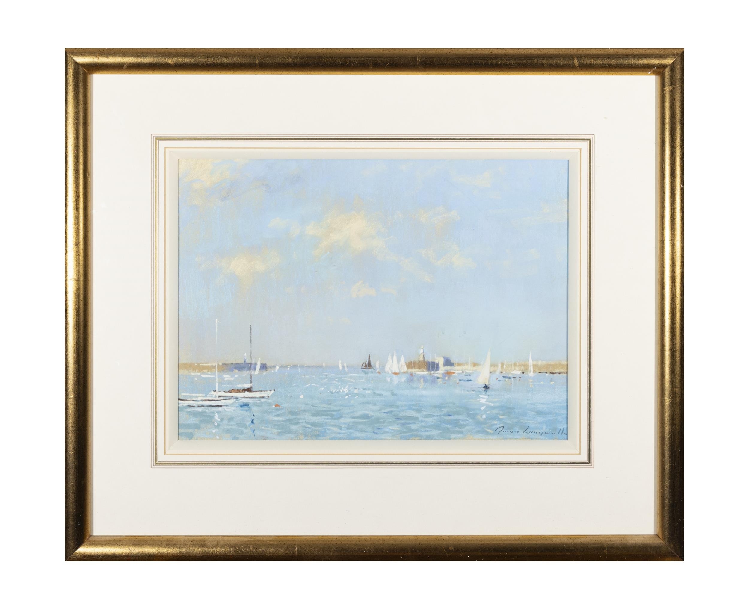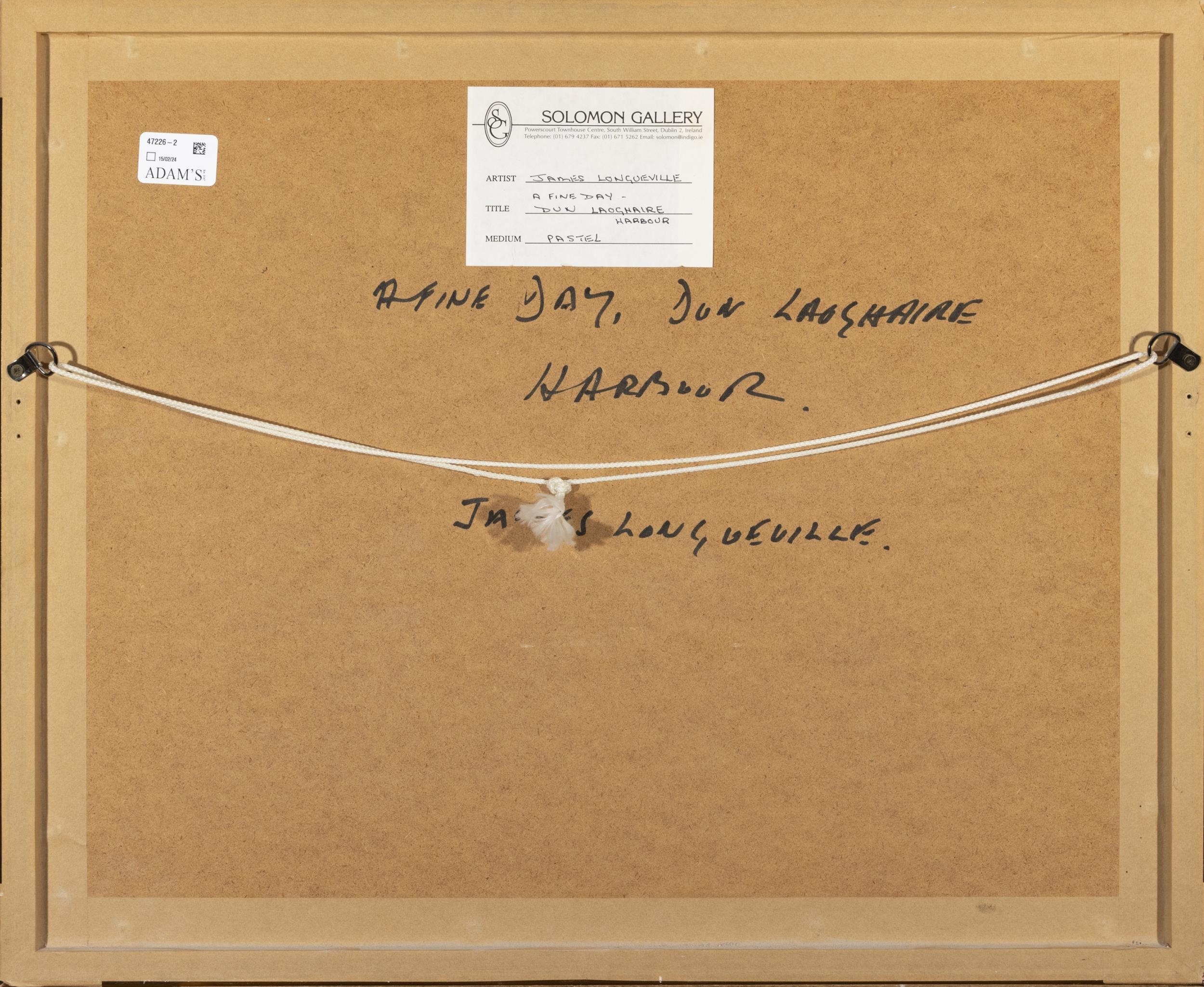James Longueville RBSA (b.1943) 'A Fine Day, Dun Laoghaire Harbour' Pastel, 27 x 37cm Signed; signed and inscribed with title verso Provenance: Solomon Gallery, label verso