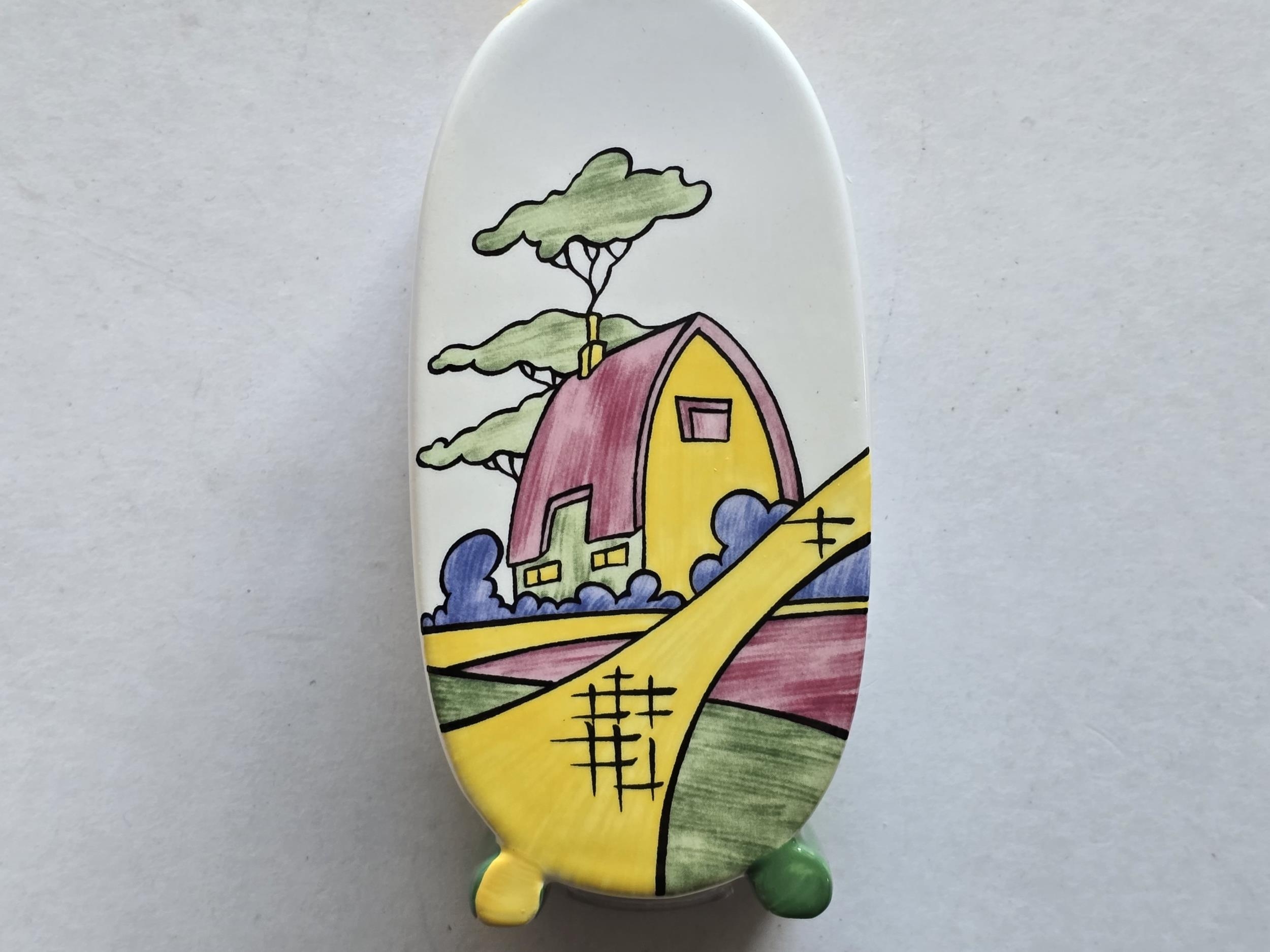 Wedgwood Pottery - Sugar Shaker, Clarice Cliff Bizarre Collection tribute, with a typical 30's design style on both side of the sugar shaker. Approx: 5ins high, 2 3/8th ins across. Boxed.