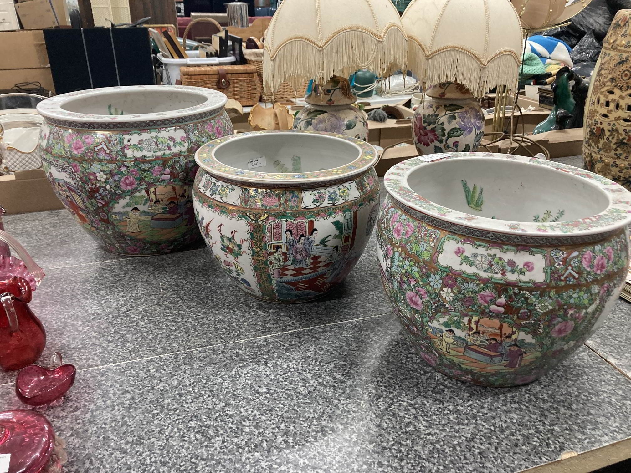 3 Japanese satsuma style planters 30x37, 25 x 32 (2) cm