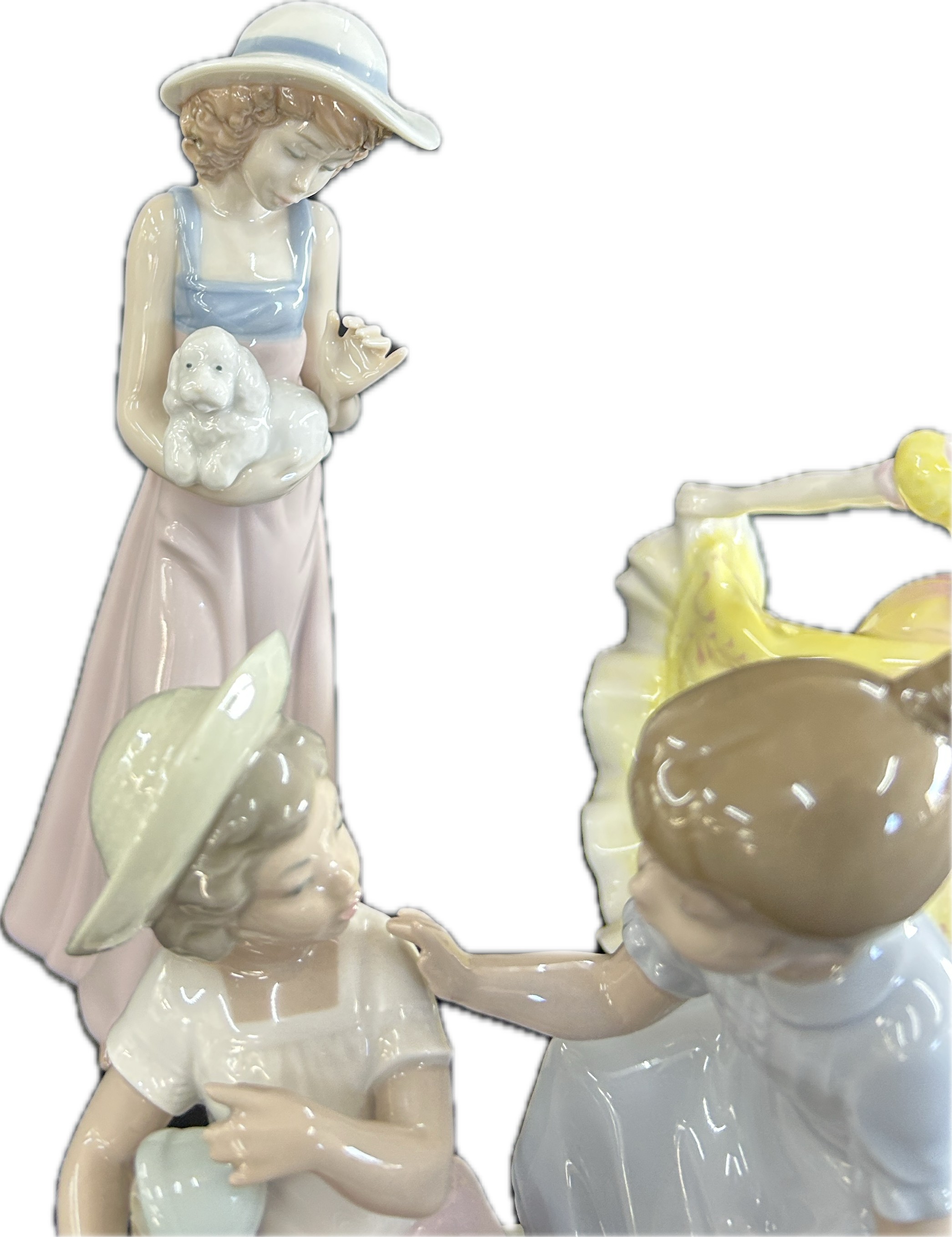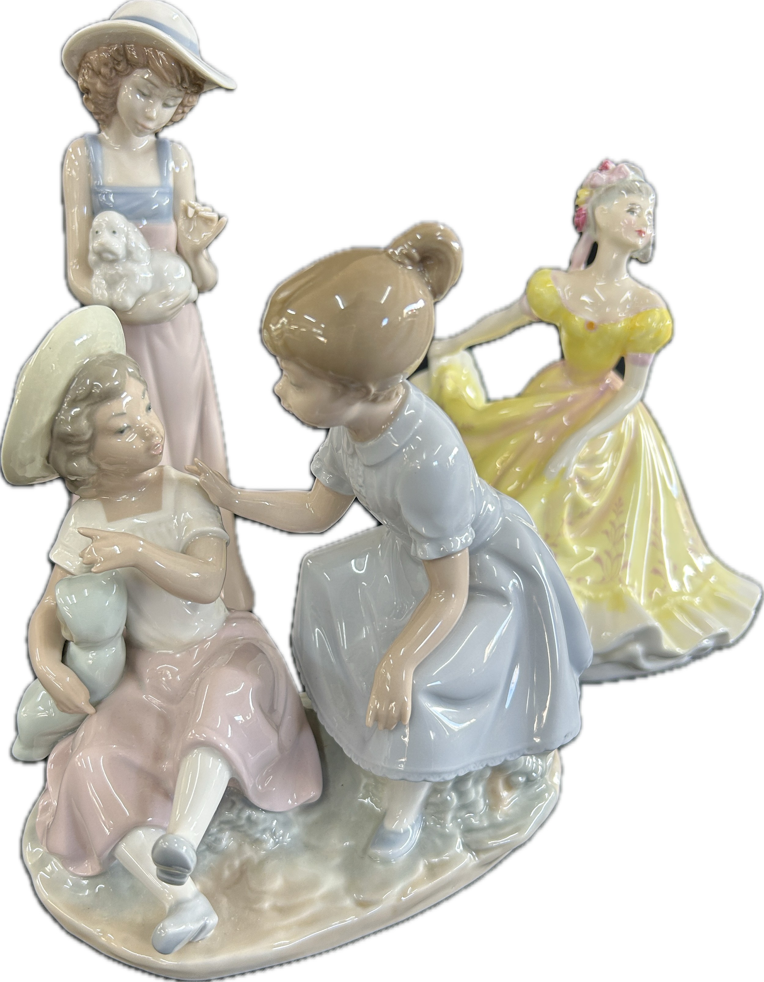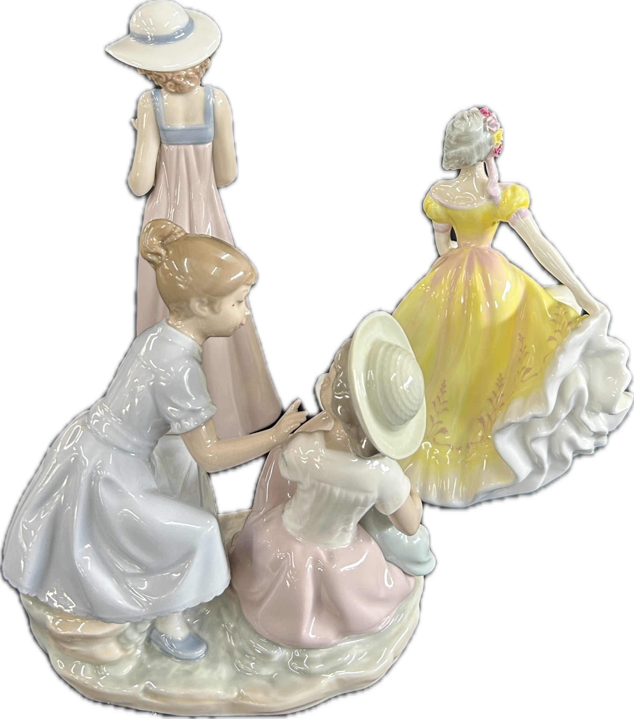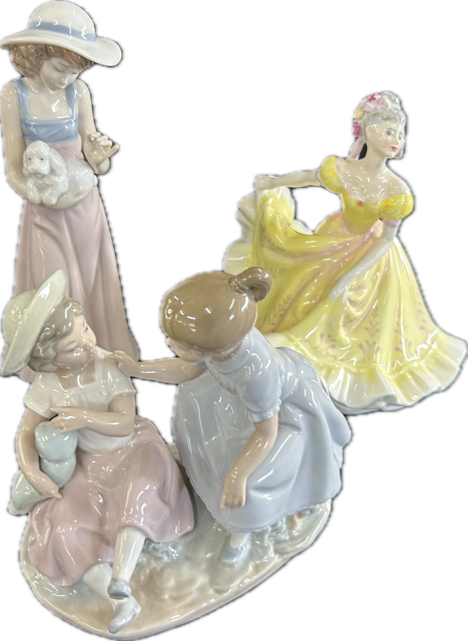 Three vintage porcelain figurines one Royal Doulton, two Nao, tallest measures approximately: 10 inches tall