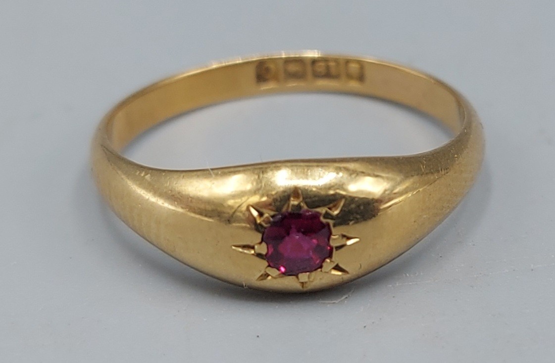 An 18ct gold ring, 3.6gms, ring size O