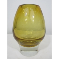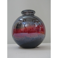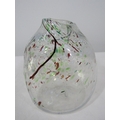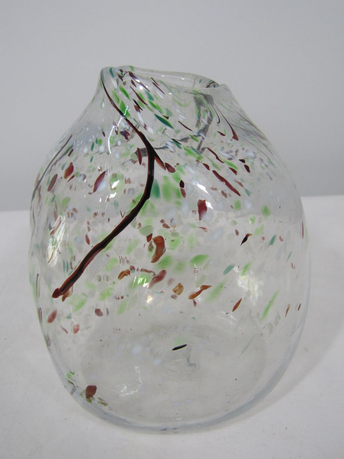 Probably Venetian mottled glass vessel of organic form with lobed detail and various colourful sprays, 15cm high