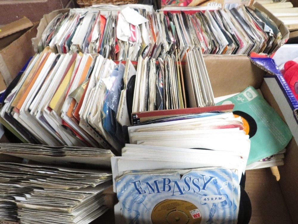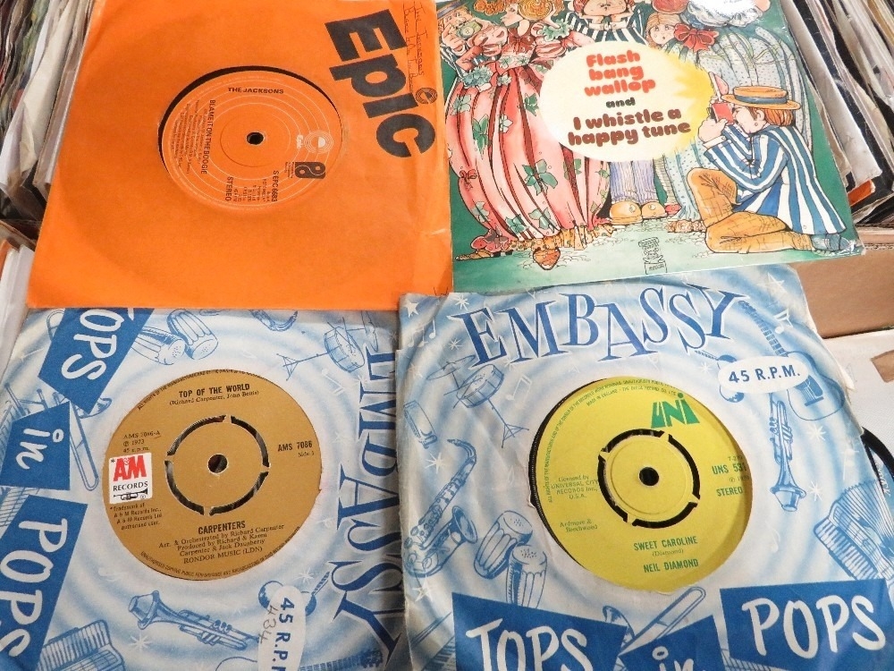 Two trays of assorted 7" singles records to include Carpenters and Bad Manners