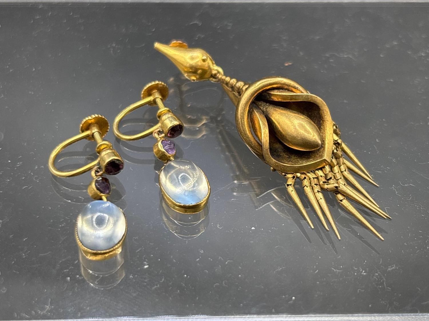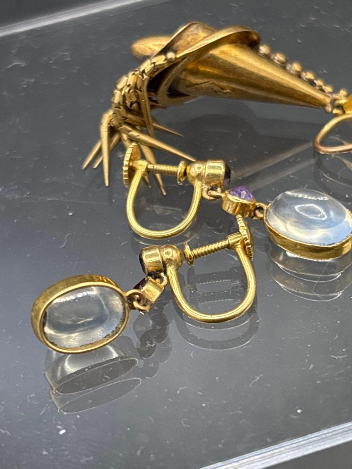A pair of moonstone ear-rings and another pair 3.4g