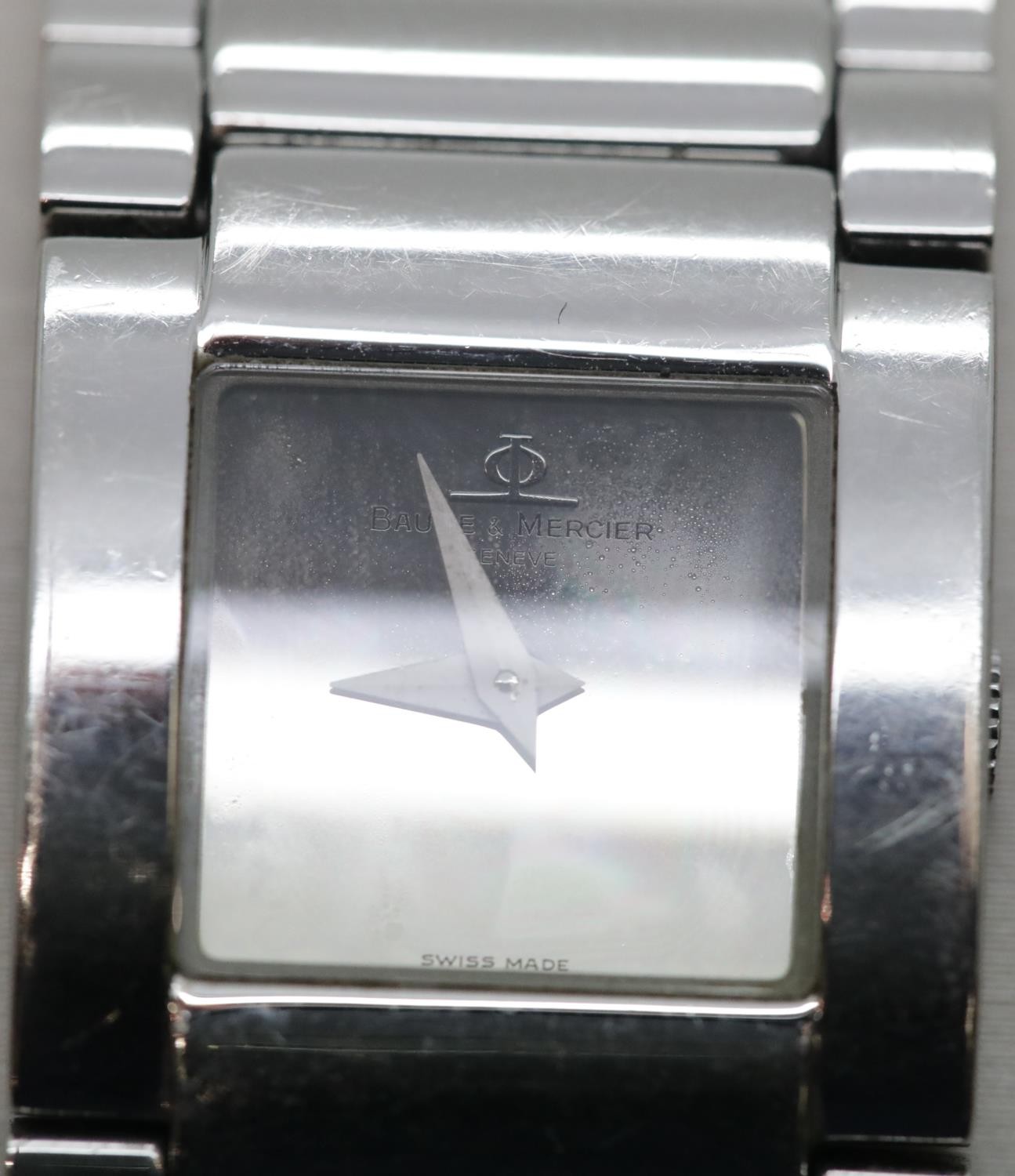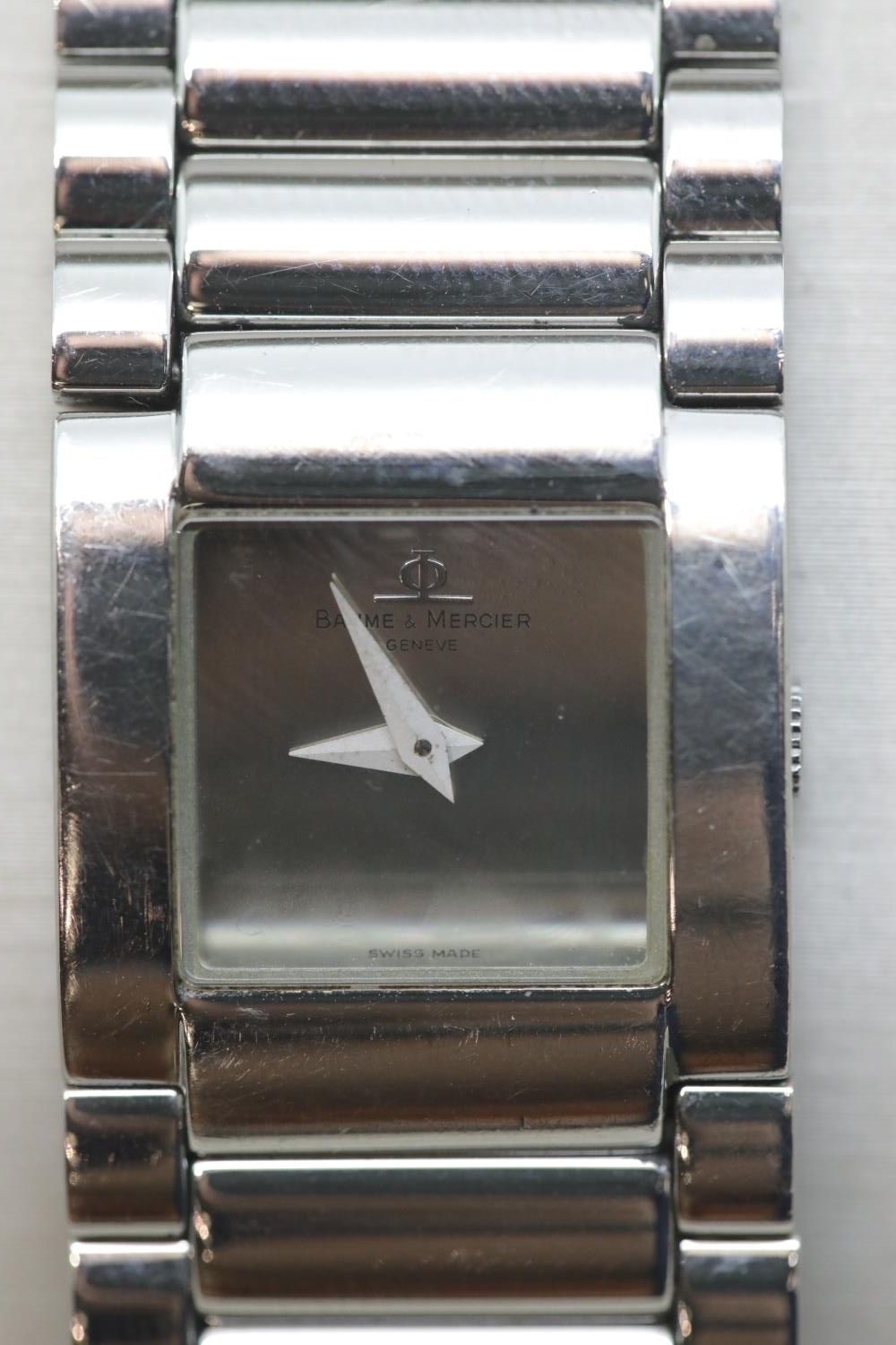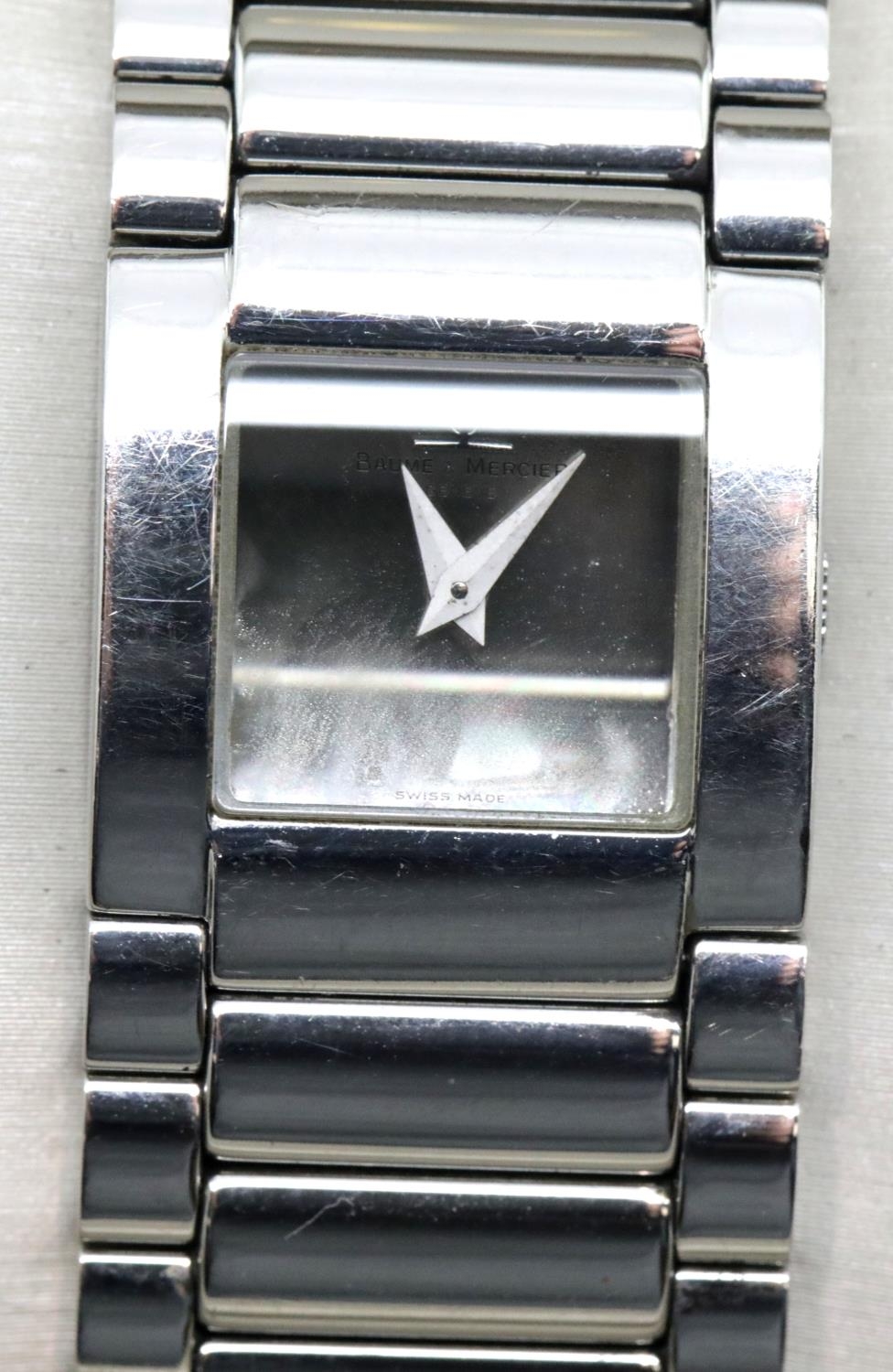 Ladies Baume and Mercier stainless steel Catwalk wristwatch with swiss made quartz movement, sapphire crystal, push/pull concealed crown, stainless steel bracelet with butterfly clasp/closure, high polished stainless steel with a mirrored dial and silvertone dauphine hands, water resistant up to 98 feet, with box and papers. P&P Group 1 (£14+VAT for the first lot and £1+VAT for subsequent lots)