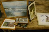 2 Coats of arms and a box of various pictures