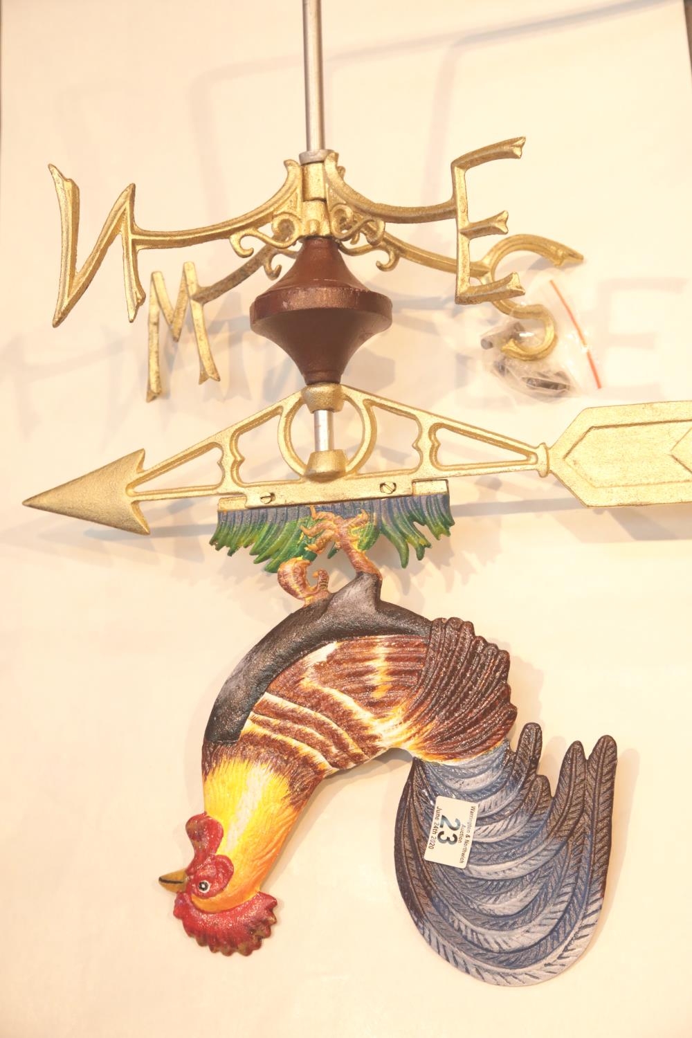 Cast iron cockerel wall mounted weathervane. This lot is not available for in-house P&P.