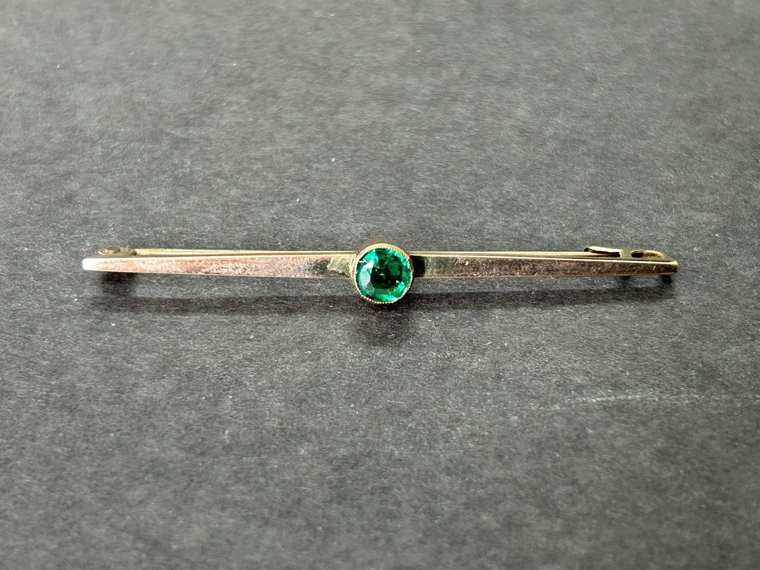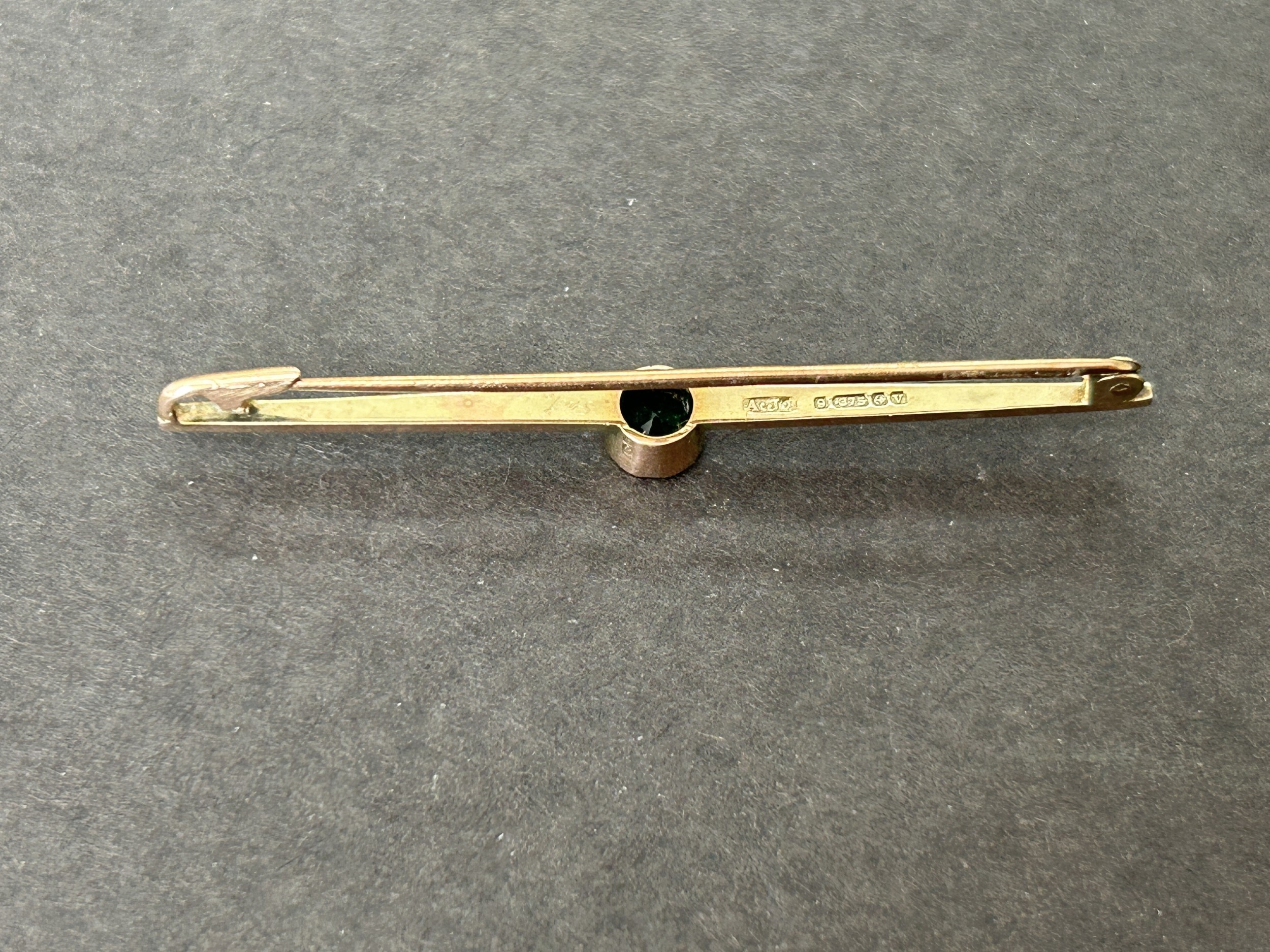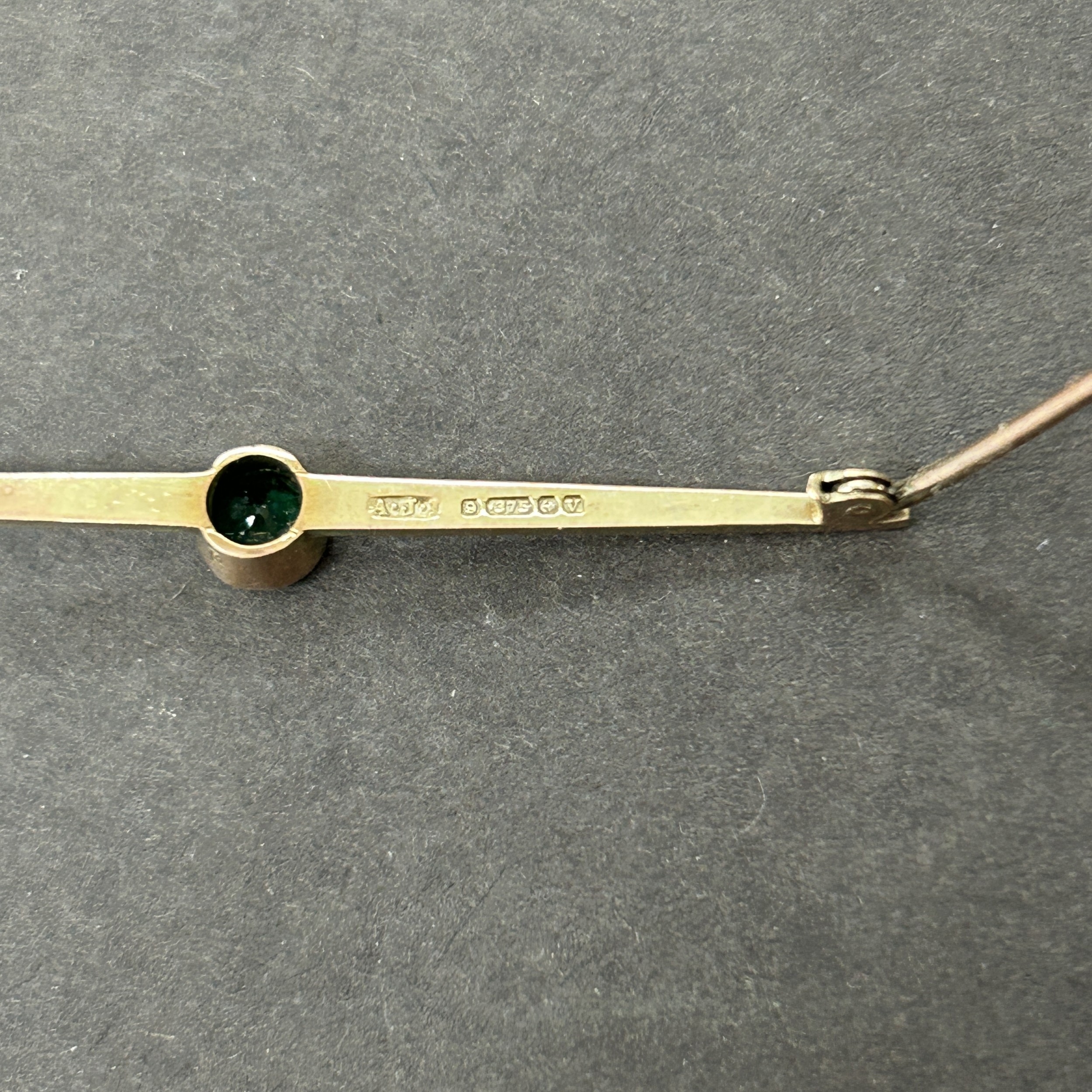 A 9ct gold and green stone set brooch, weight approx. 2.3g