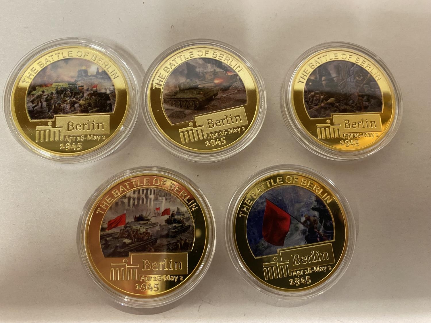 Set of 5 Battle of Berlin Challenge Coins in Capsules & Pouch