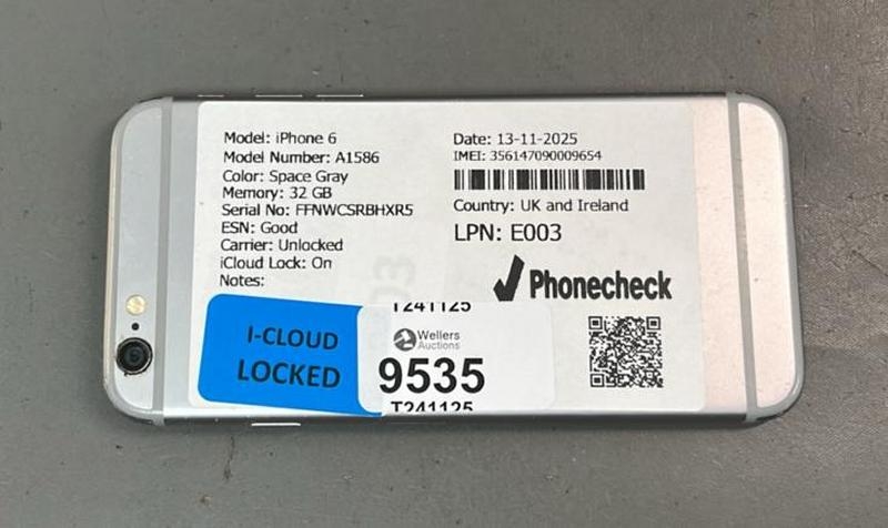 IPHONE 6/ A1586/ SPACE GRAY/32GB/ IMEI-356147090009654 (I-CLOUD LOCKED)(DISPLAY DAMAGED)