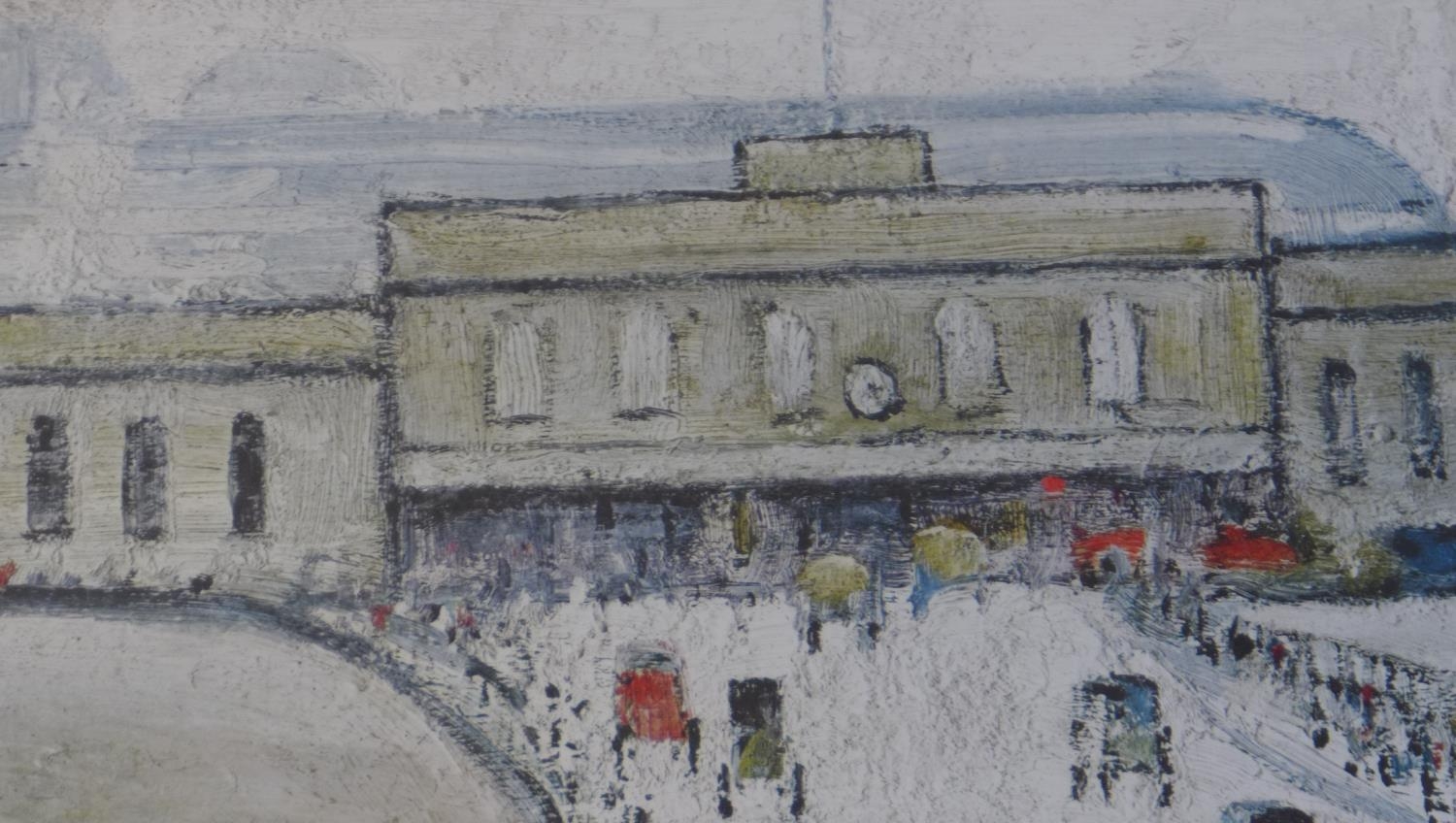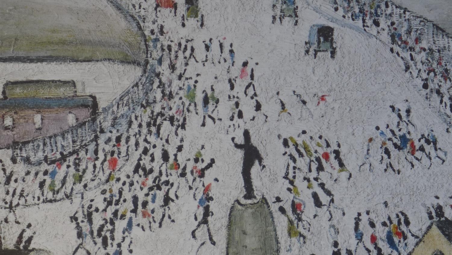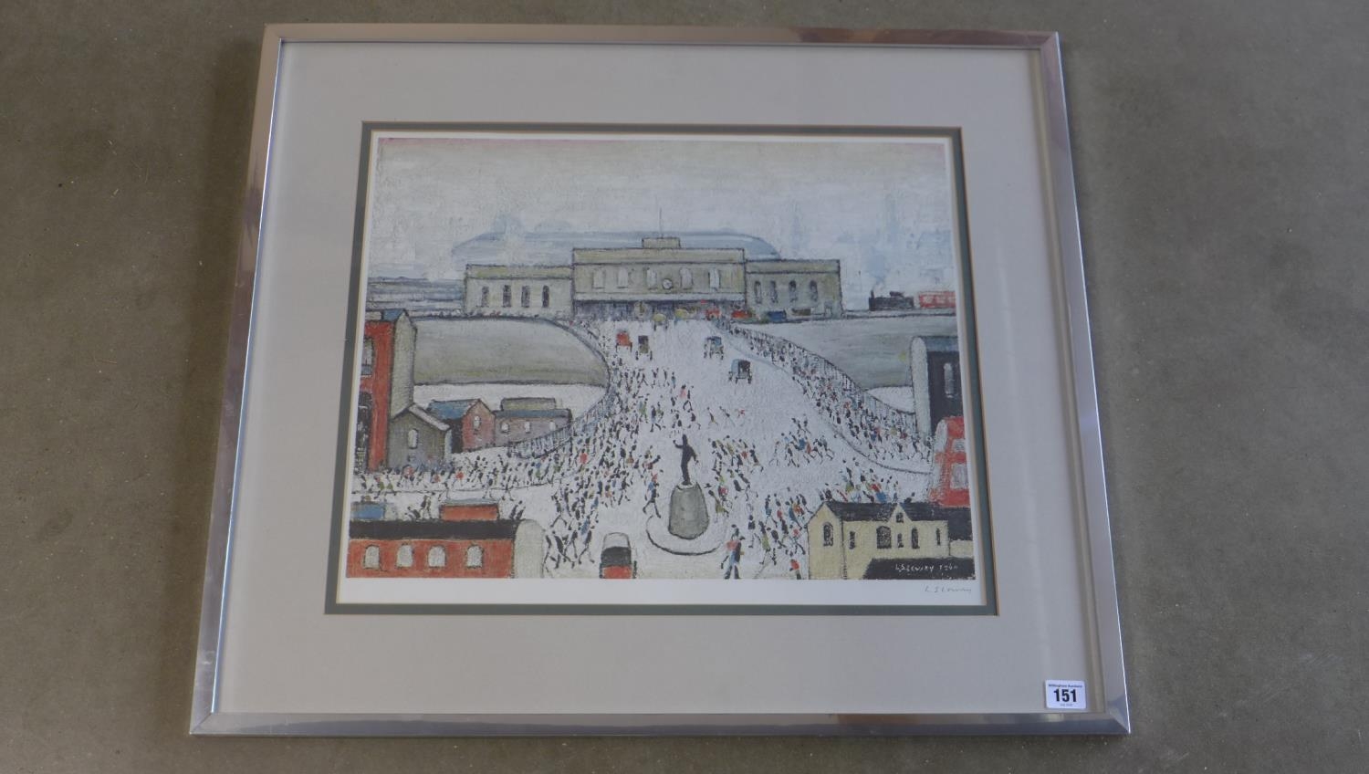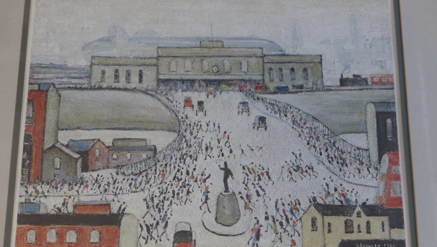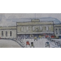 Laurence Stephen Lowry RA (1887-1976) Station Approach lithograph in colour signed in pencil bottom right - Fine Art Trade Guild blind stamp, letters BDB no 132 - picture size 43cm x 52cm - frame size 65cm x 74cm - print in good condition, minor dent to frame, Artist Resale Rights apply to this lot