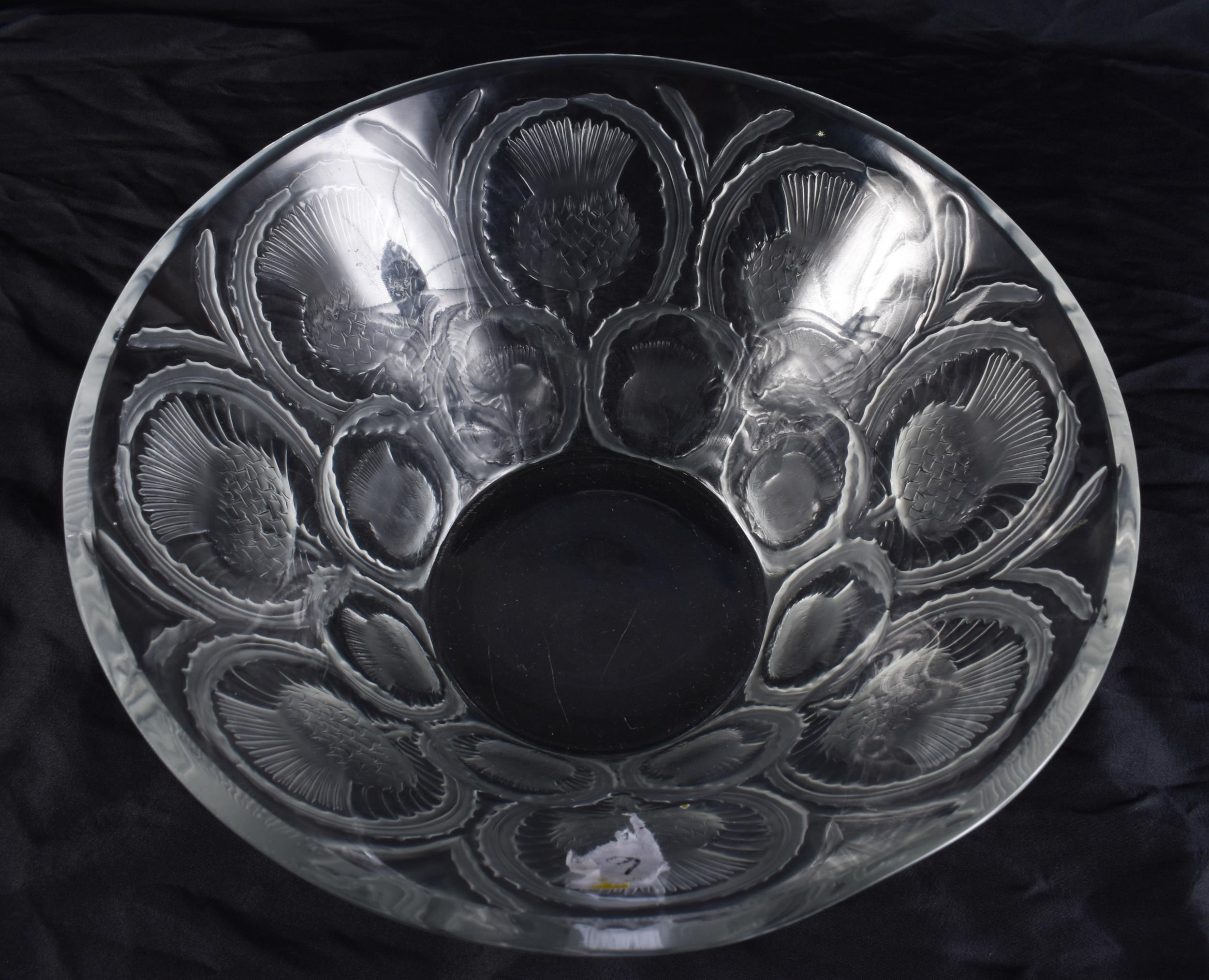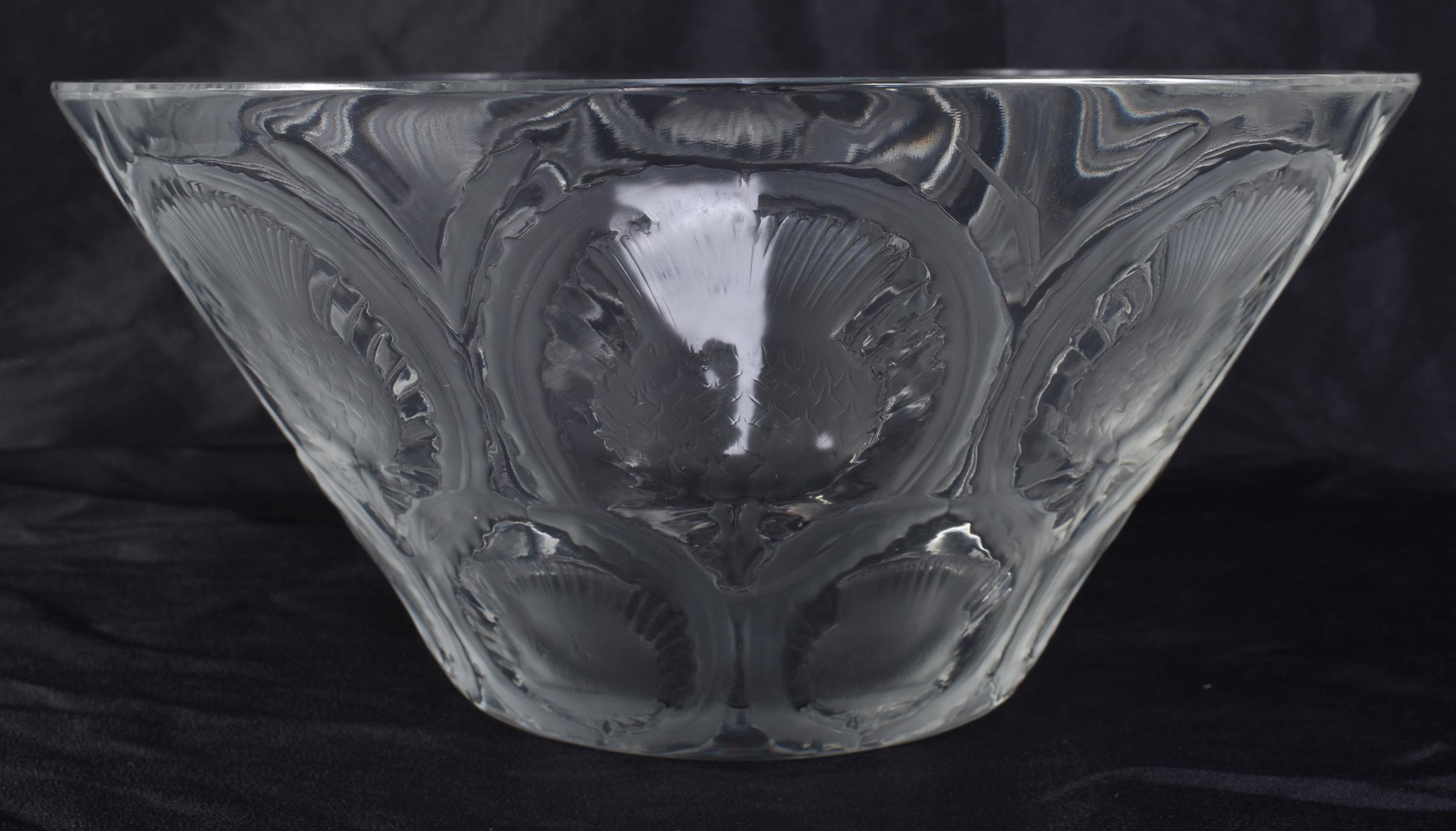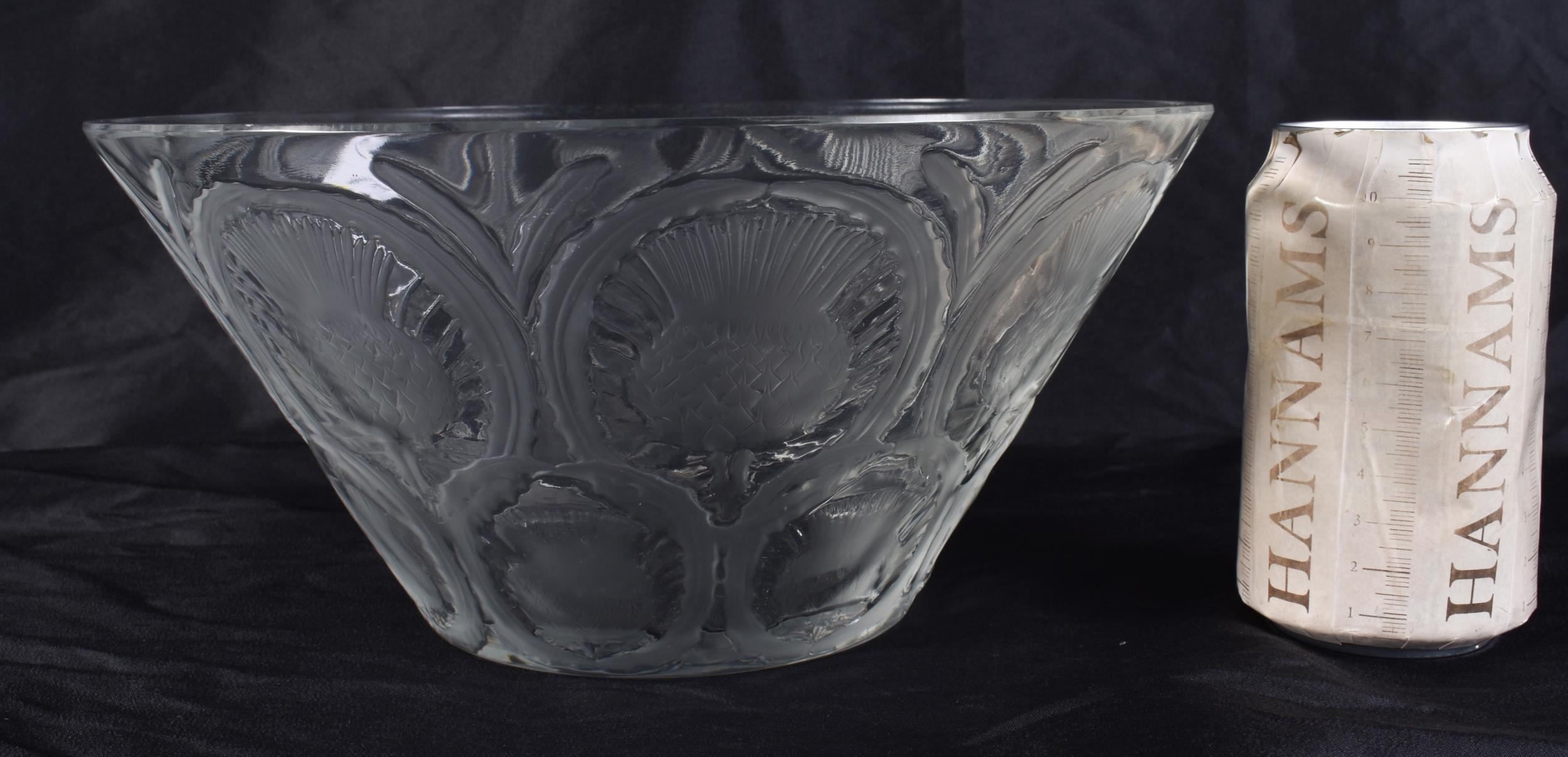 A LARGE FRENCH LALIQUE GLASS THISTLE BOWL. 24 cm wide.