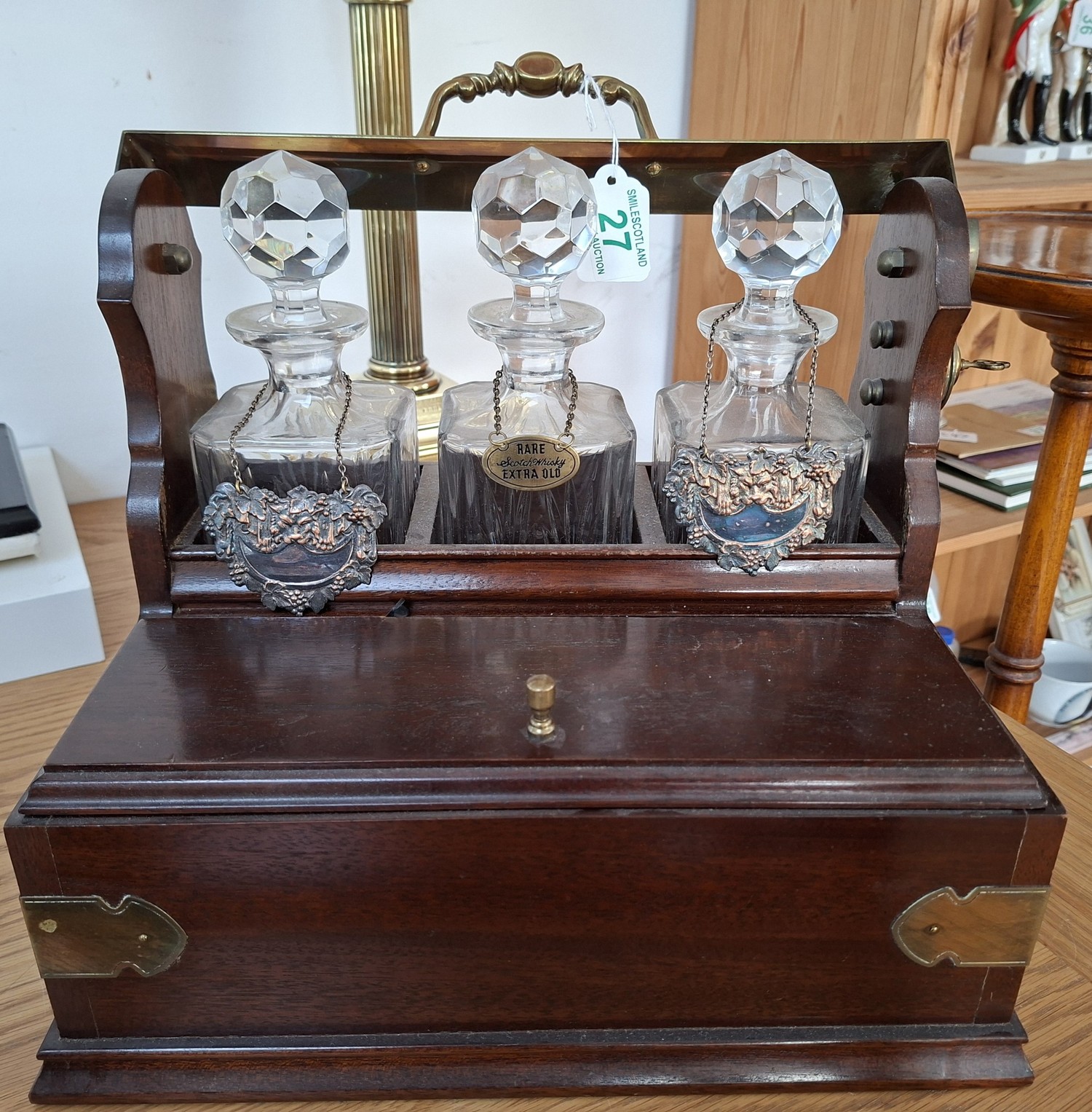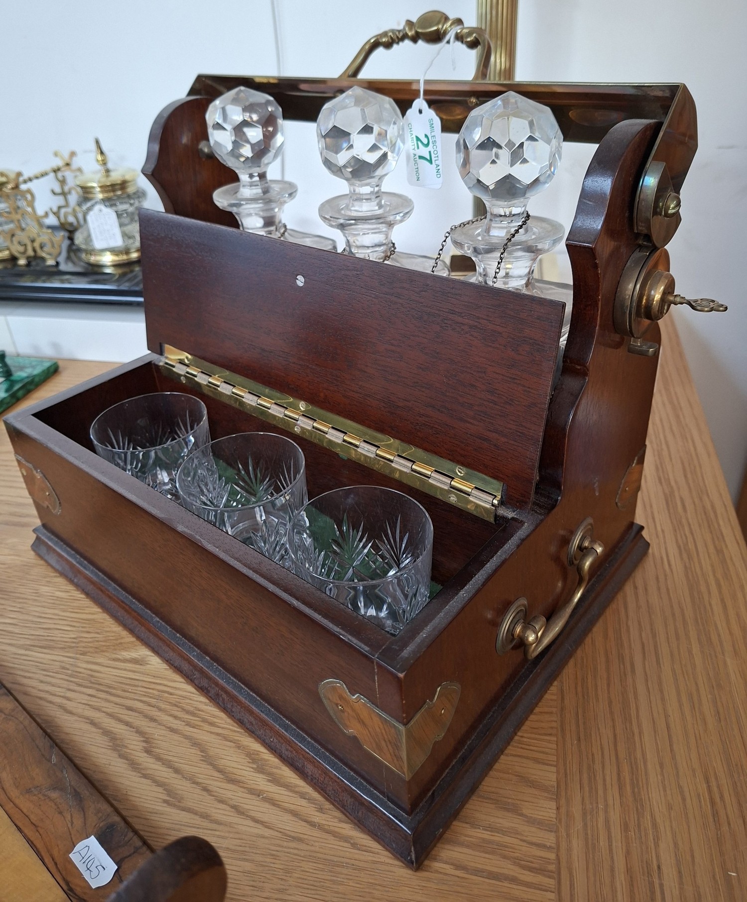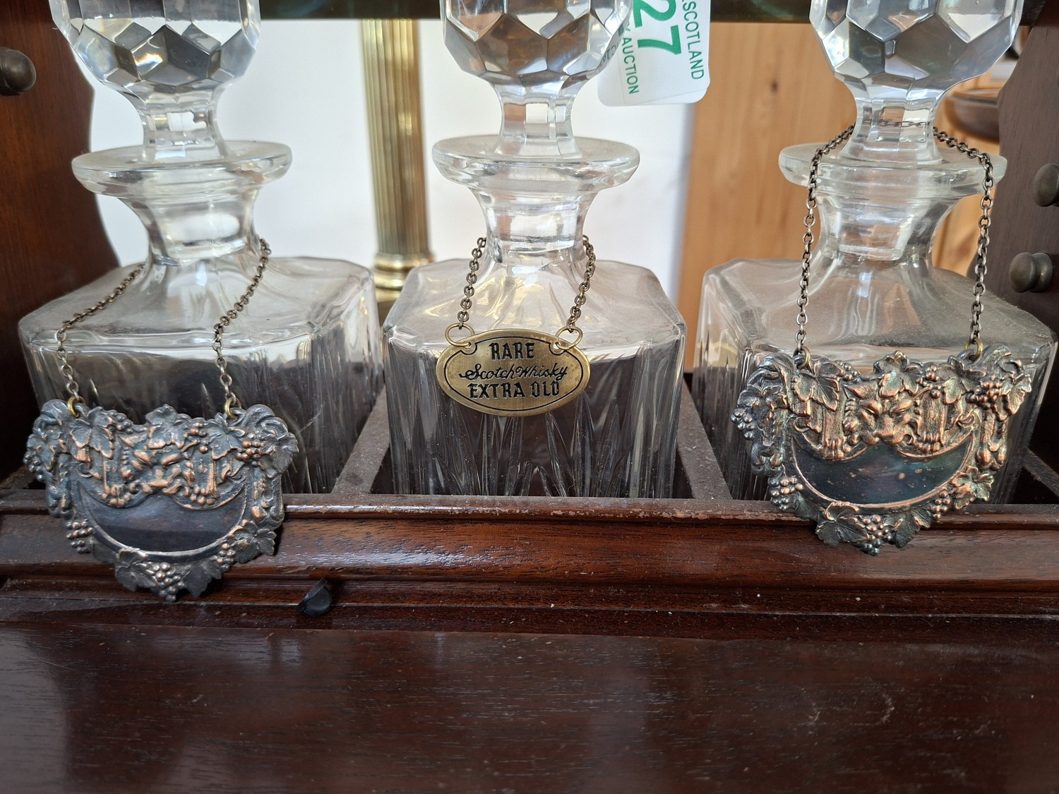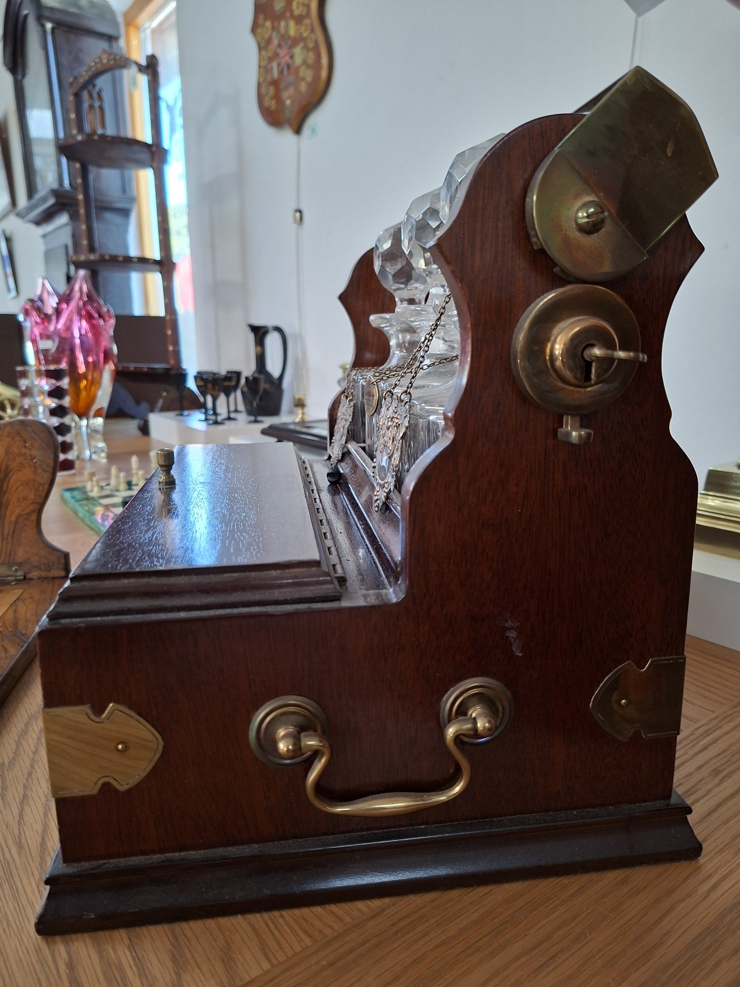 Antique tantalus with decanters and the unusual 3 glass drawer set