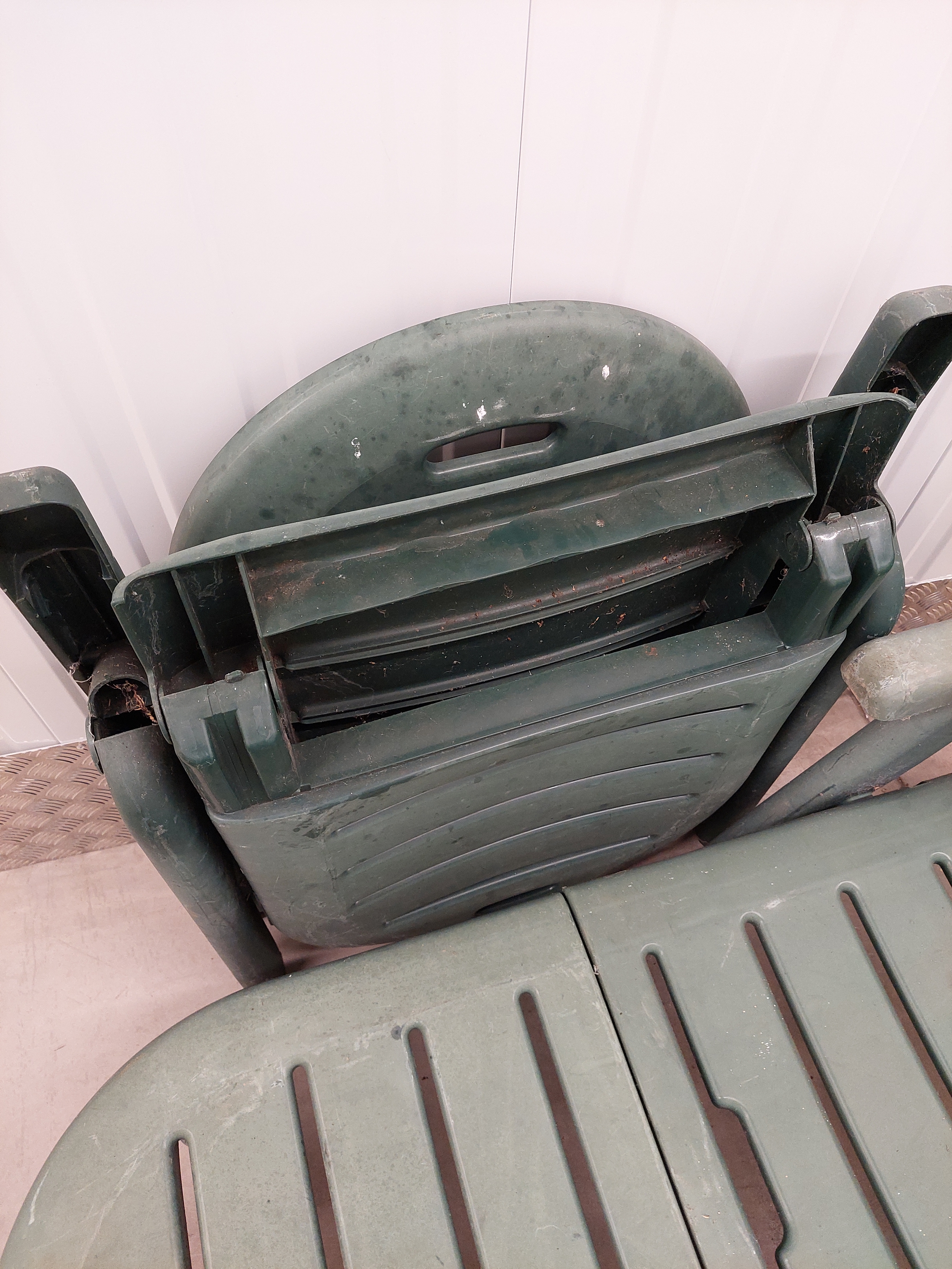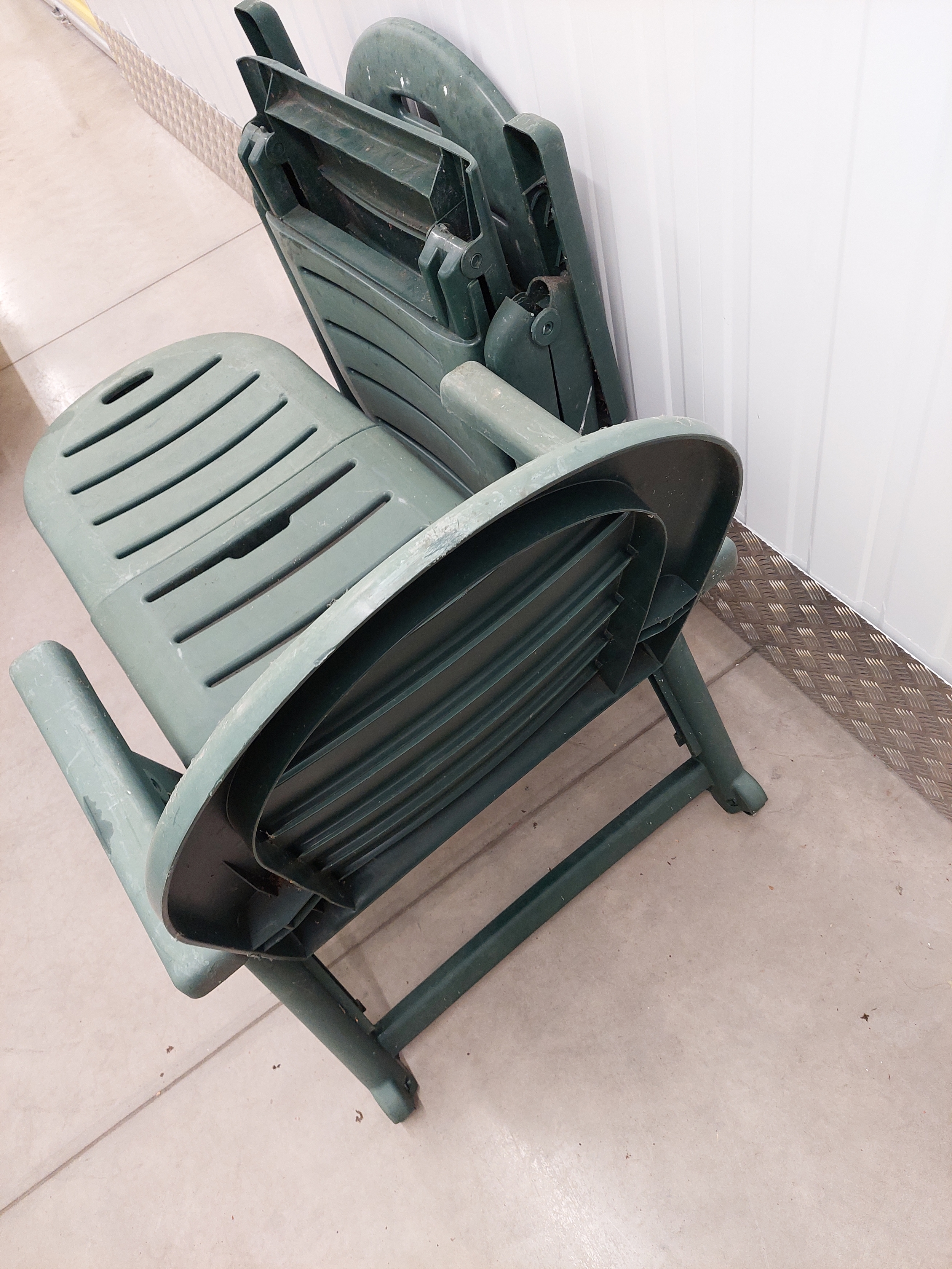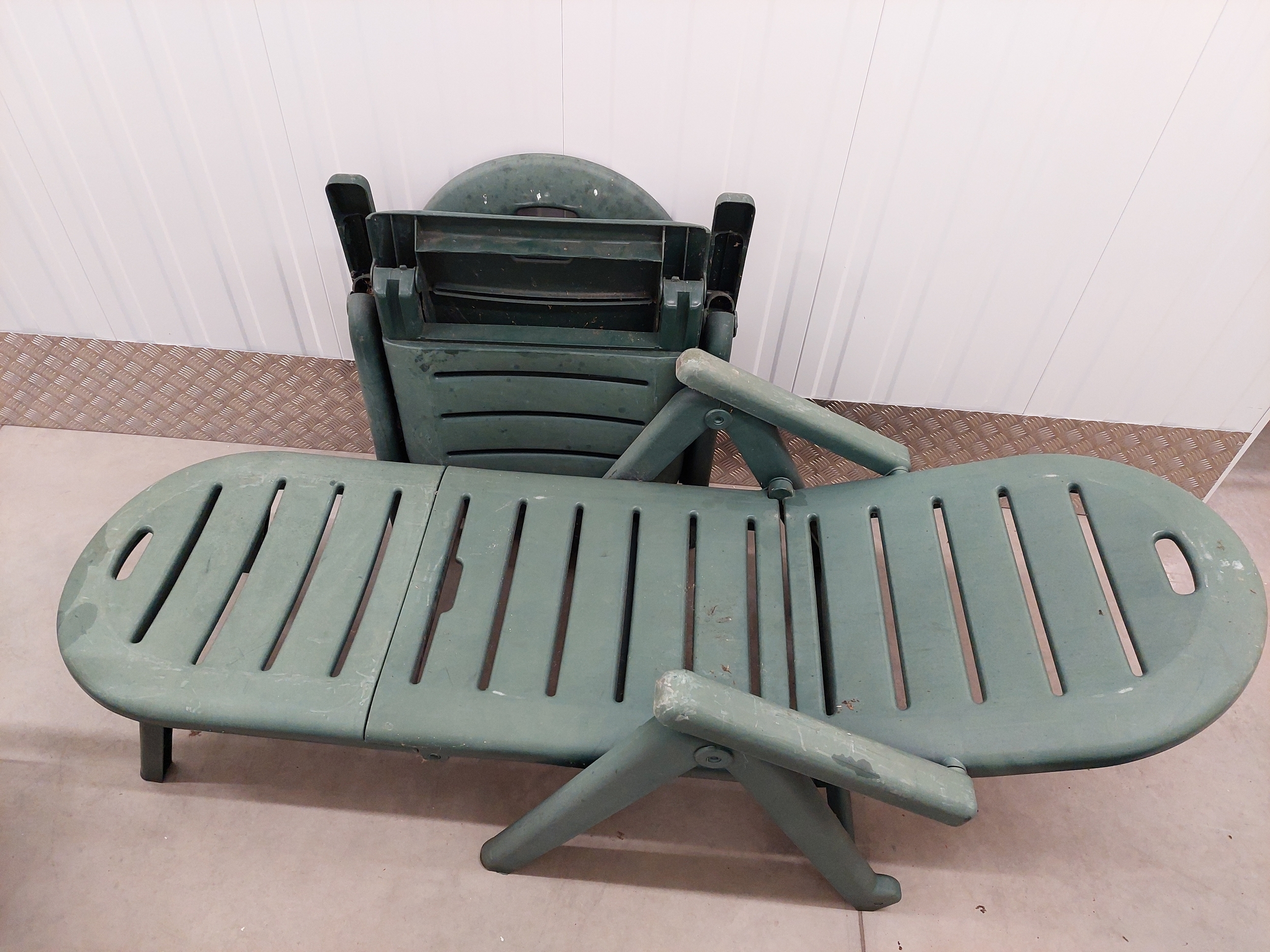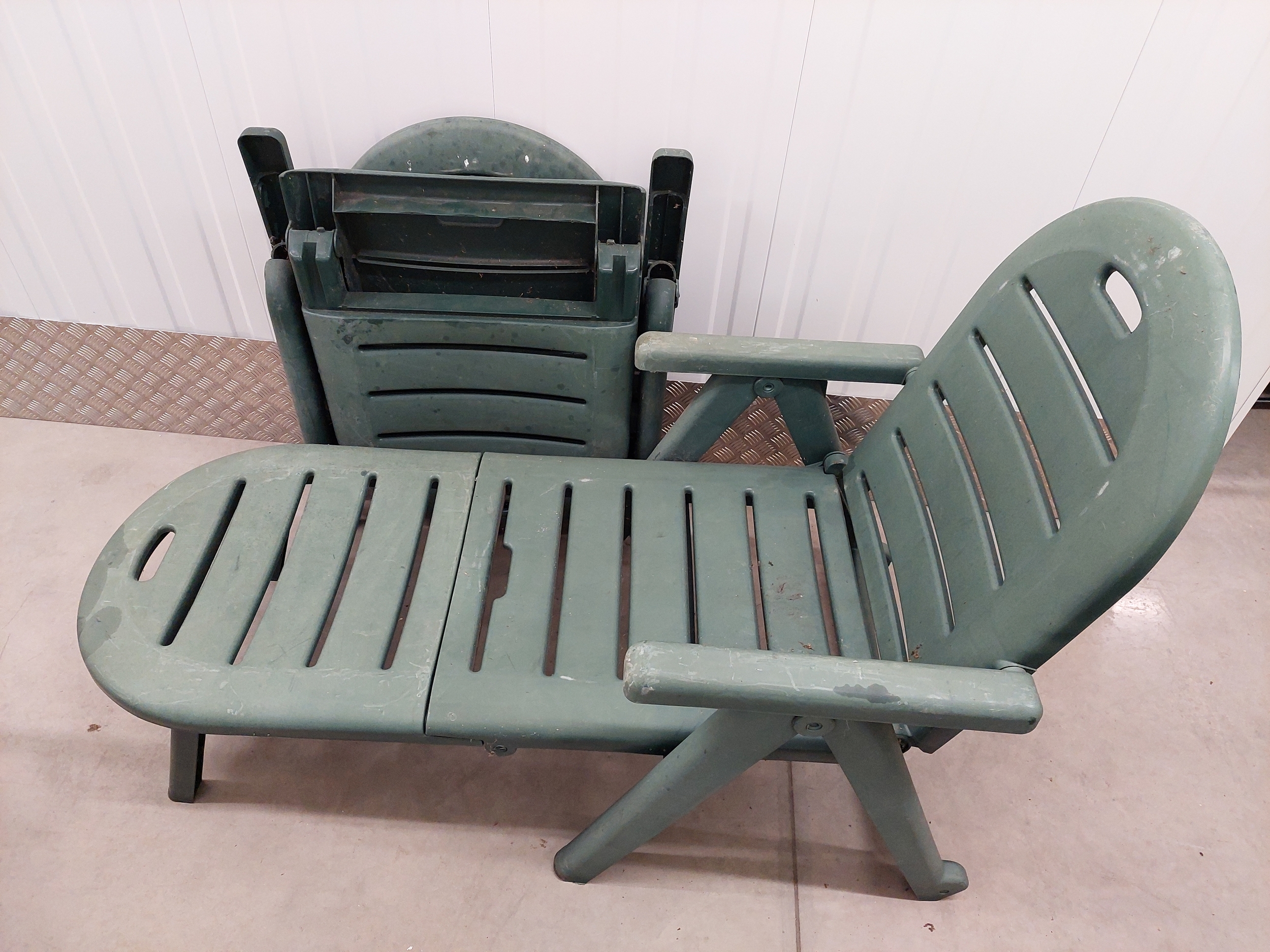 A pair of large folding garden sun loungers. Measures 190cm fully reclined.