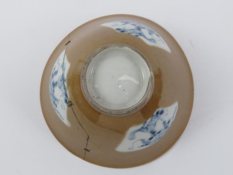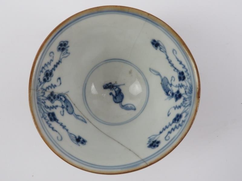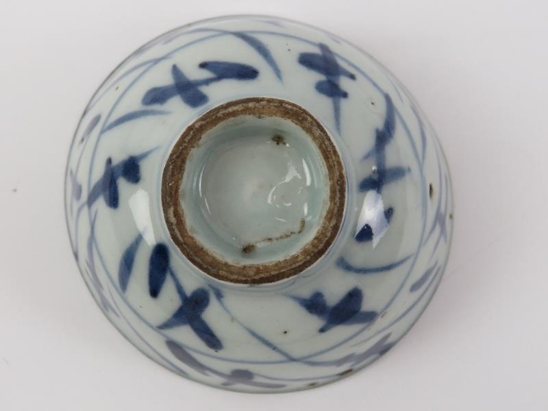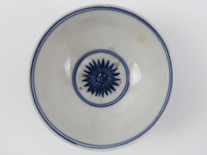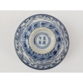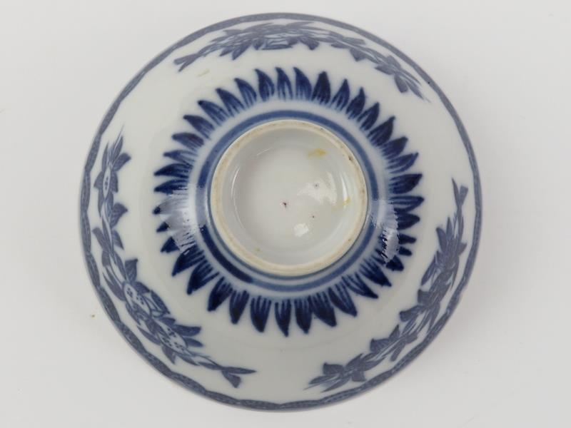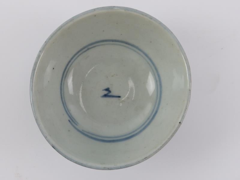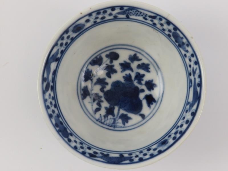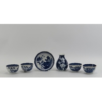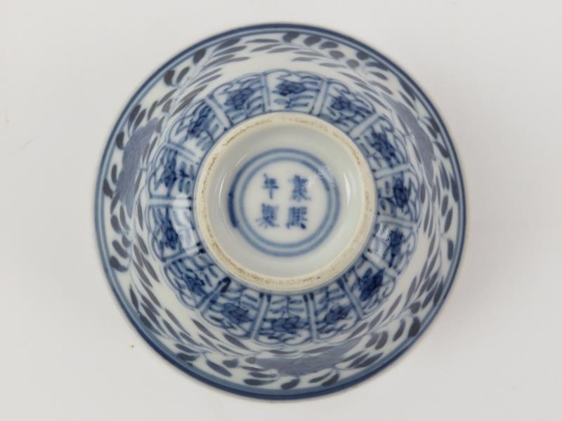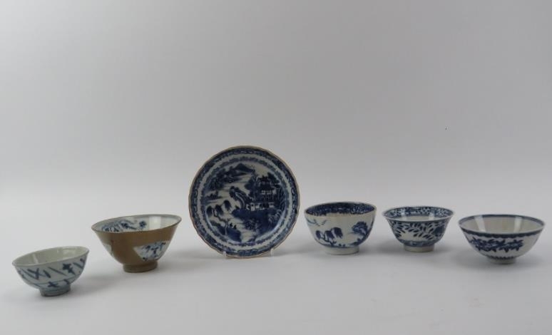 Five Chinese blue and white porcelain cups and a saucer, 18th/19th century. One cup with Kangxi reign marks as illustrated. (6 items) Saucer: 13.5 cm diameter.