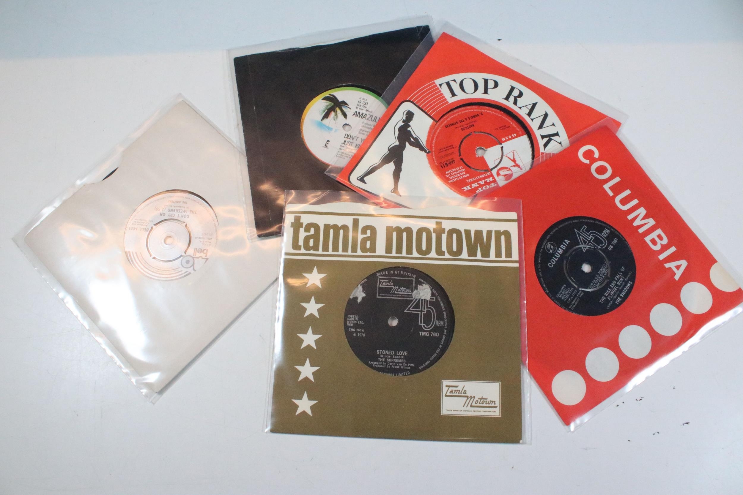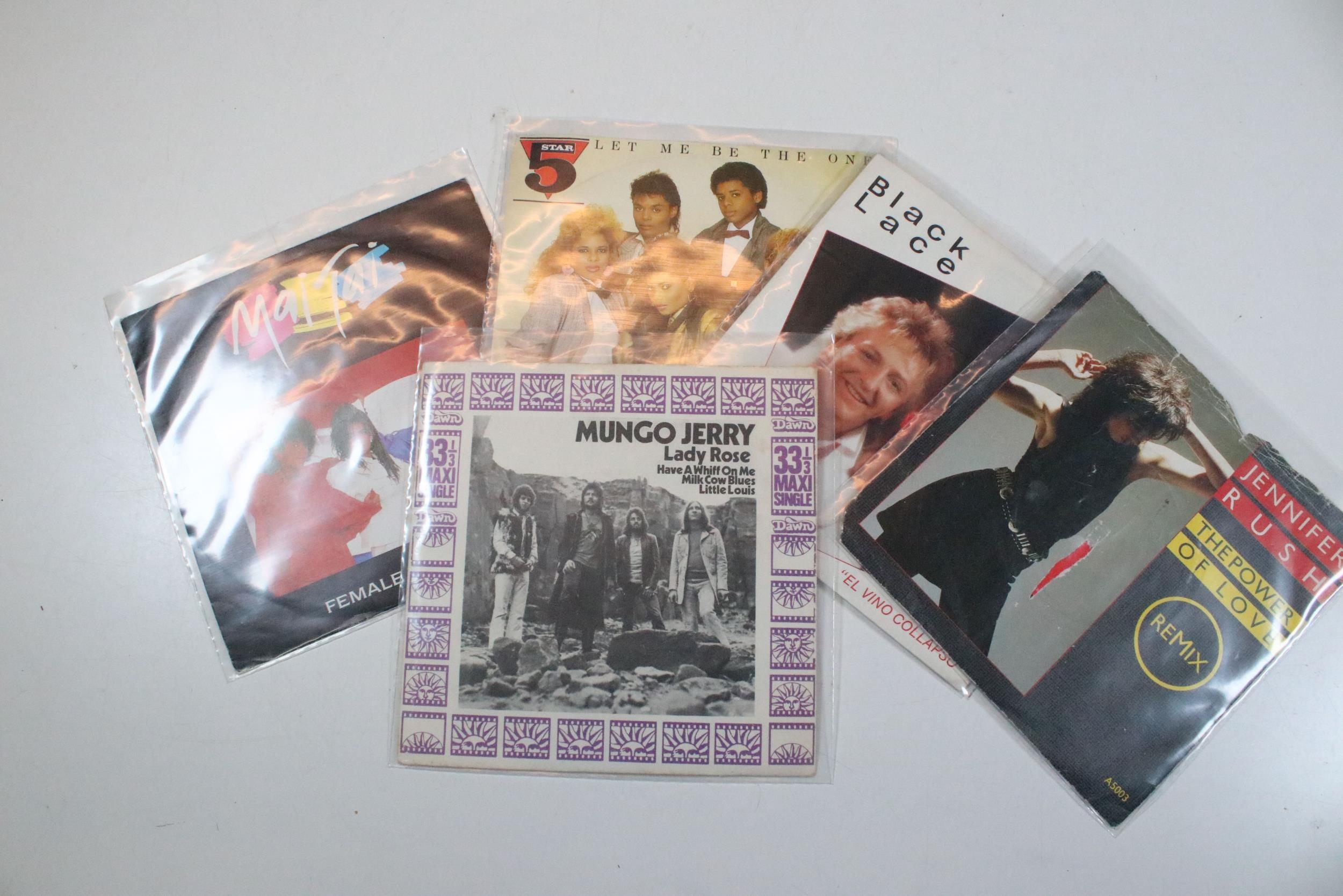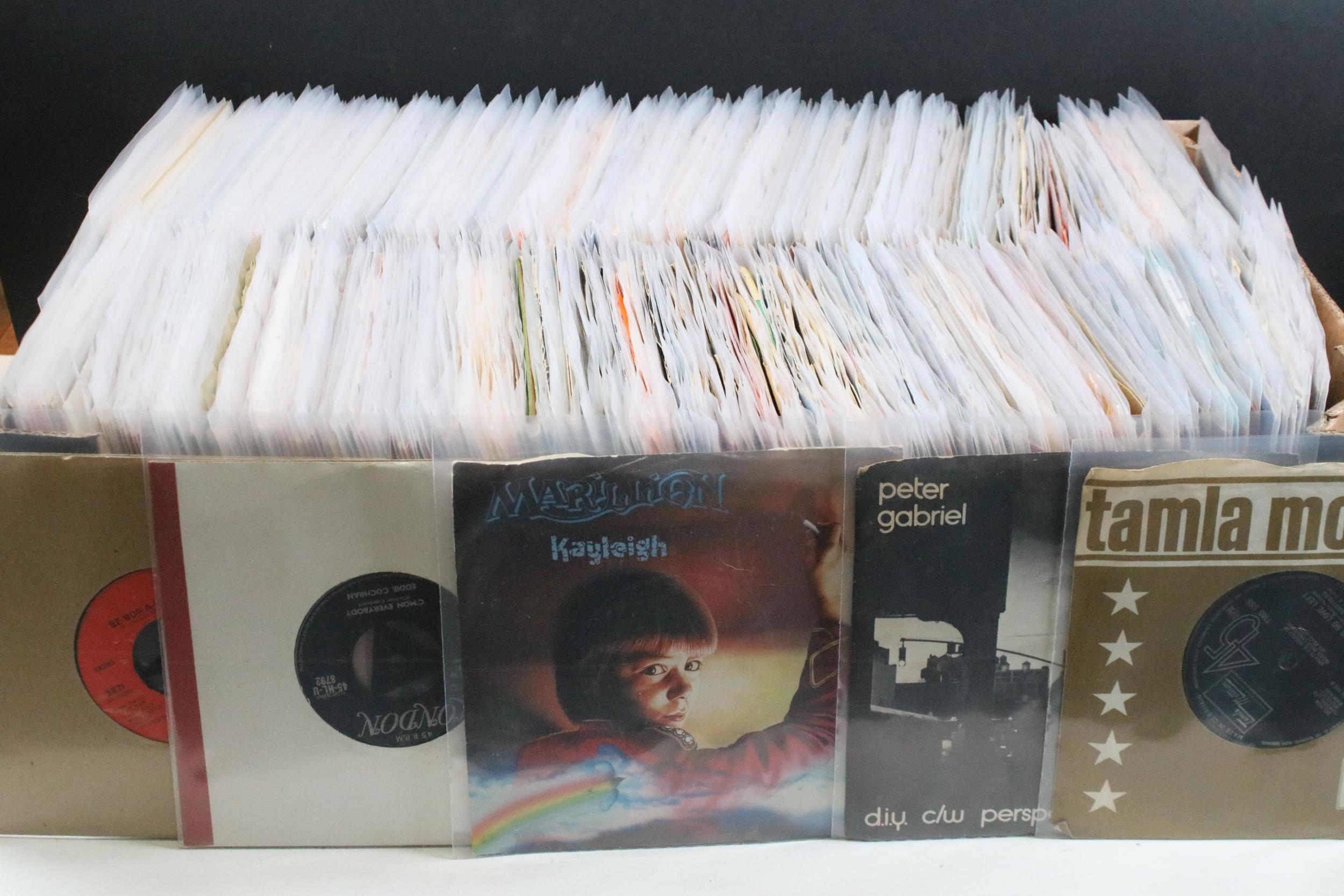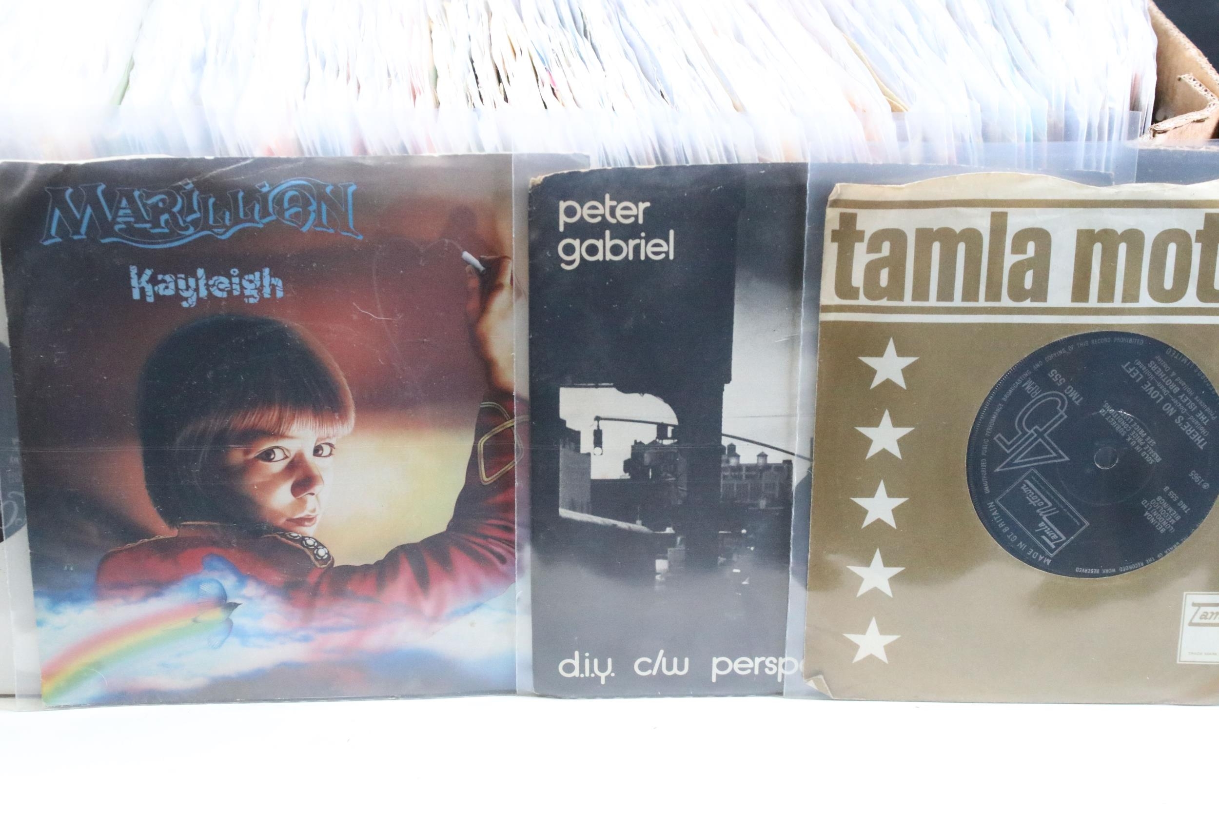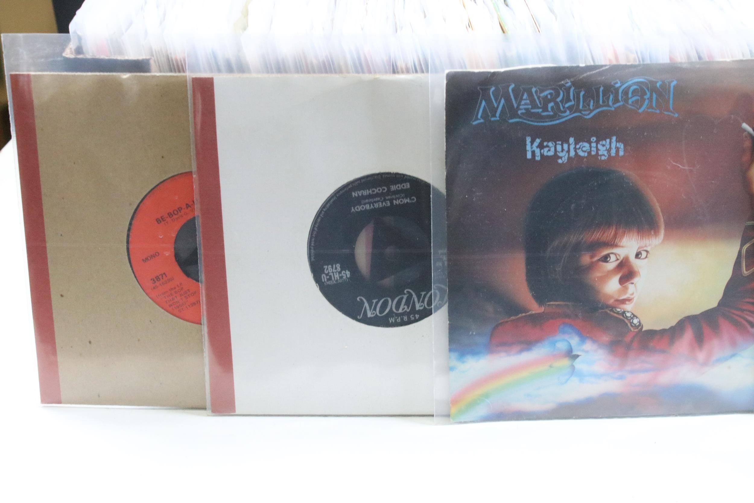 Vinyl Records - A large collection of mainly rock and pop 7" vinyl single records spanning the decades, all within sleeves and PVC protective sleeves to include Queen, The Beatles, Sex Pistols and many more..