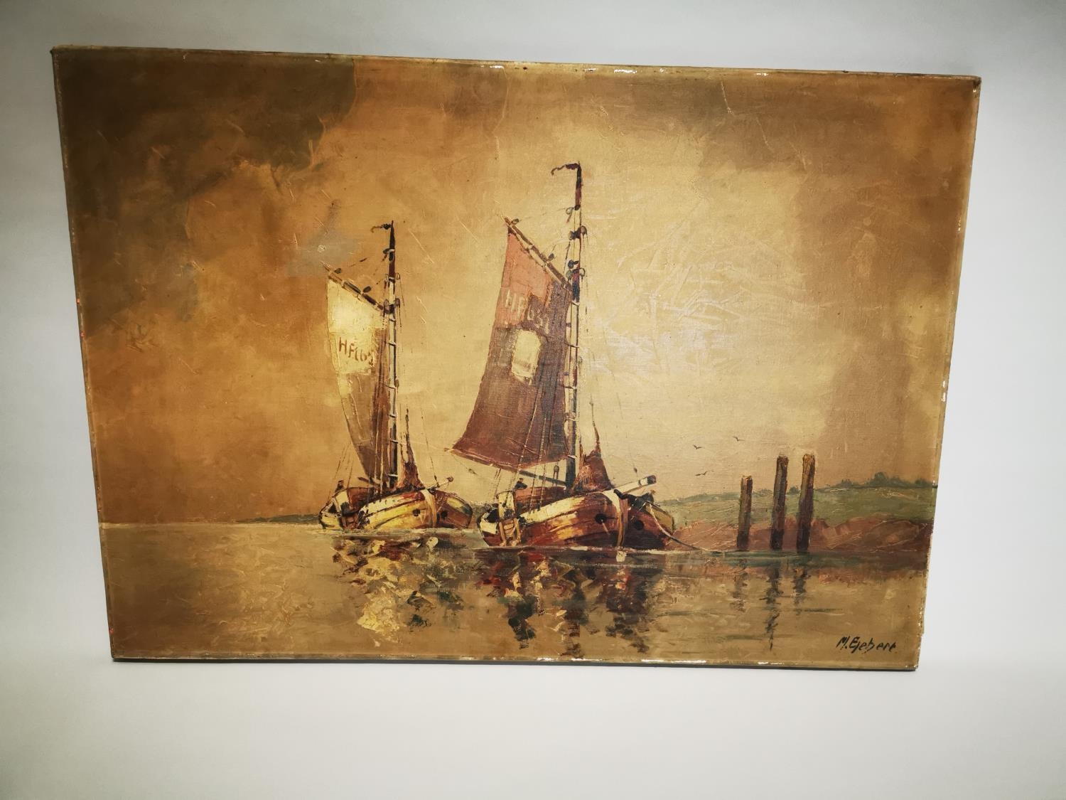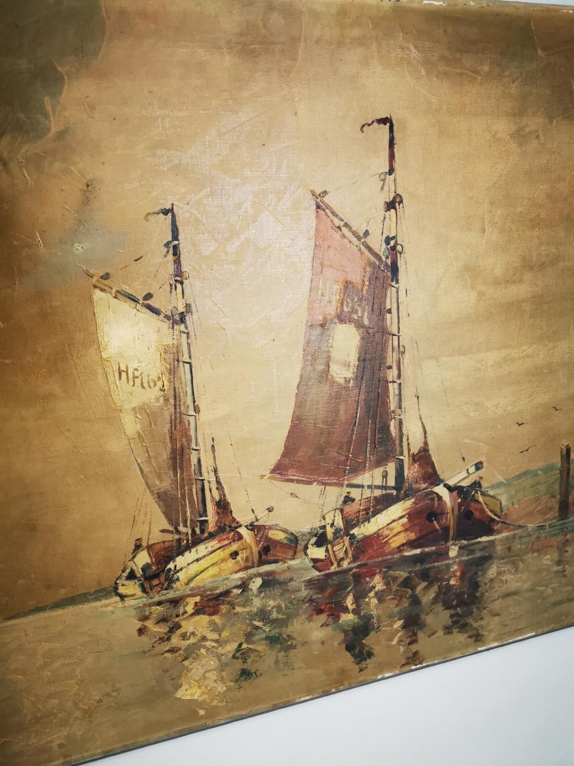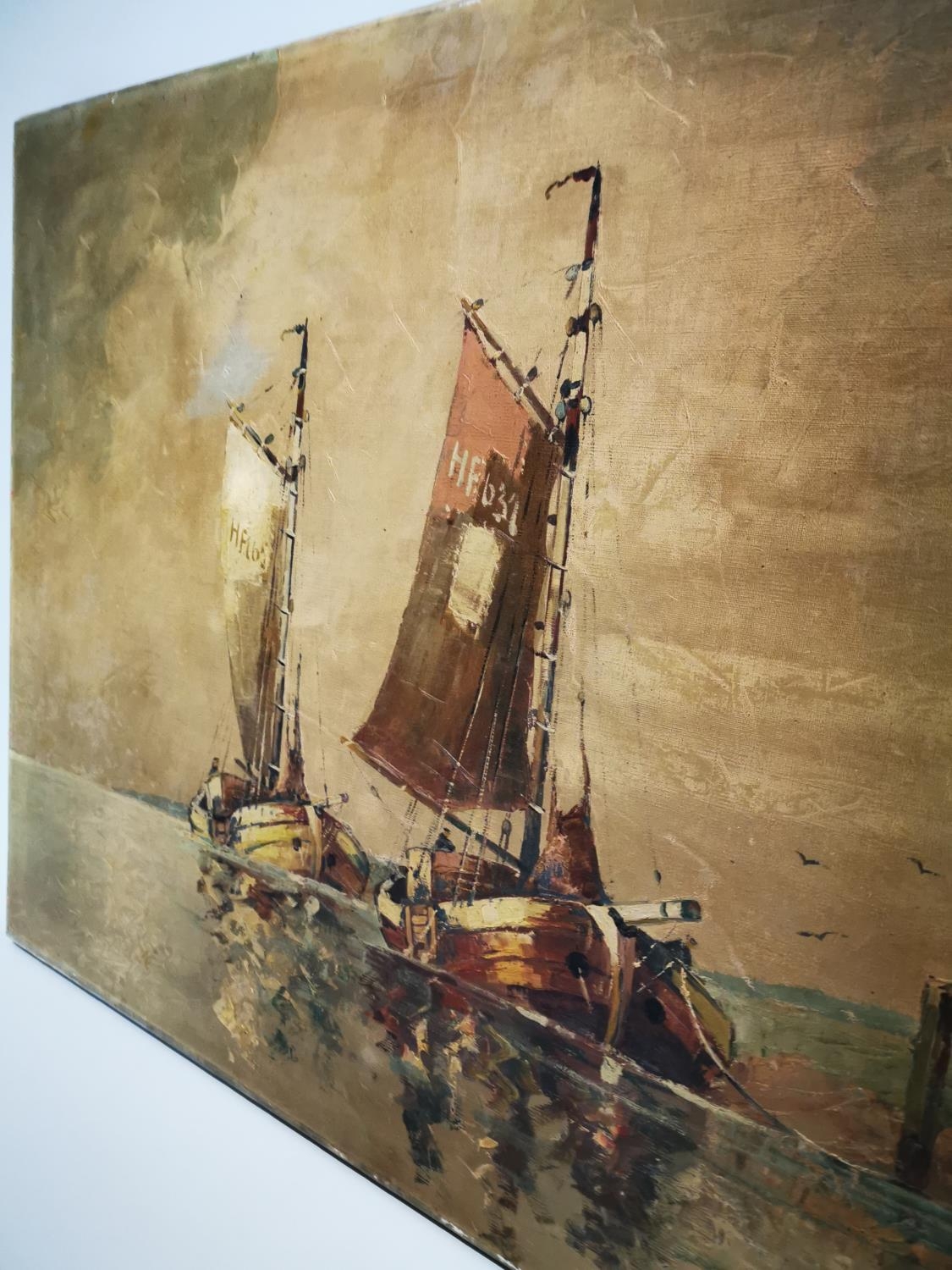 Early 20th C. oil on canvas Nautical Scene. {60 cm H x 100 cm L}