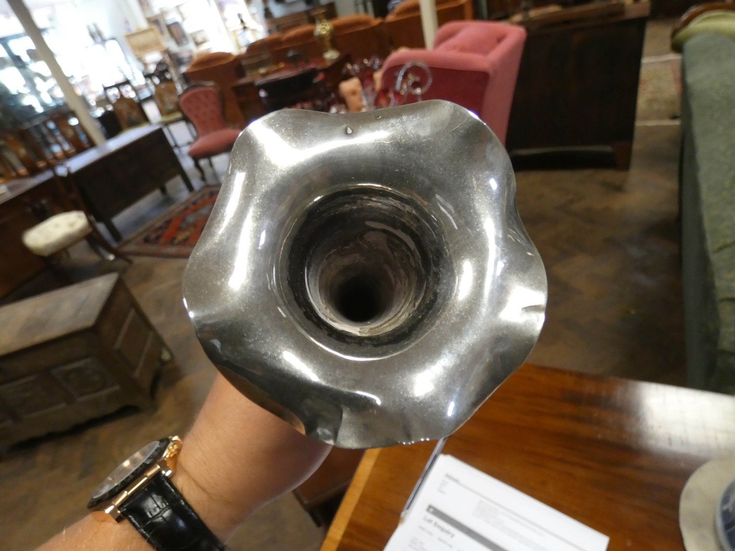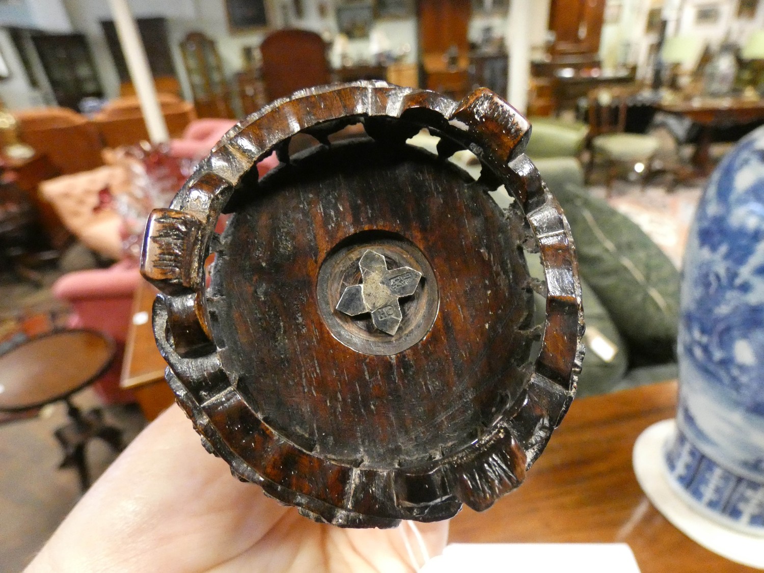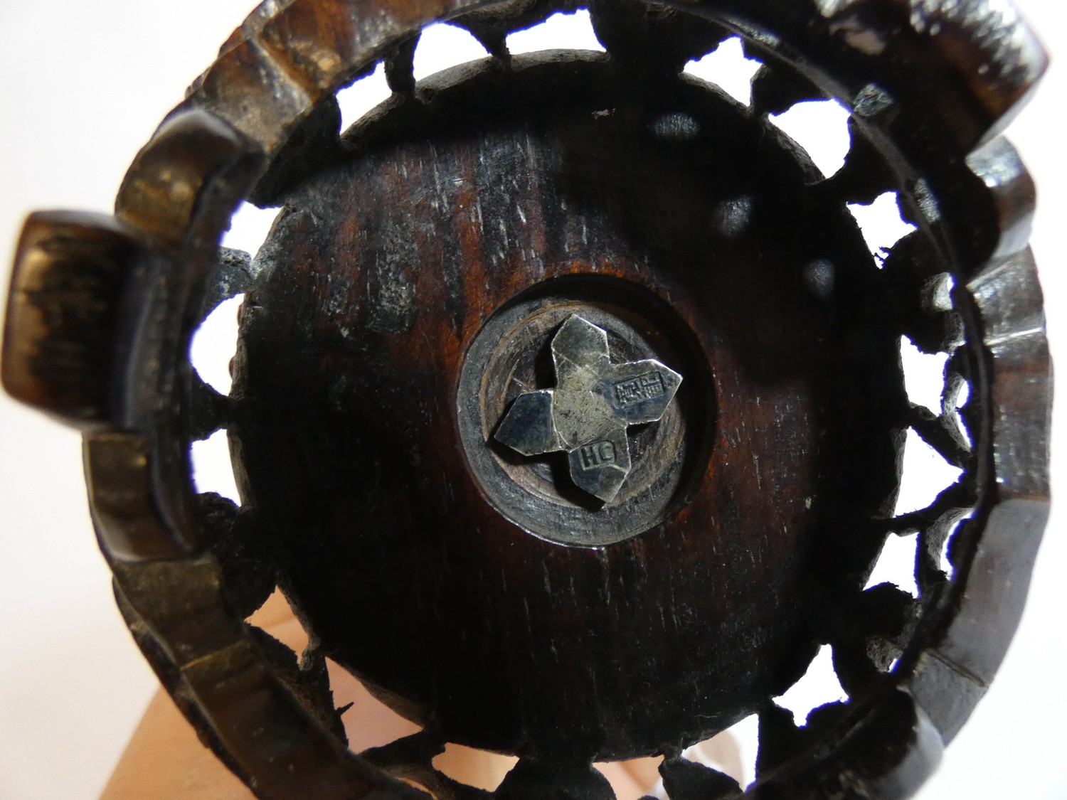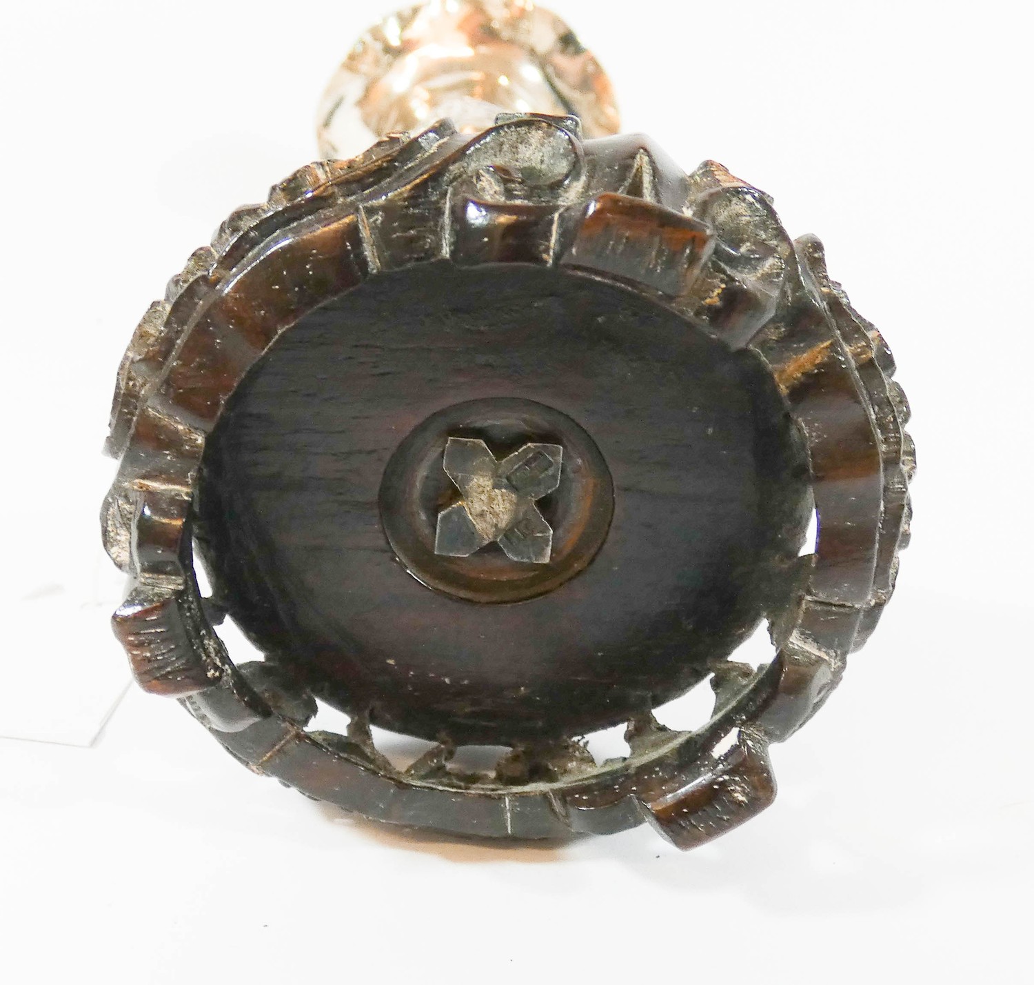 Chinese export silver vase, by Hung Chong & Co Shanghai, decorated with a coiled dragon, on carved hardwood base, overall height 20 cms tall.