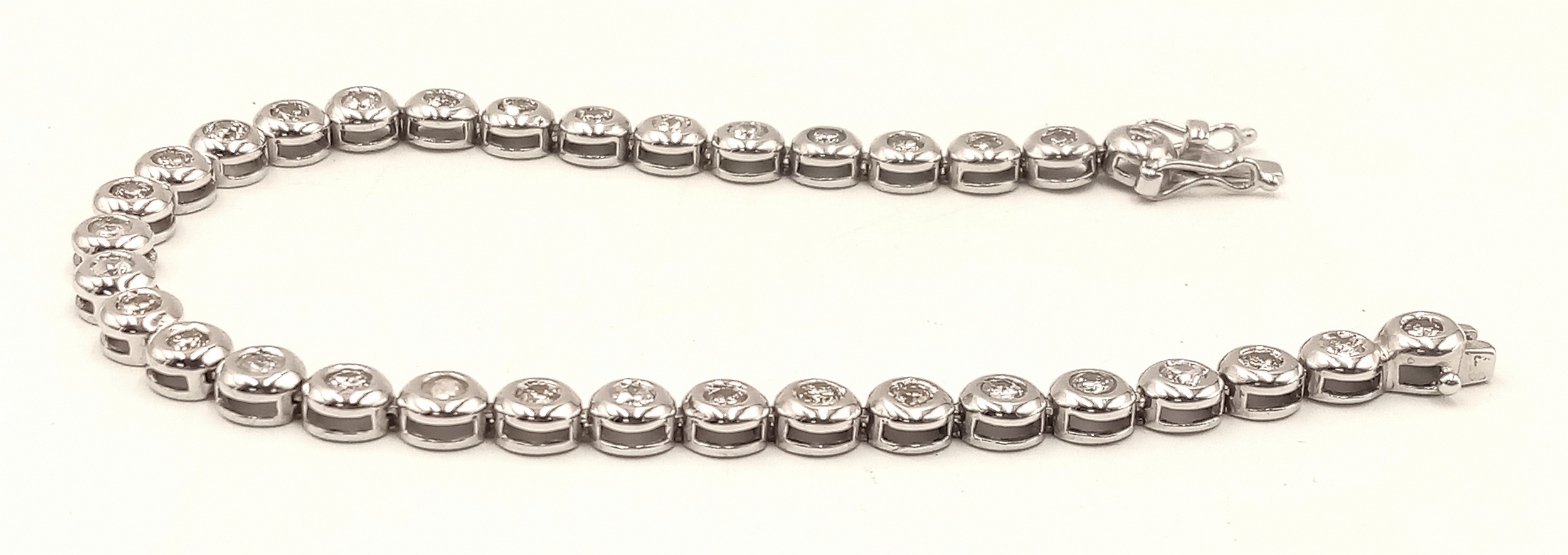 An 18K WHITE GOLD DIAMOND SET TENNIS BRACELET, APPROX 2CT DIAMONDS 14.6G. Ref: SPSA 7001