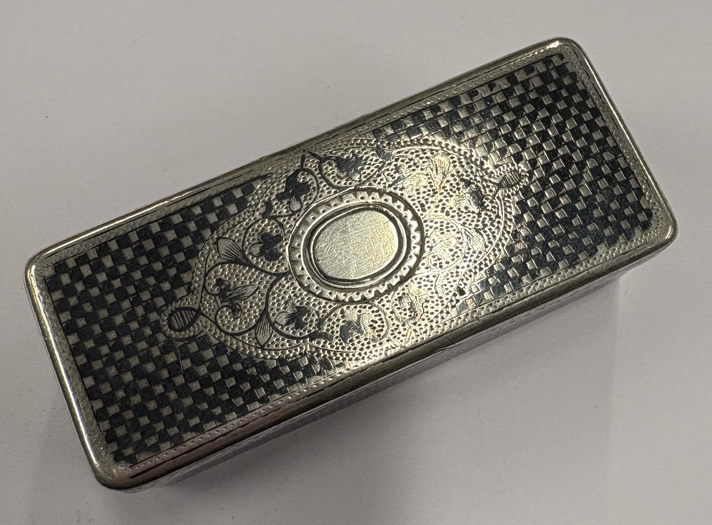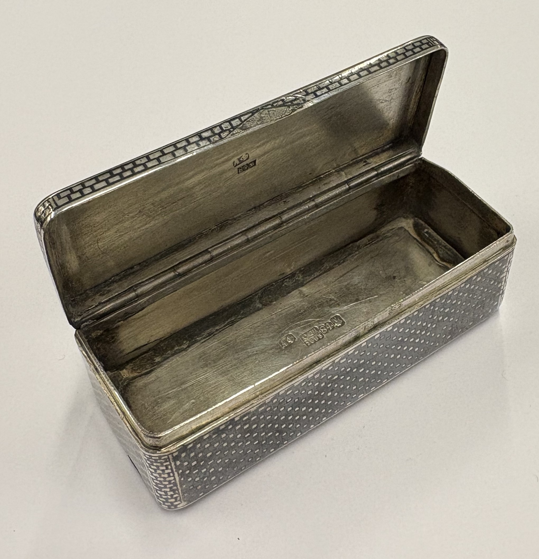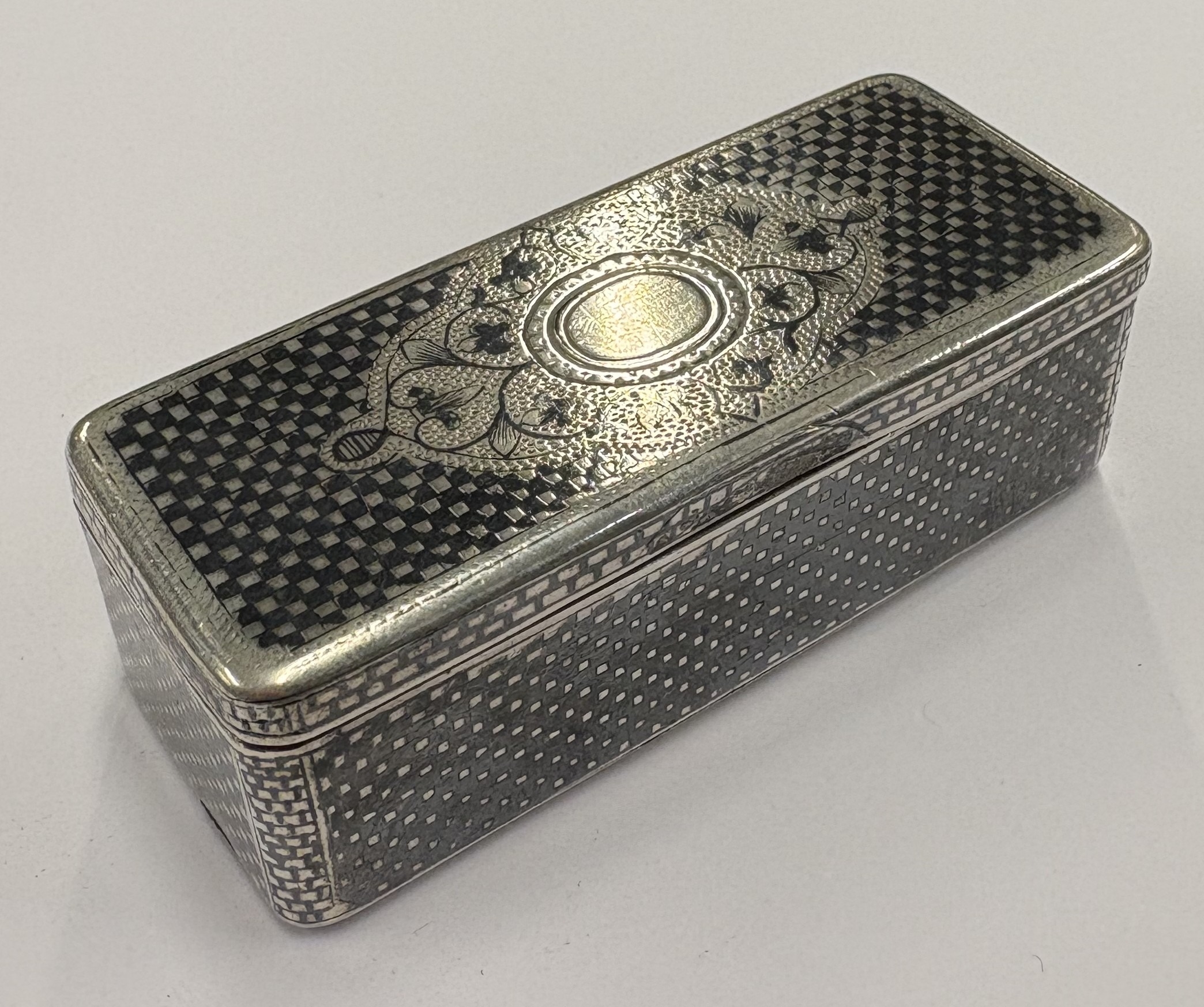 A 19th Century Russian silver and niello snuff box, dated 1883. Approx. 78 grams. Est. £250 - £300.