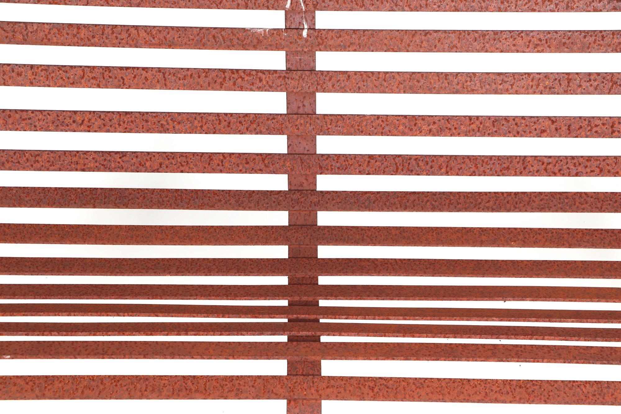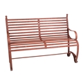 A iron strap work garden bench, with scroll arms and feet, ...