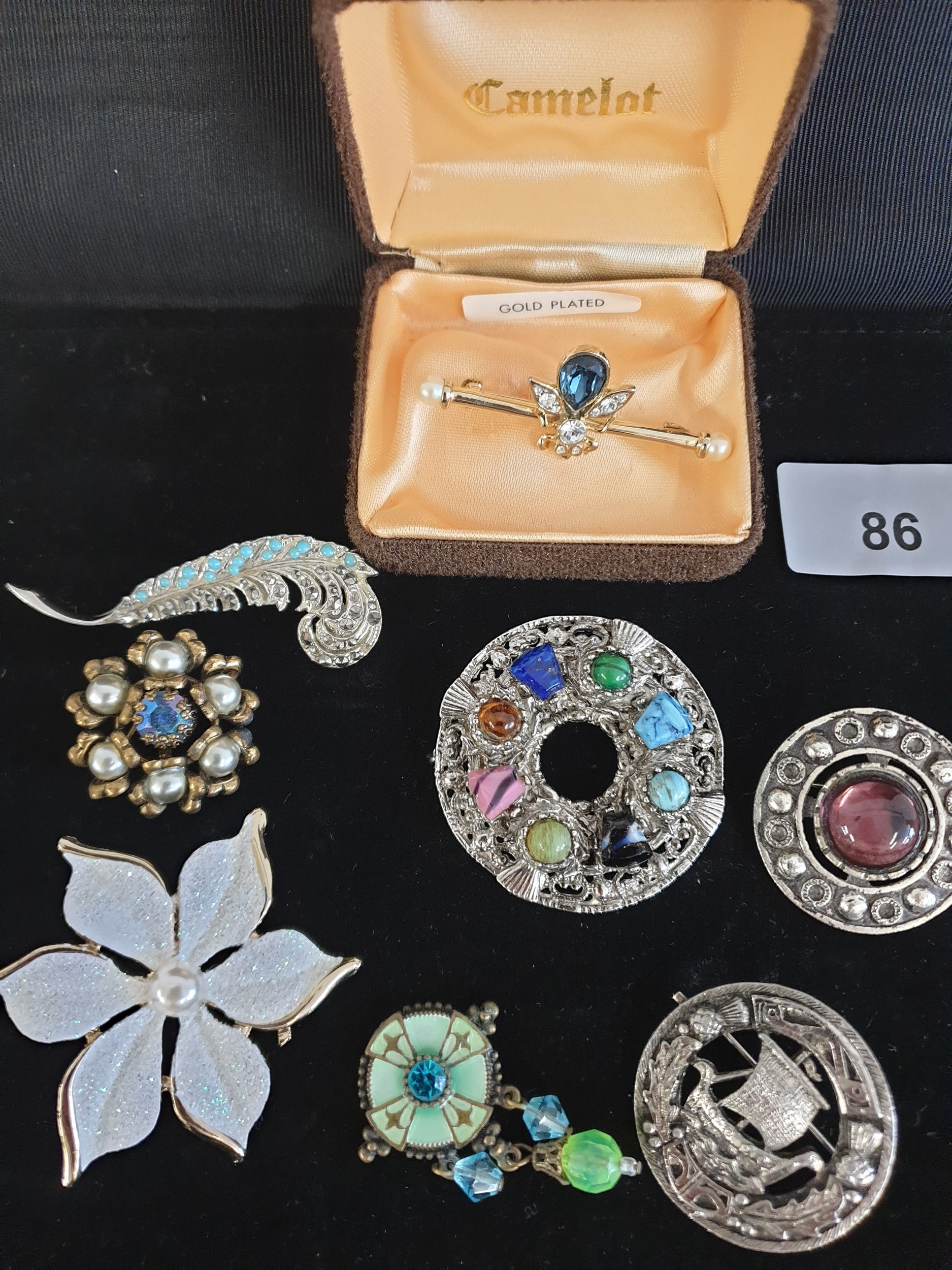Good Selection Of Brooches To Include Scottish Celtic Brooches Bug Bar Brooch Ect