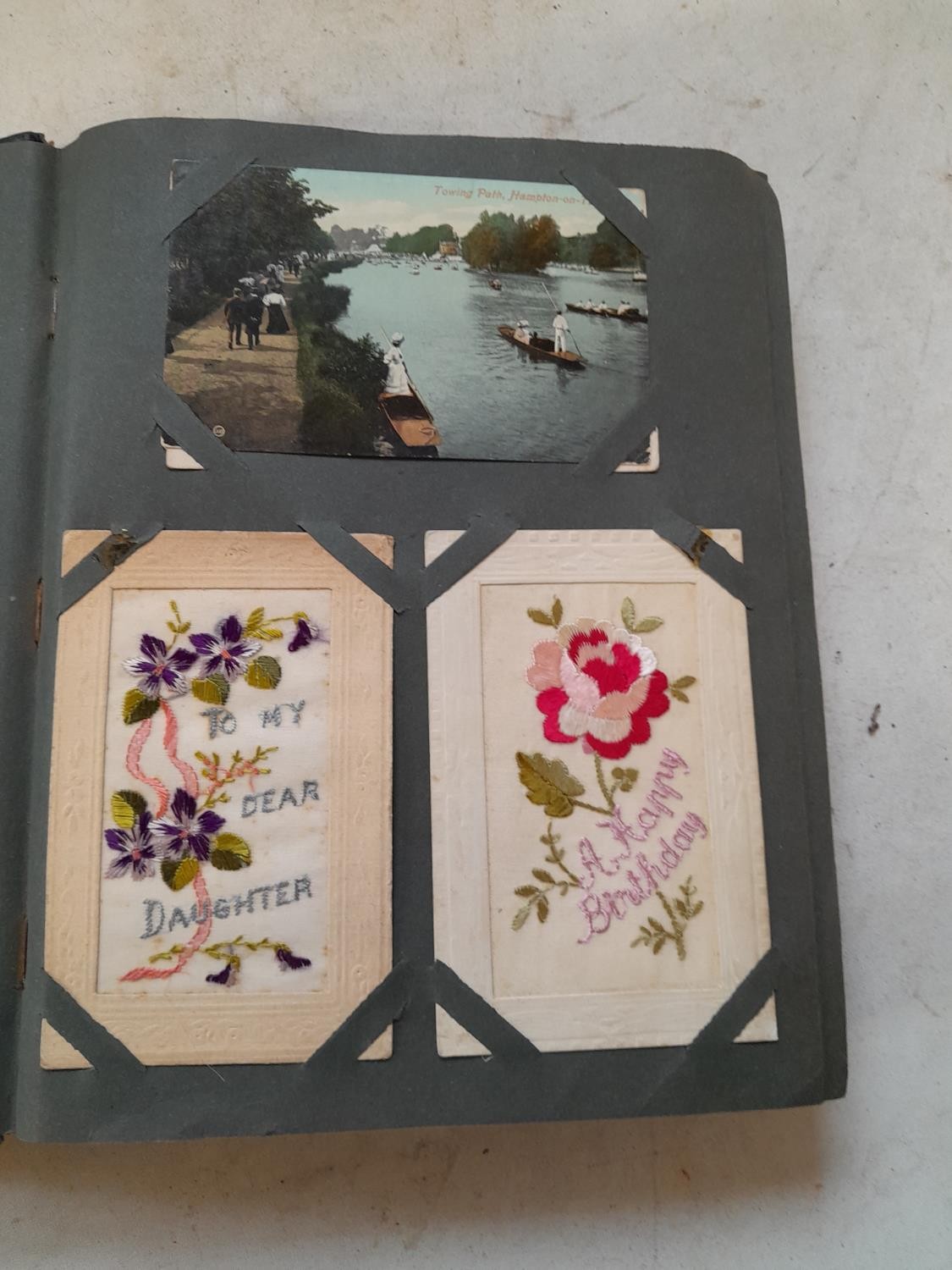 Postcards from Middlesex, Surrey from the early 20th century, black and white and coloured including a few silks