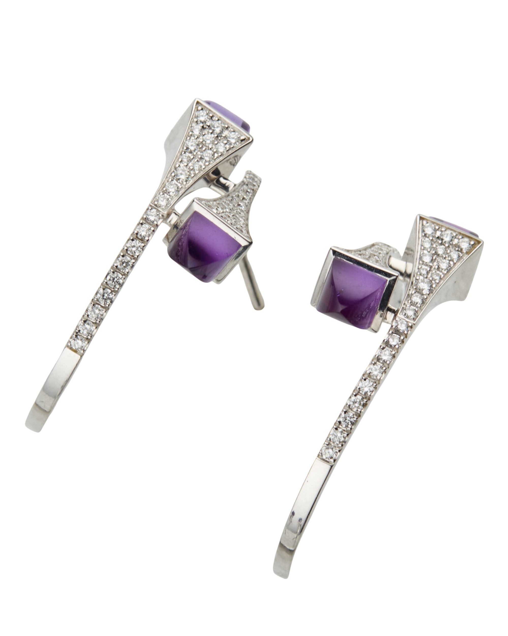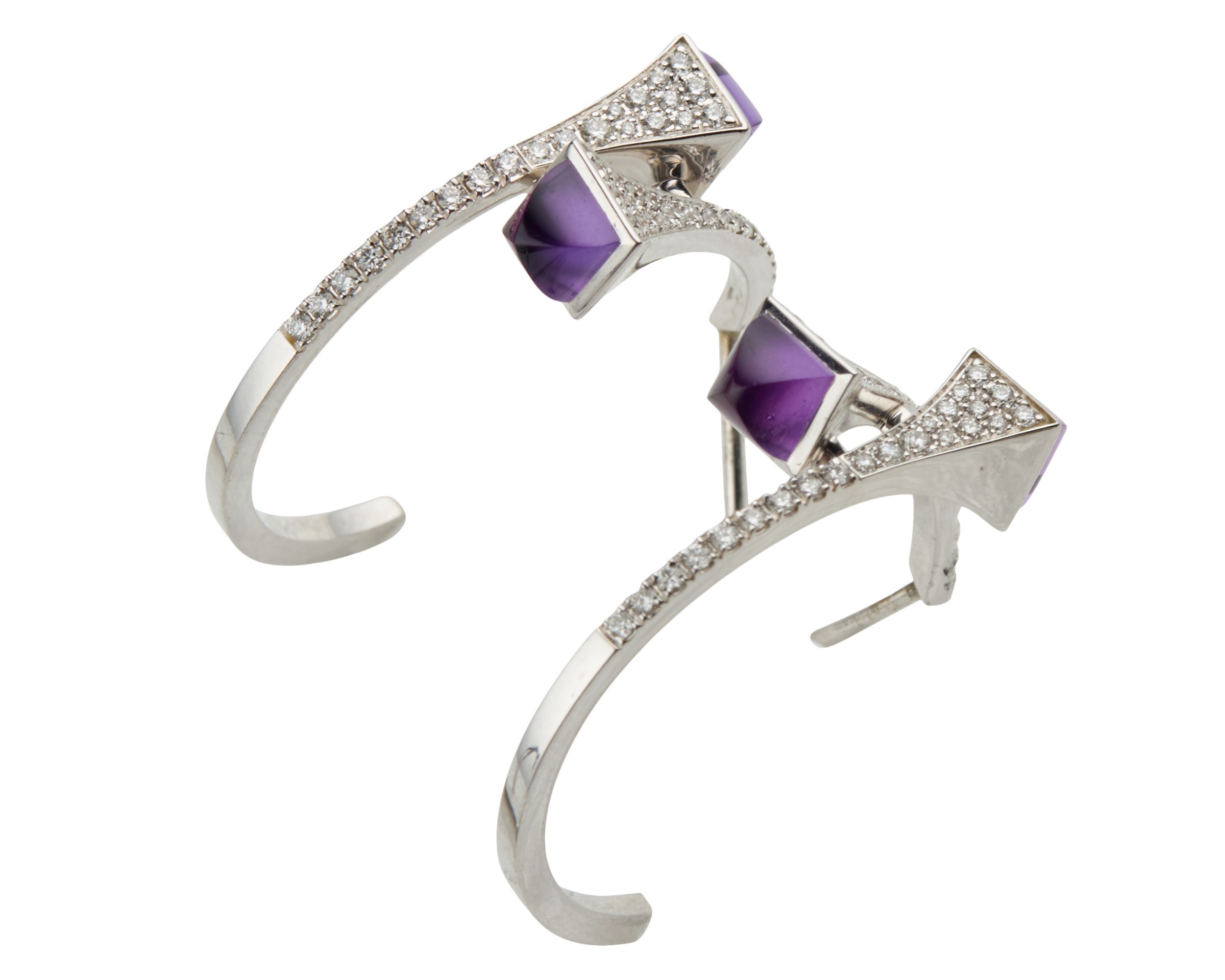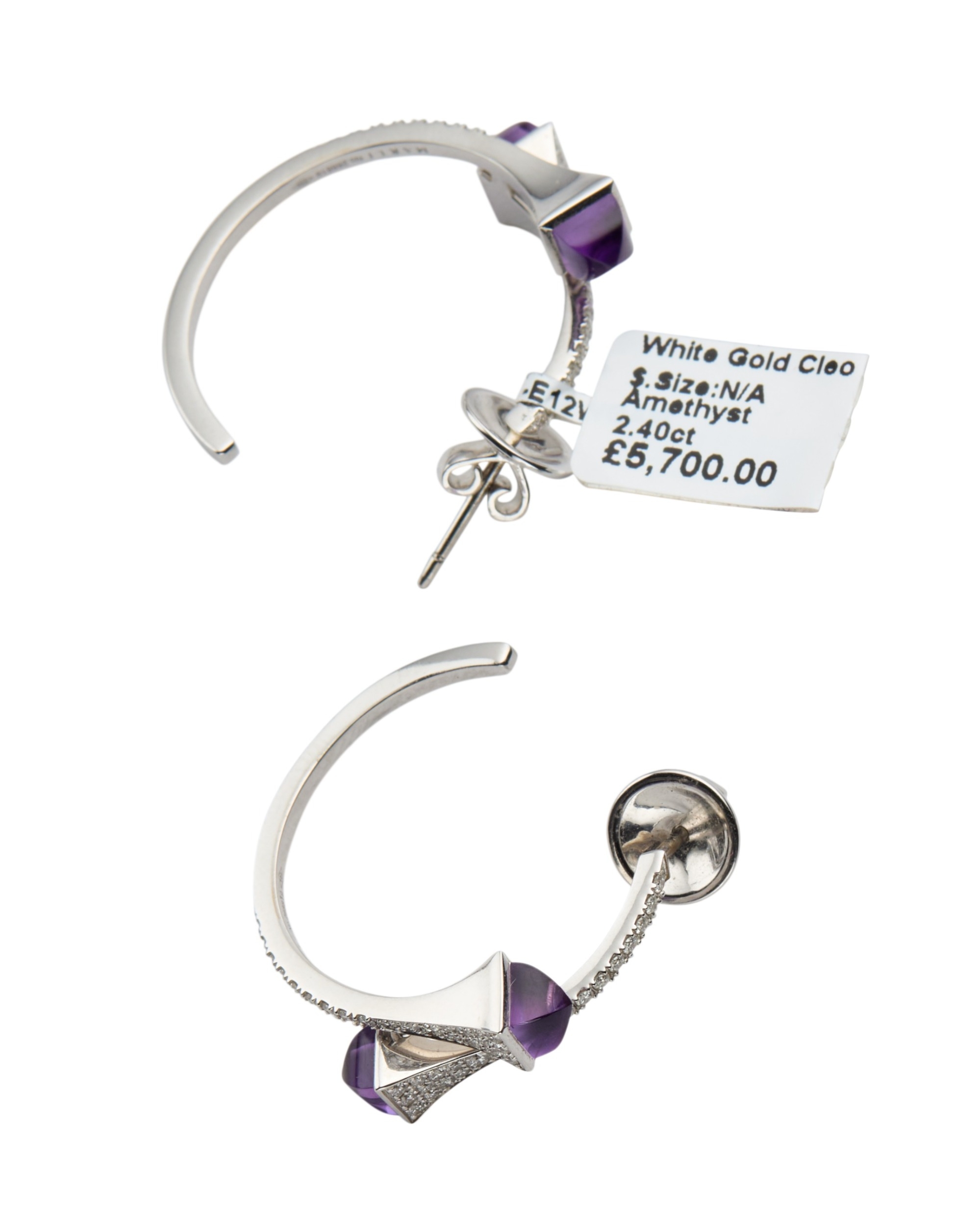 MARLI; A PAIR OF DIAMOND AND AMETHYST SMALL HOOP CLEO EARRINGS