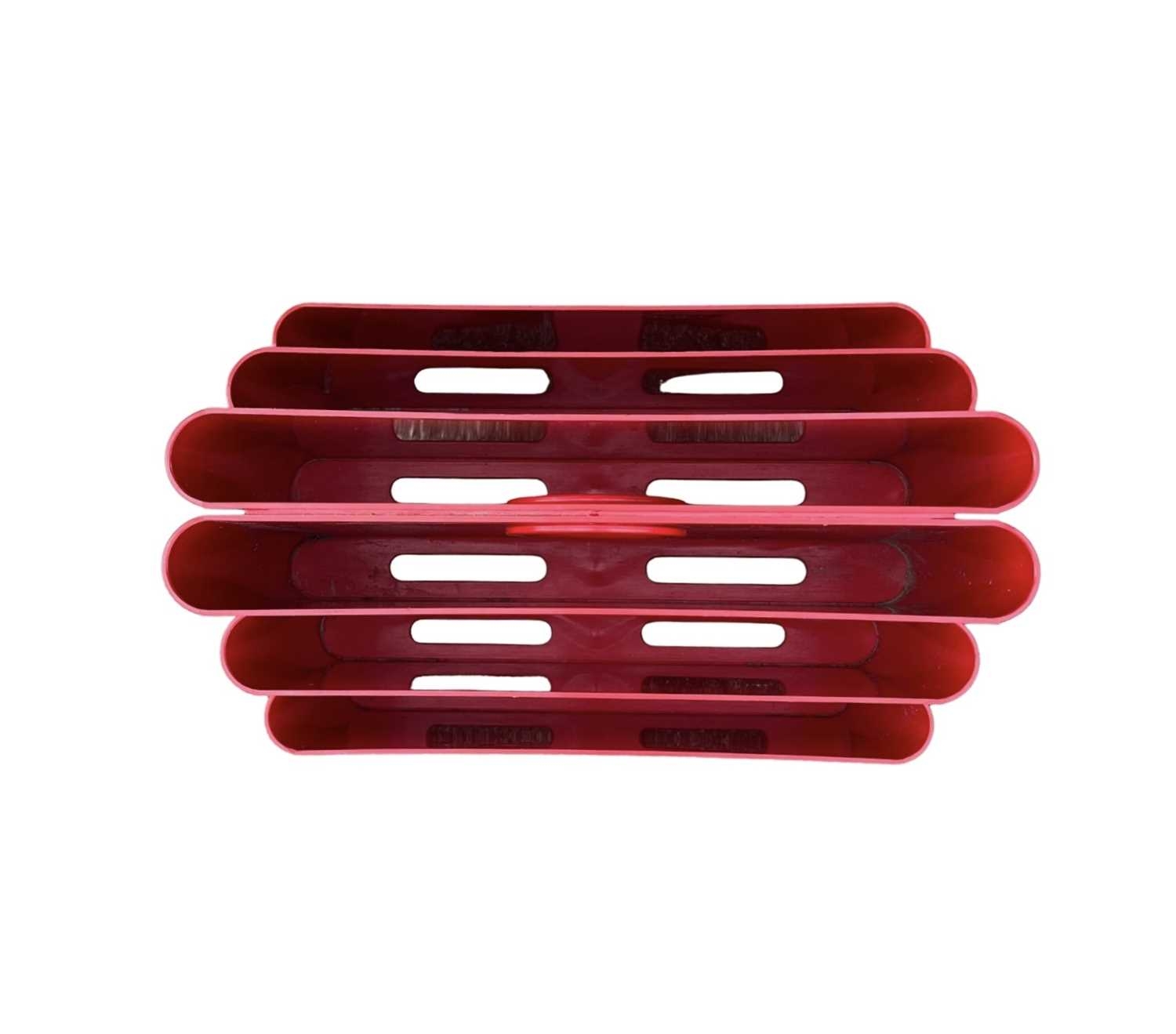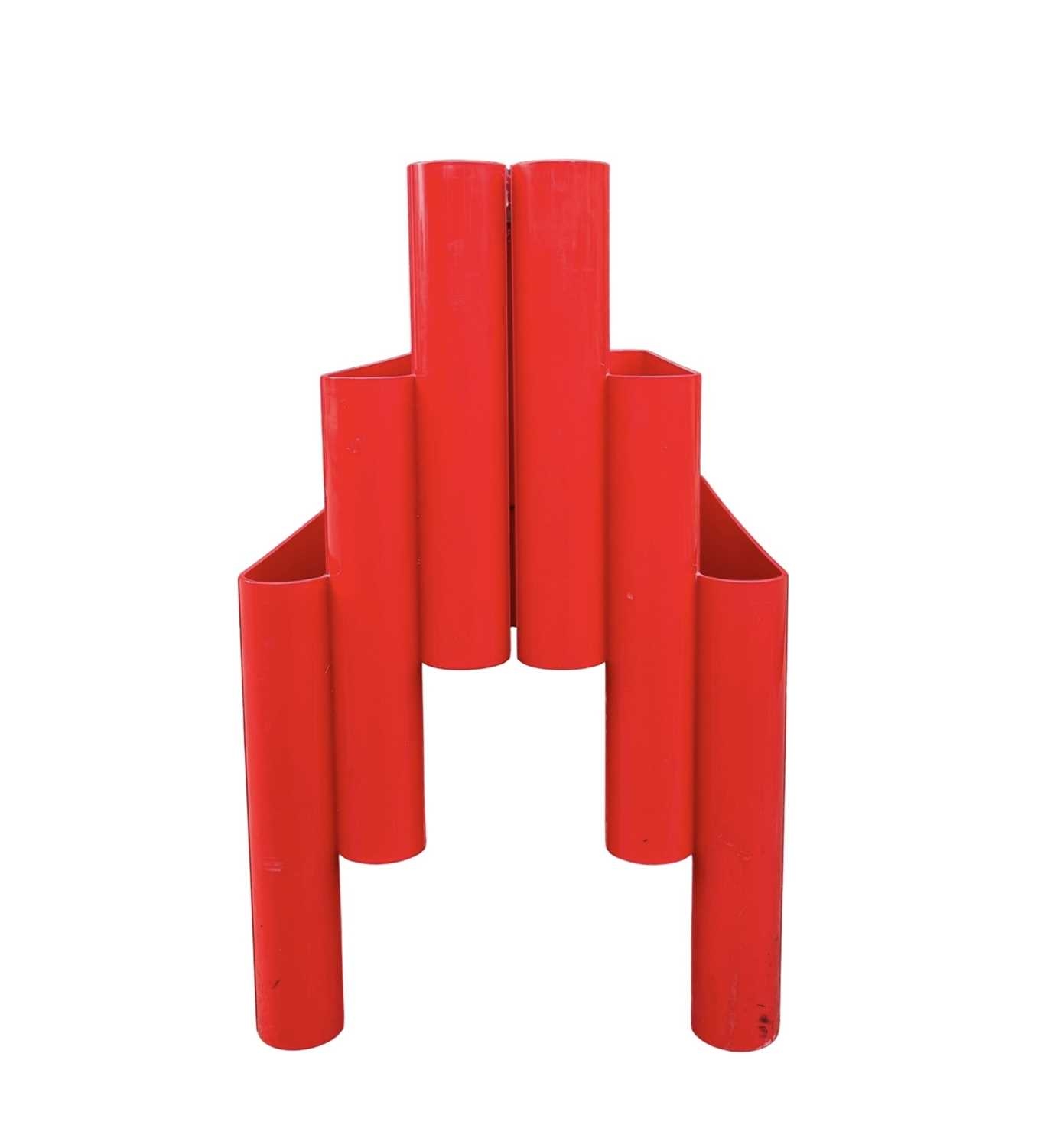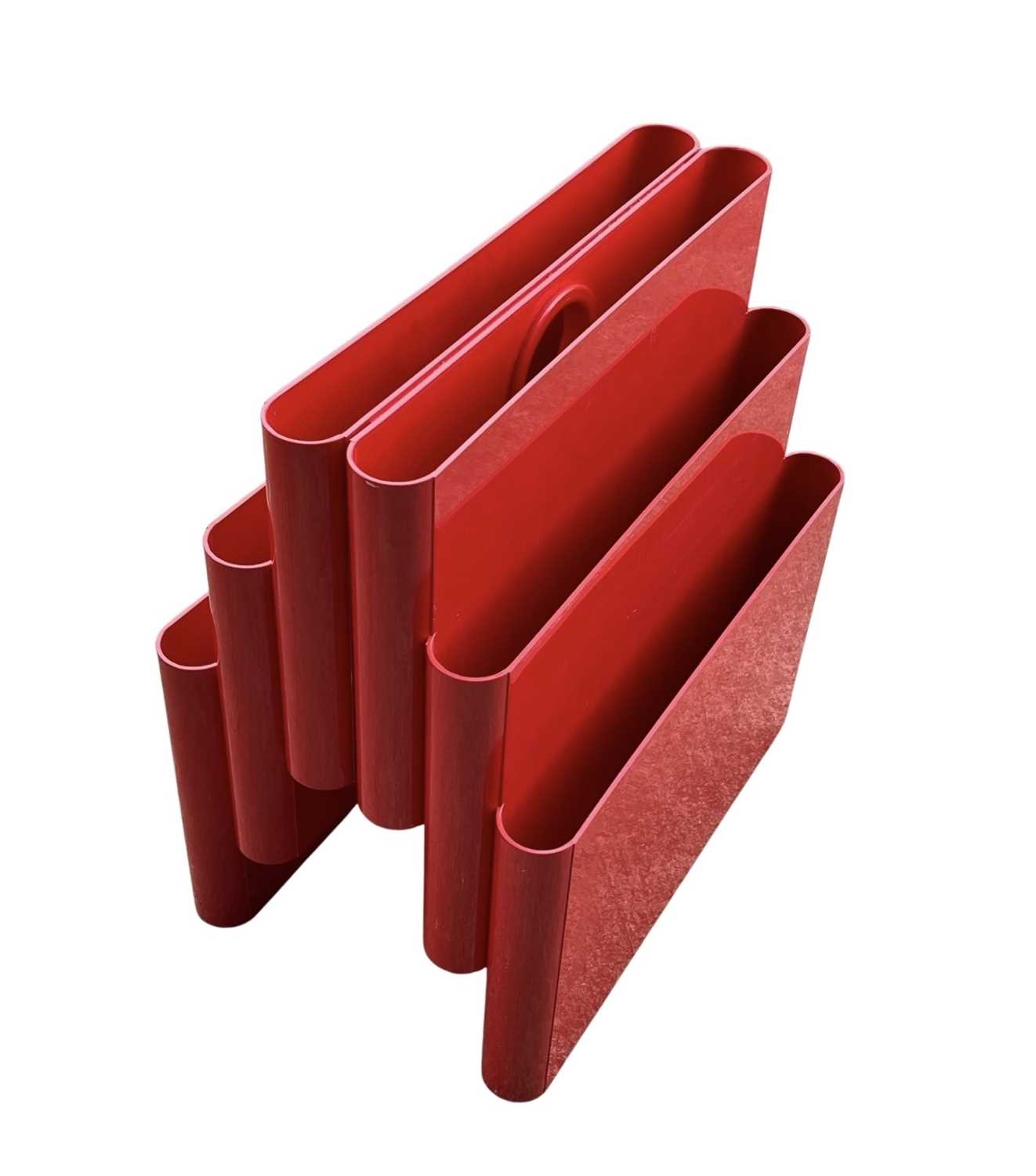Giotto Stoppino (Italian, 1926-2011) for Kartell, a red plastic six-division magazine rack, of opposing stepped form with rounded ends, marked to the underside 'KARTELL 4675, Made In Italy', height 44.5cm, width 40cm, depth 28.5cm (1)