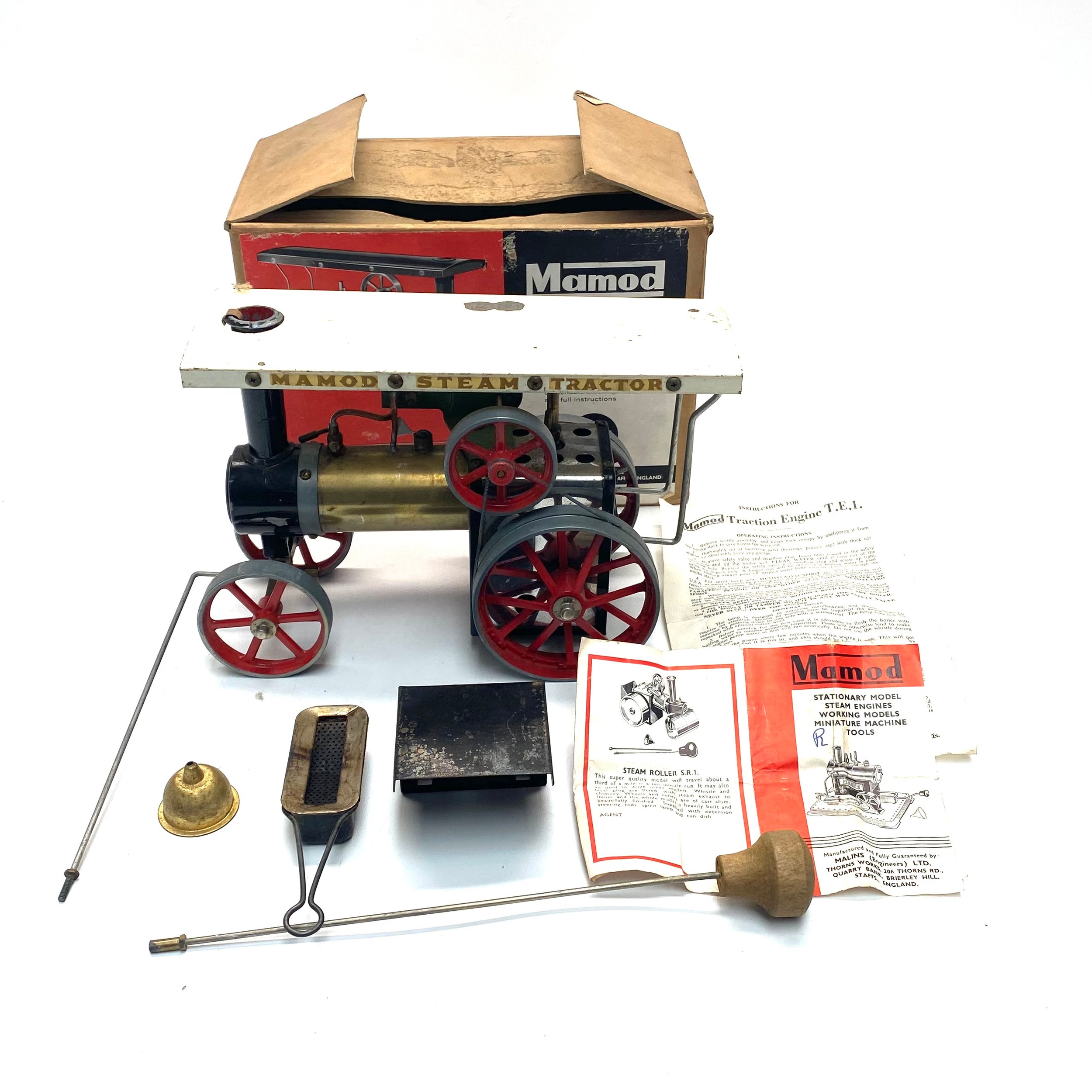 mamod traction engine complete with vaporising spirit lamp filler funnel detachable steering extension.