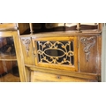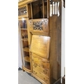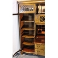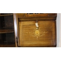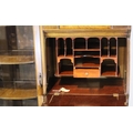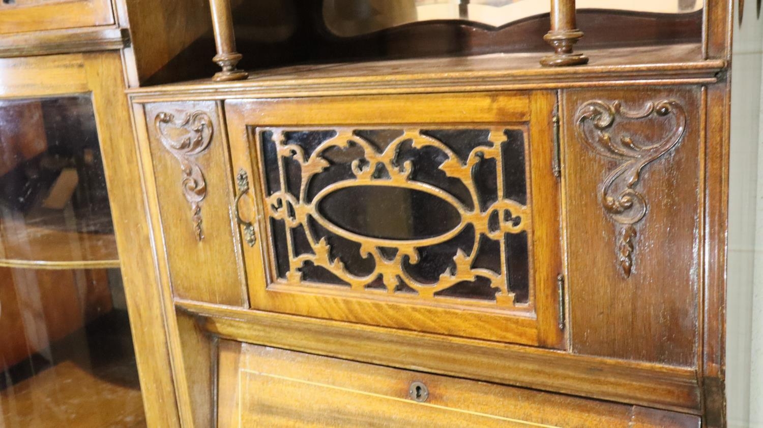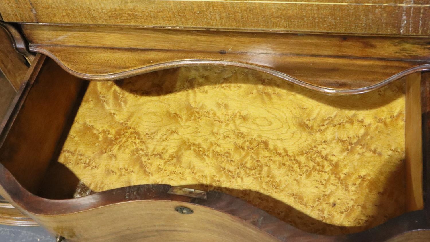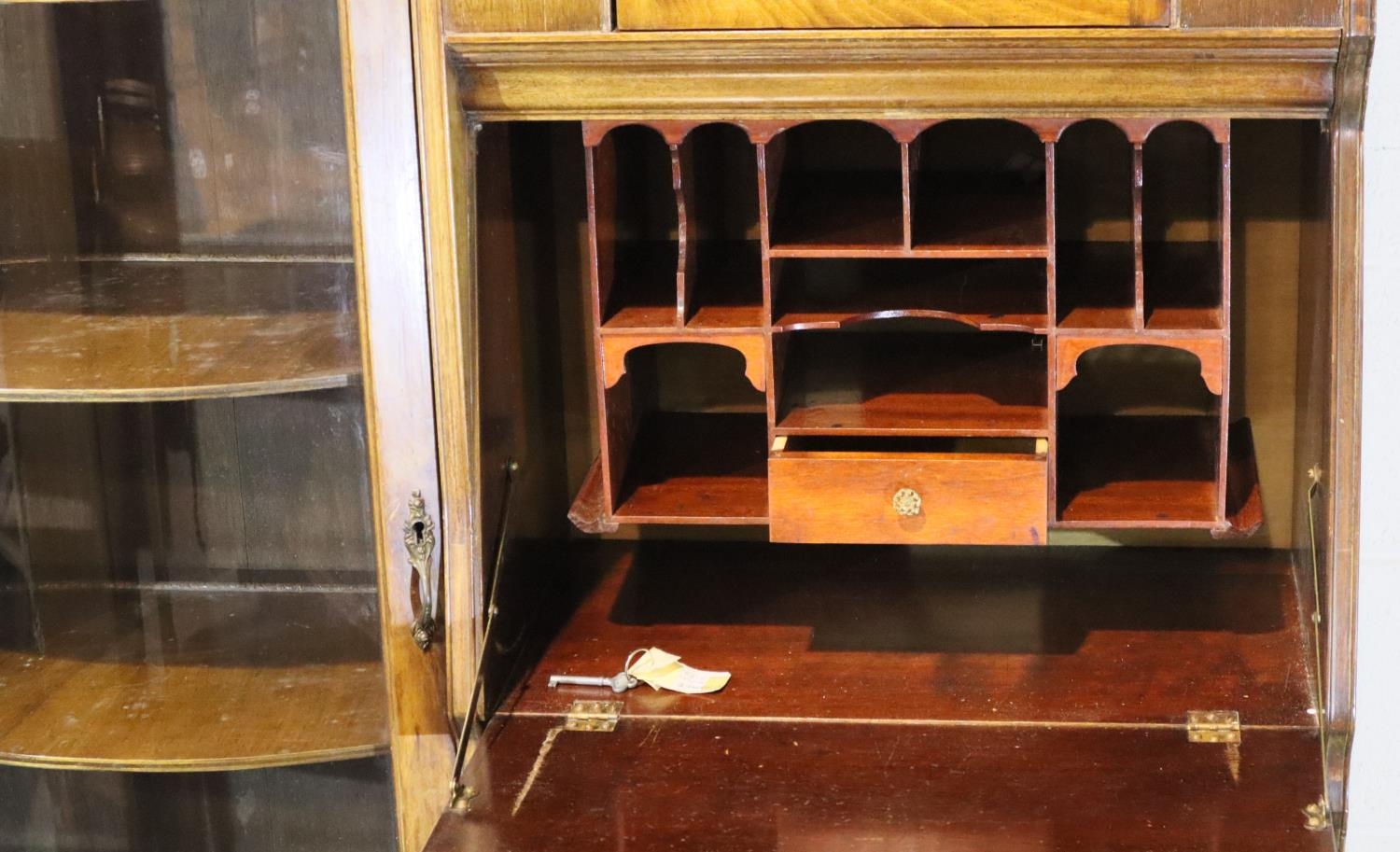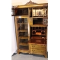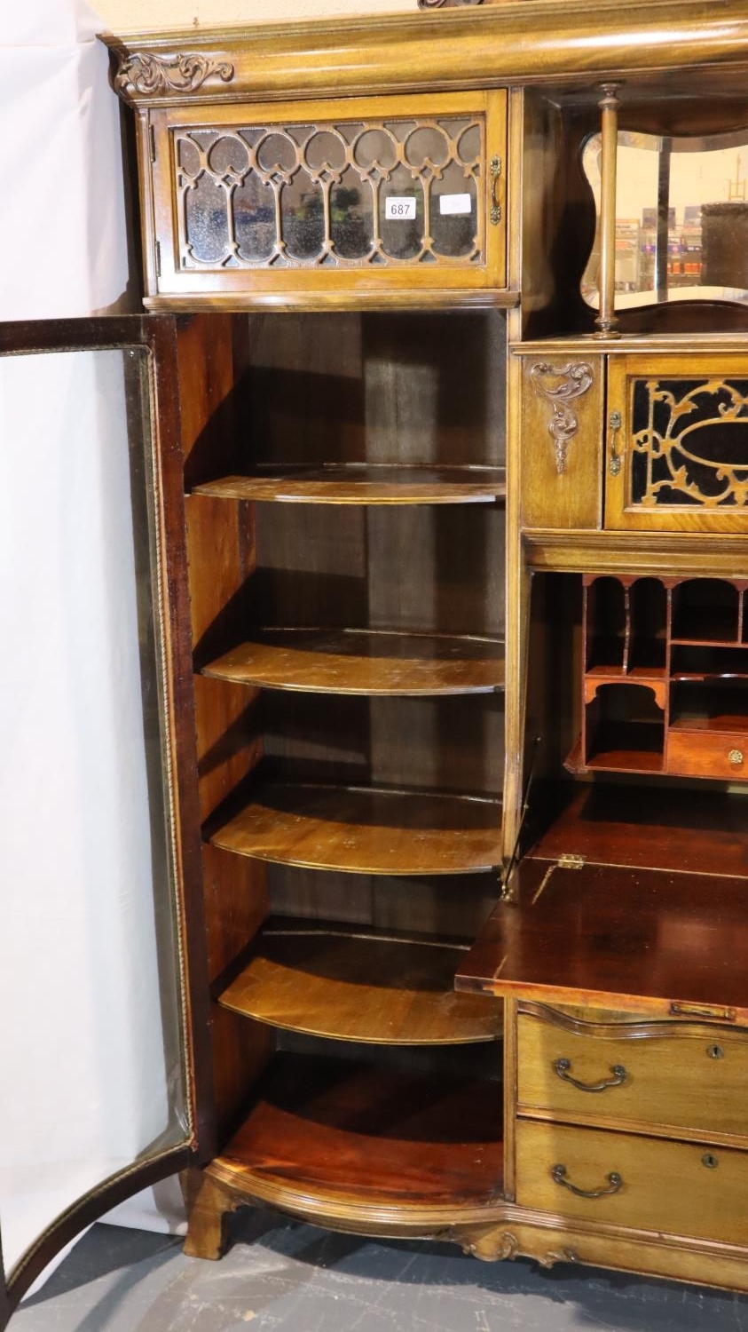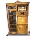 Good Edwardian combination inlaid display cabinet with bow glazed door, serpentine chest and fitted fall front bureau, 106 x 34 x 177H cm. Not available for in-house P&P, contact Paul O'Hea at Mailboxes on 01925 659133
