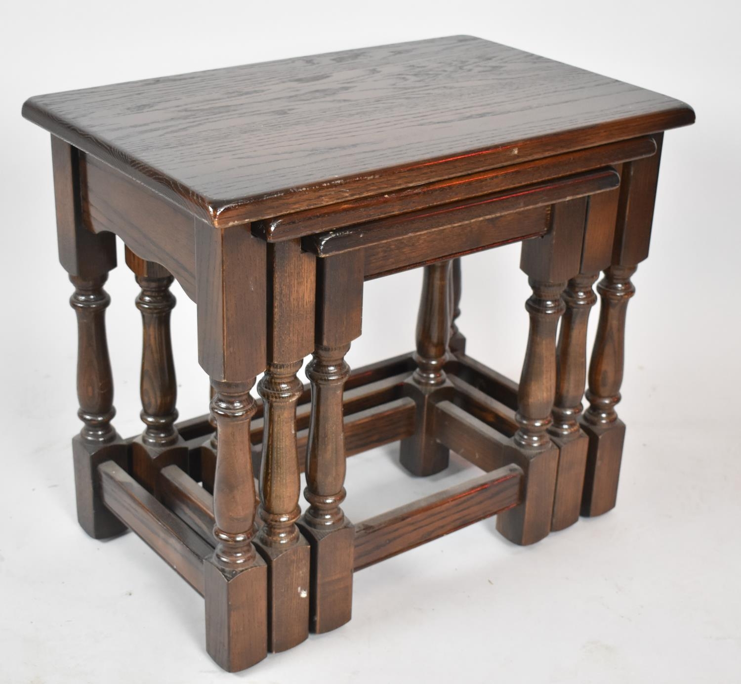 A Mid 20th Century Nest of Three Oak Tables, The Largest 55cm wide