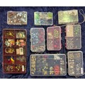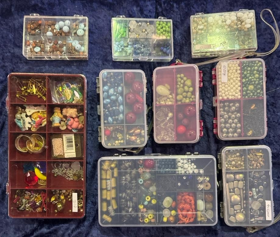 Nine boxes of different type and colour beads.