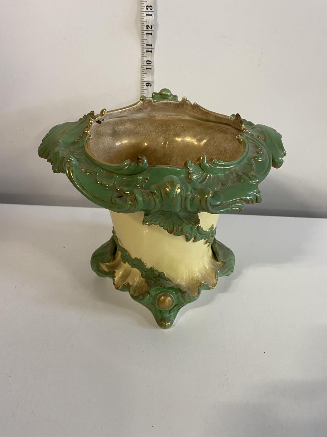 A 19th century Coalport Green and Yellow ceramic planter, shipping unavailable