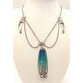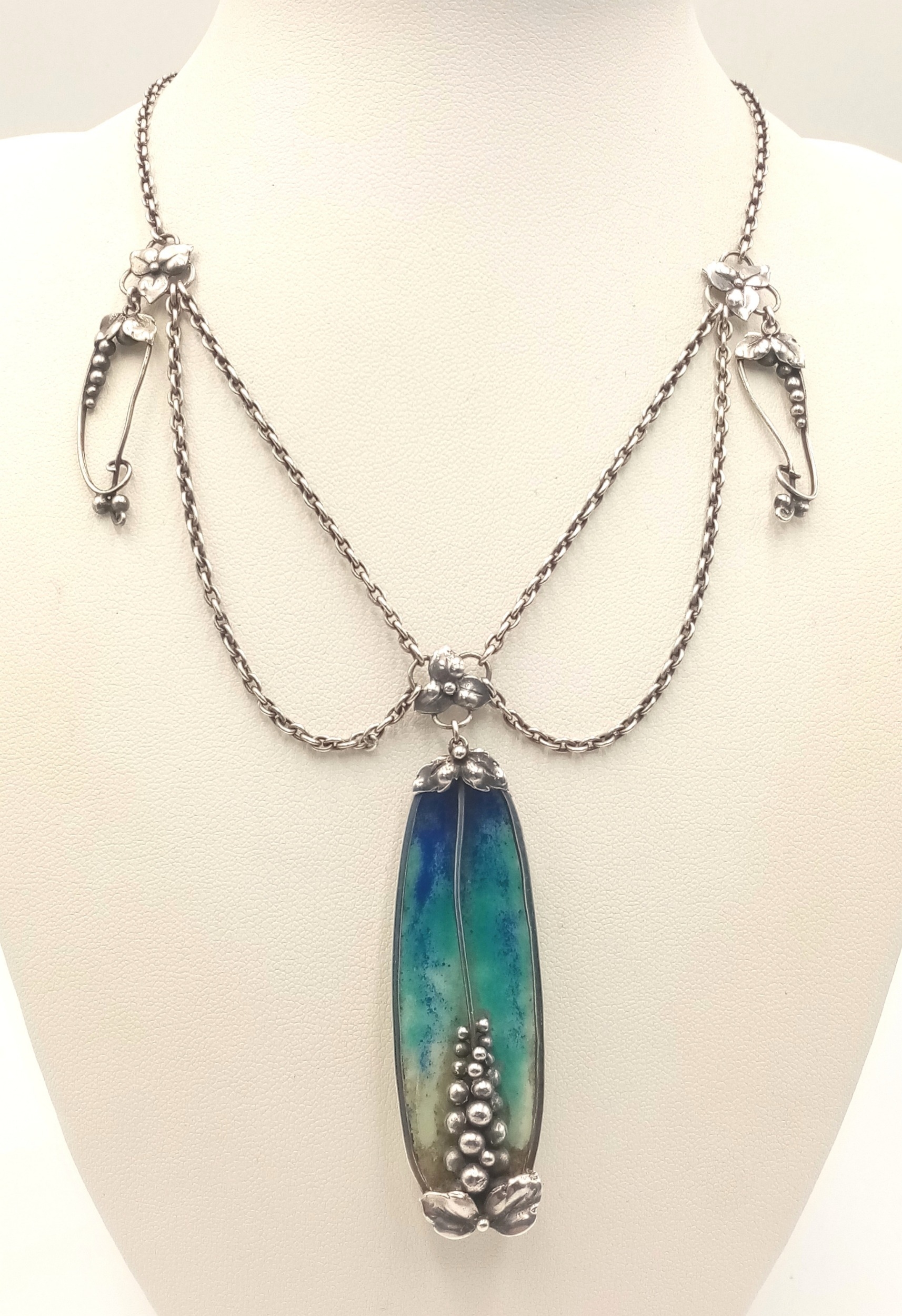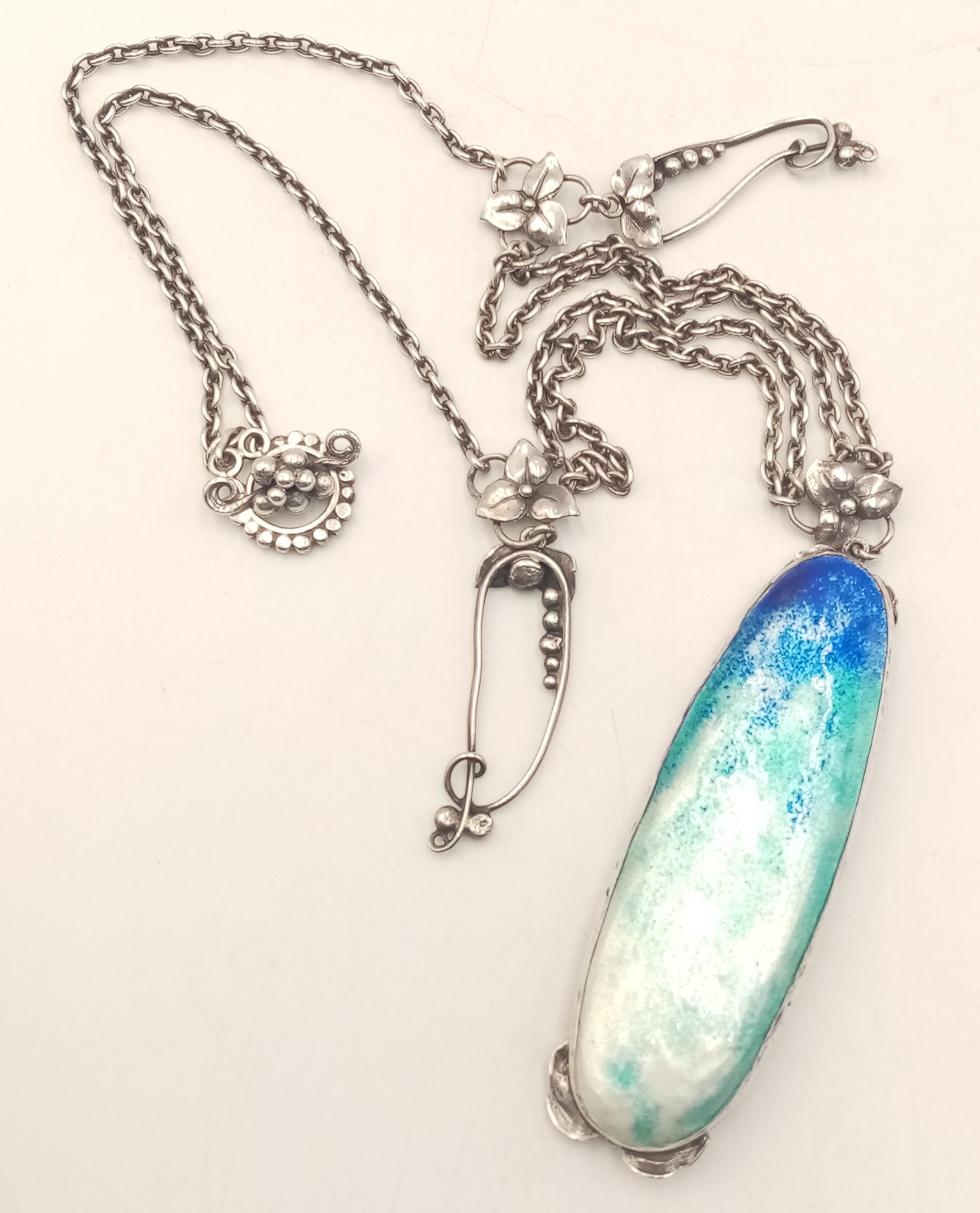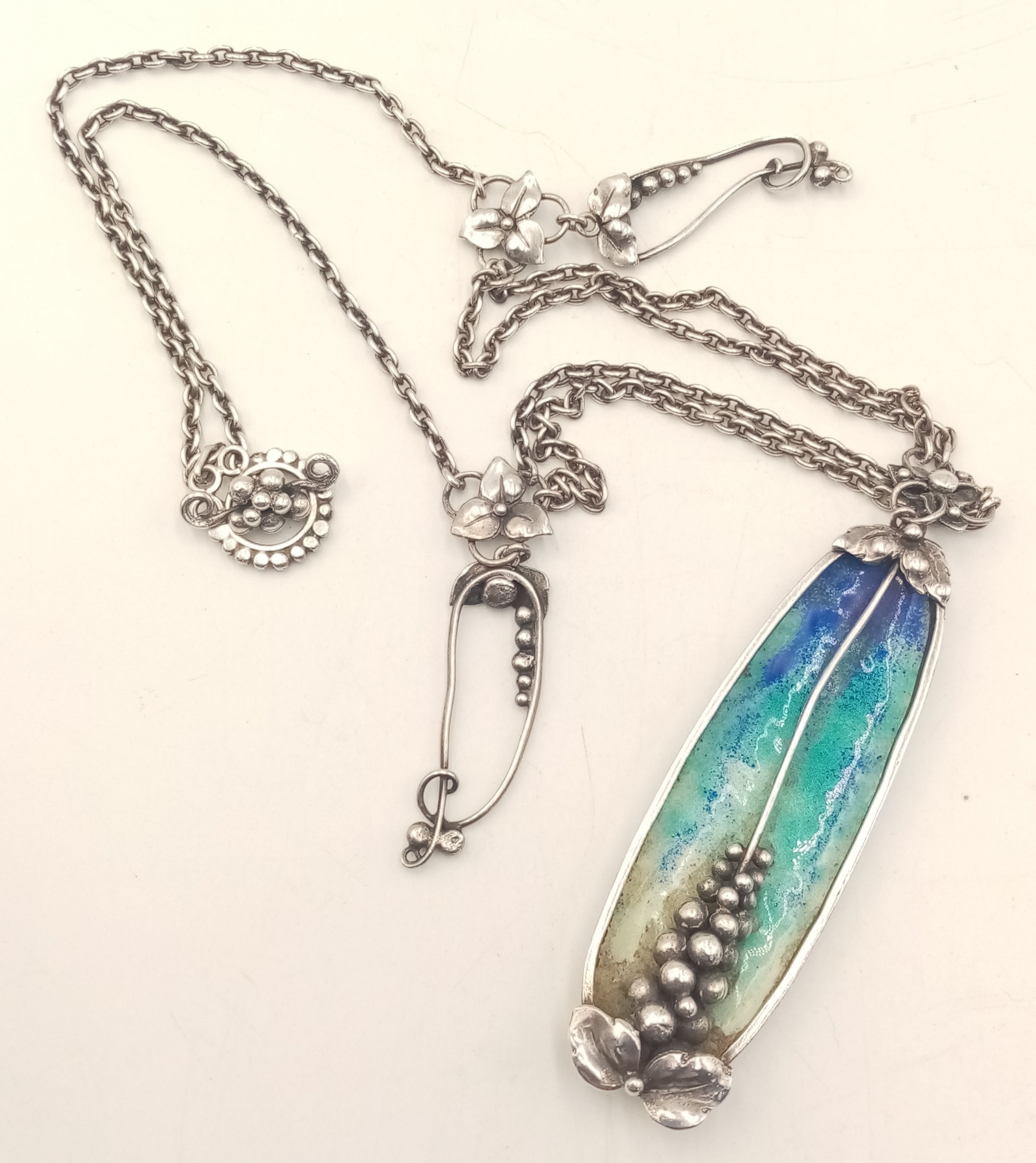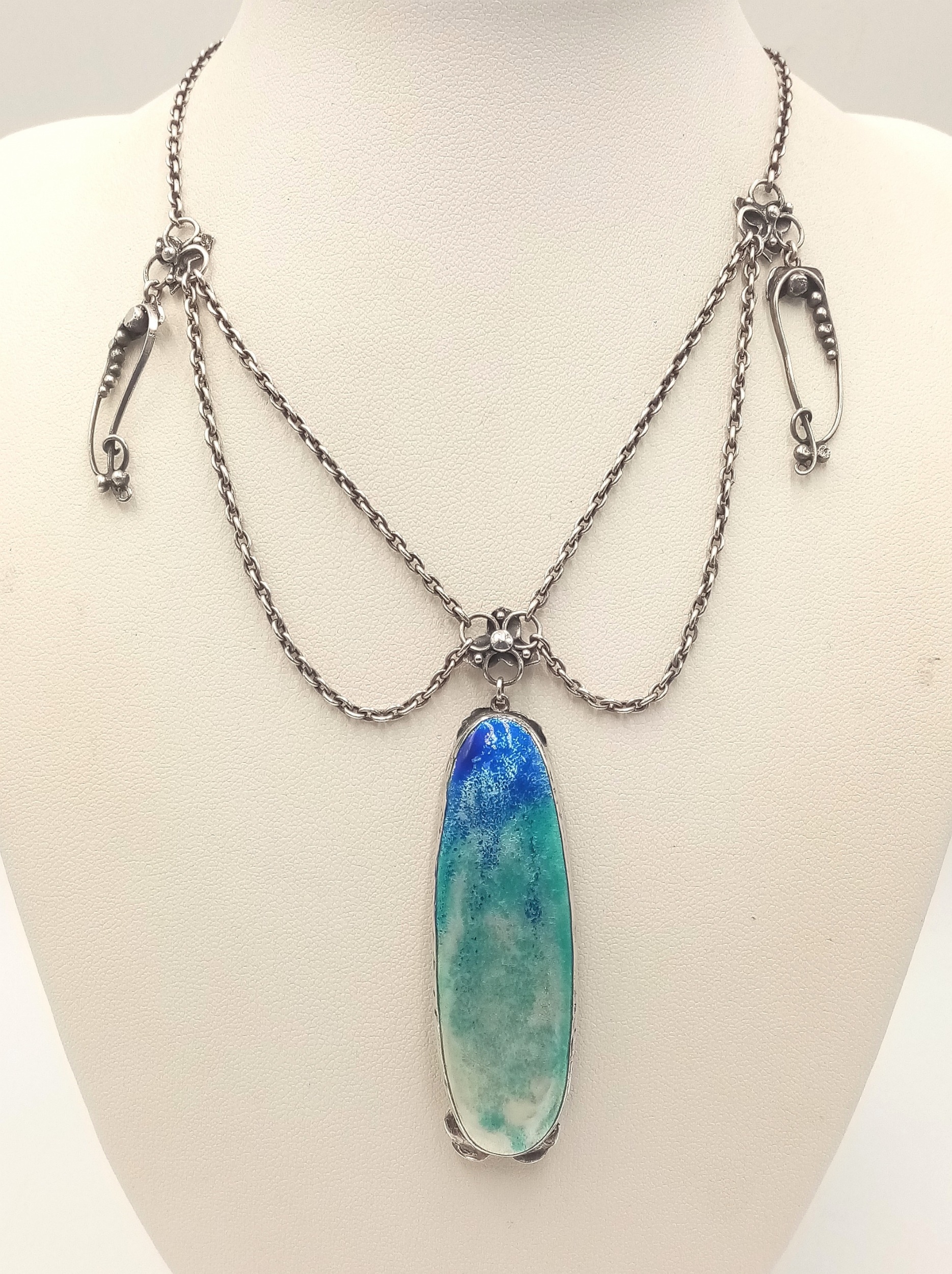 A stunning silver enamelled pendant, set on a silver necklace. Total weight 27.1G, total length 42cm. Please see photos for details.