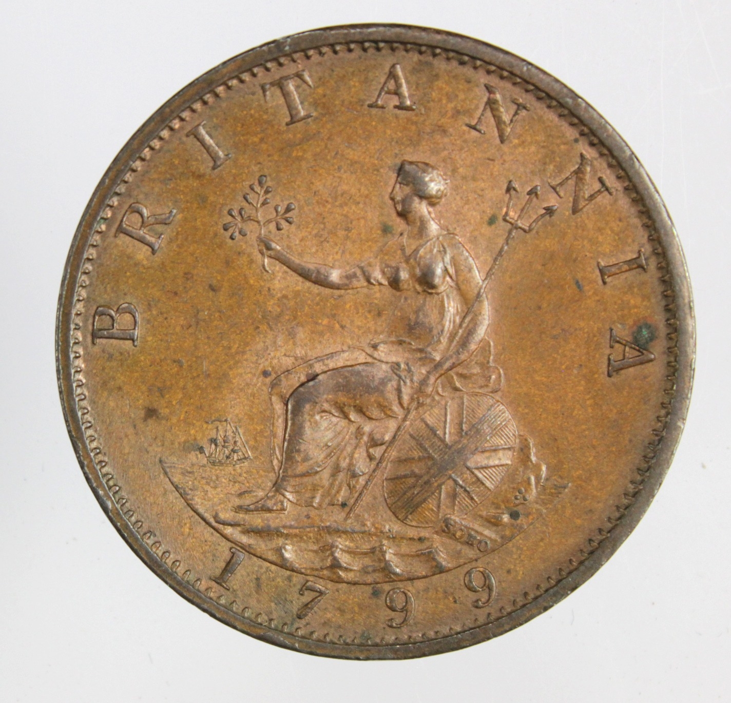 Halfpenny 1799 5 incuse gunports, EF trace lustre.