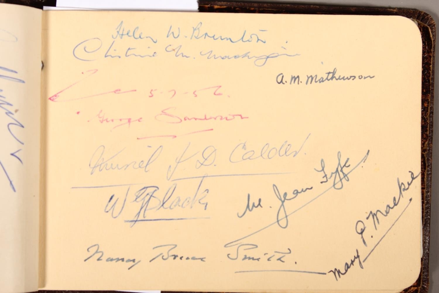 Autograph book containing signatures from mainly the 1960's to include The Beatles, Sydney Devine, Jimmy Shand, Dave Davies, Cliff Richards, also Football stars to include Willie Bauld, Chic Murray and others such as the astronaut John Glenn.