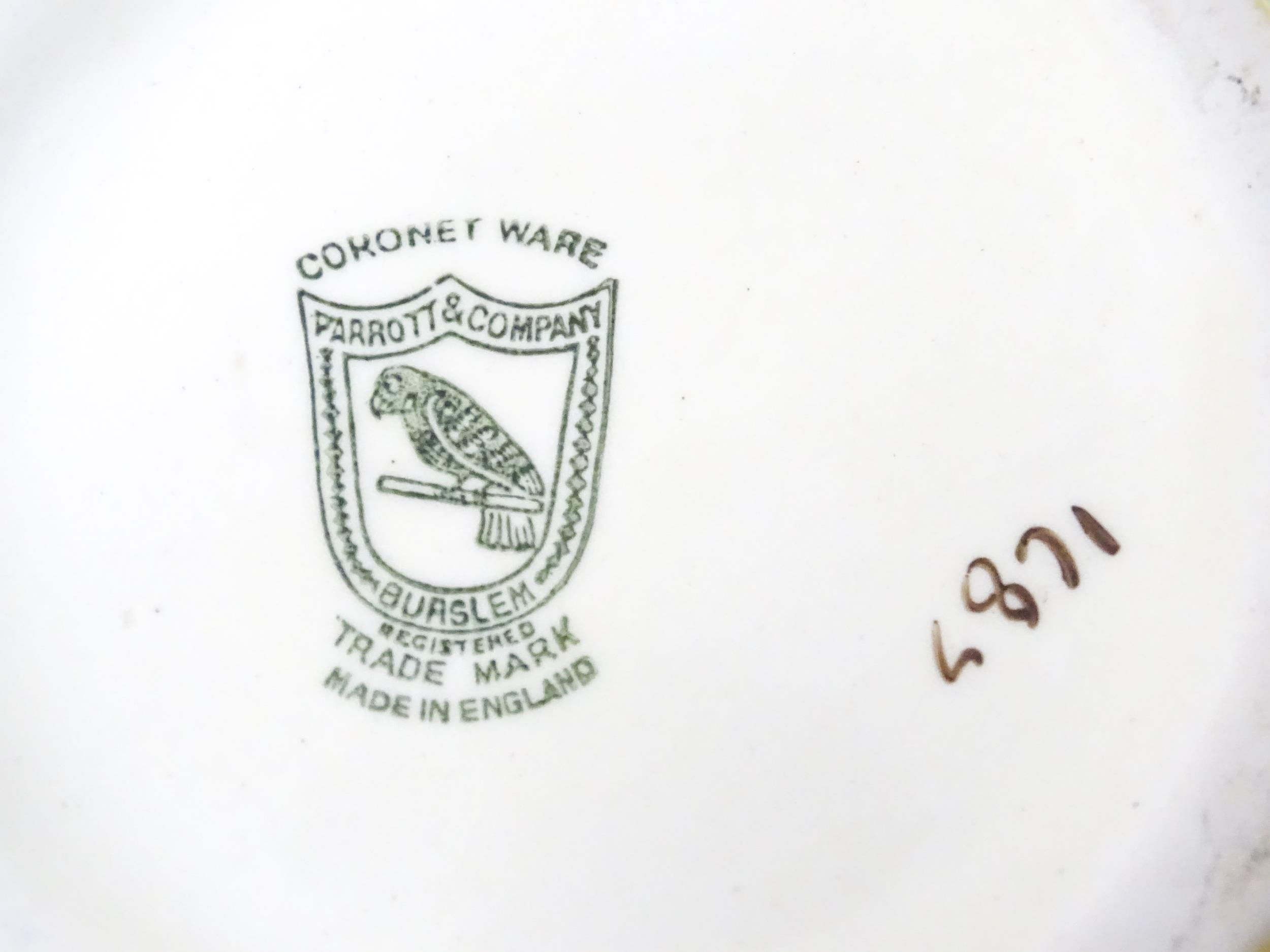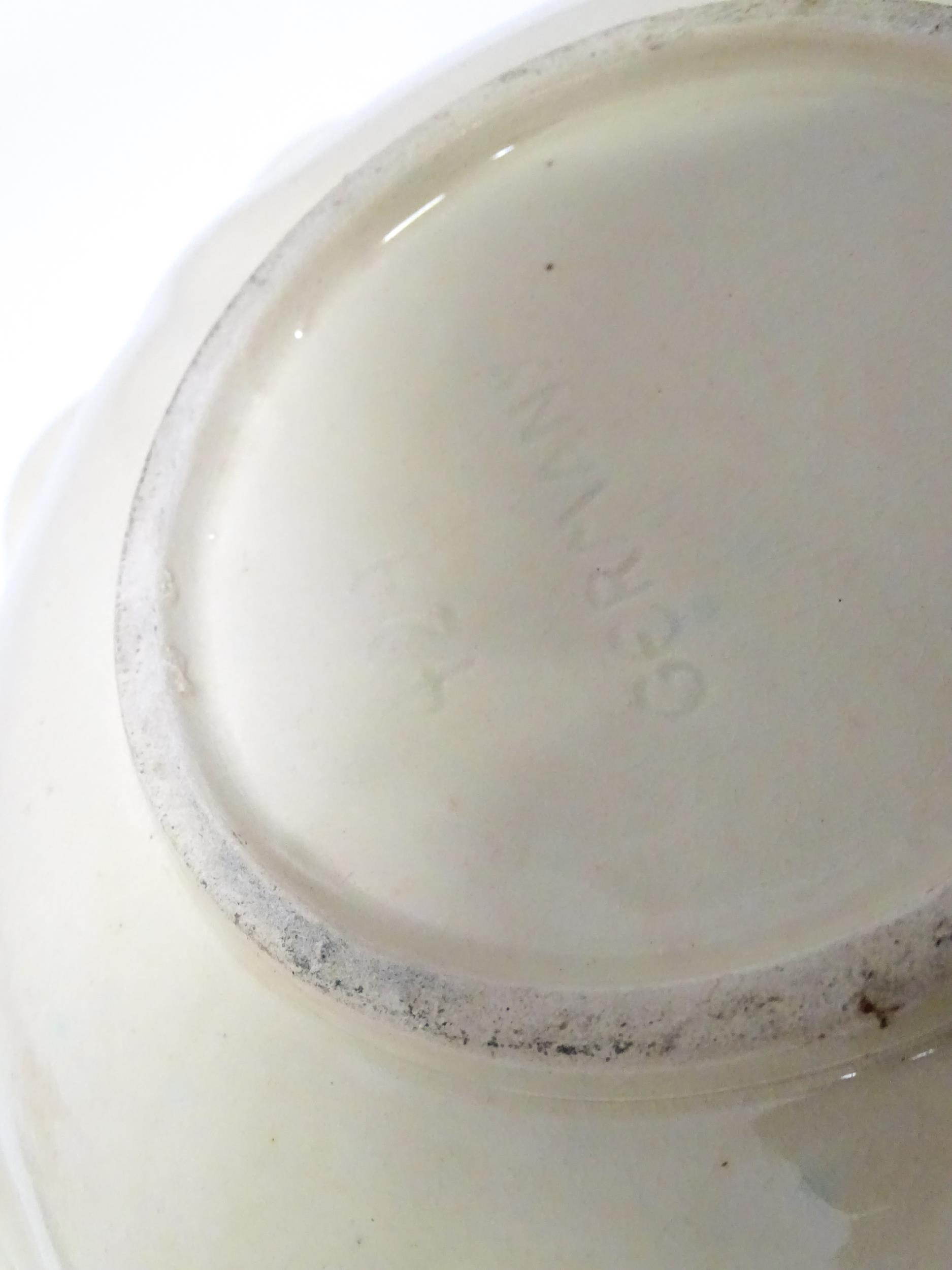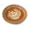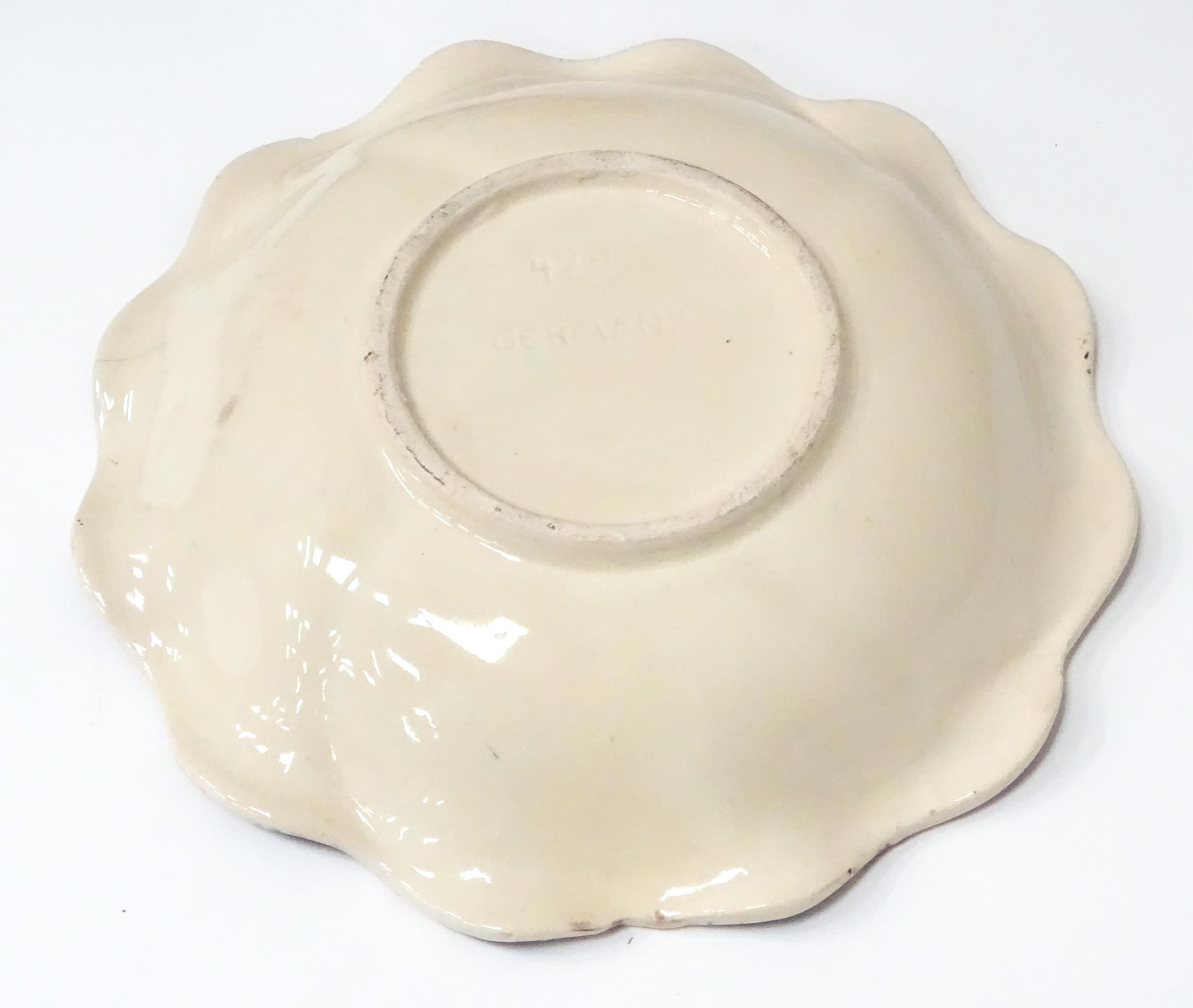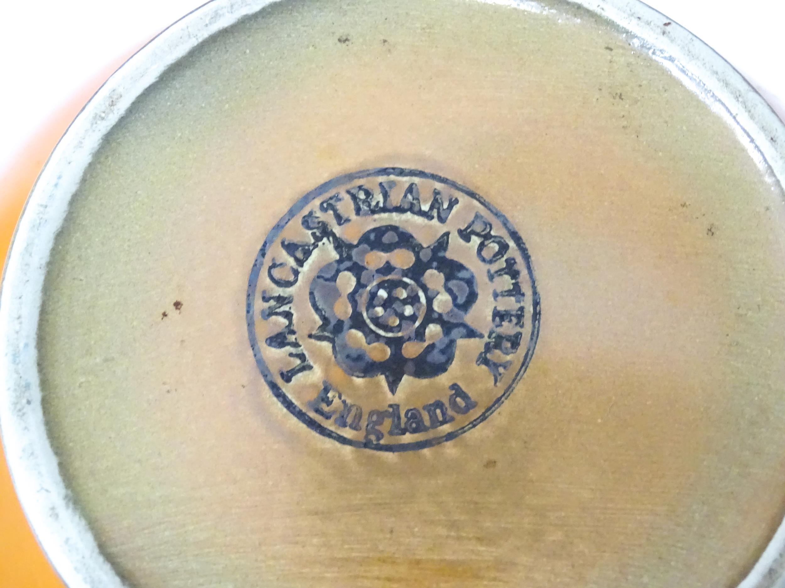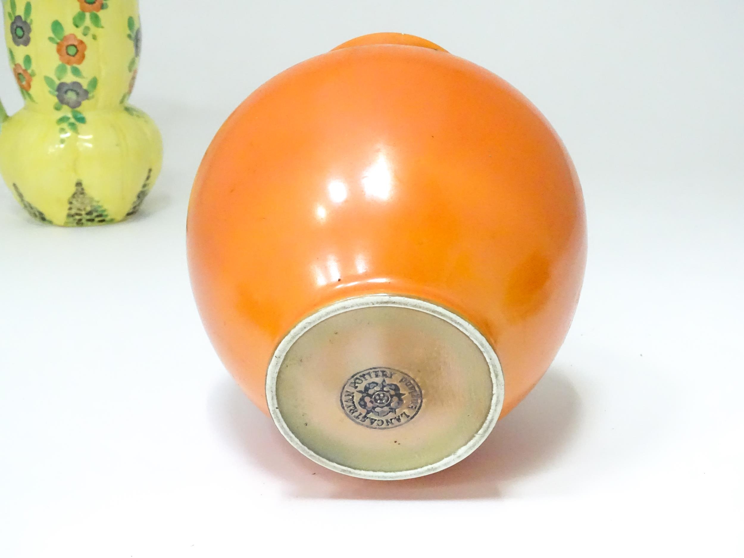 A quantity of assorted ceramics to include a majolica leaf plate and two saucers with foliate detail, two Gray's Pottery dishes with floral decoration, an orange Lancastrian vase, a terracotta charger with fish decoration, etc.