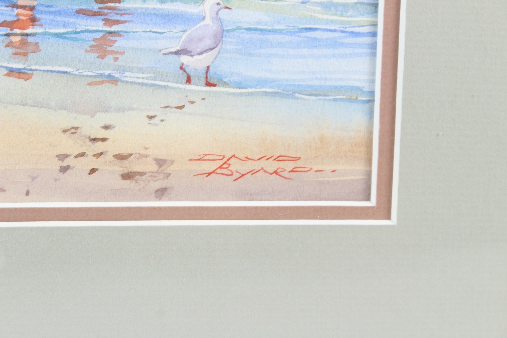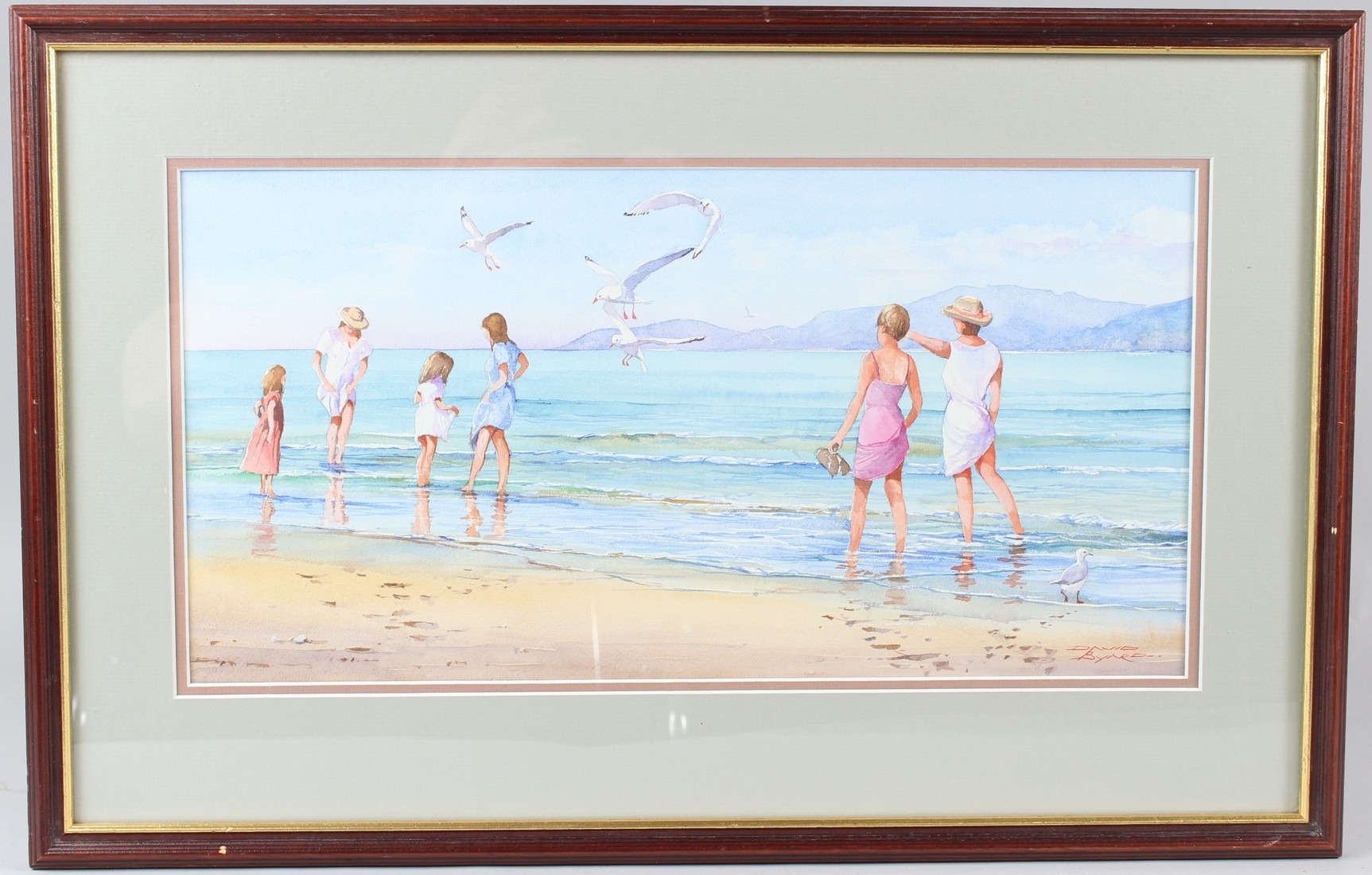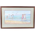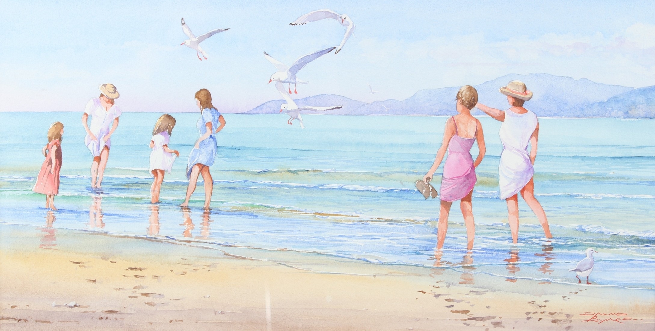 DAVID BYARD (b.1943) Paddlers on a beach watercolour signed 22.5 x 44.5cm