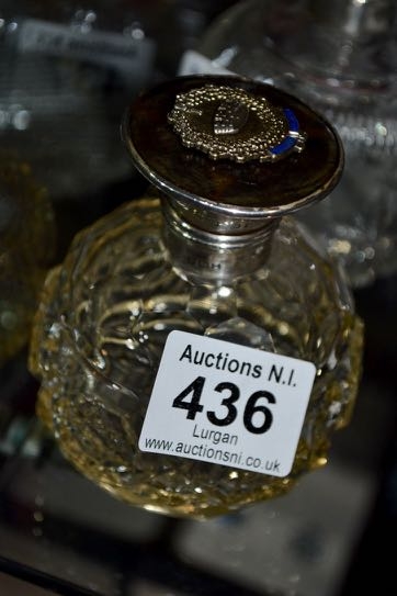 Silver Collar & Capped Vintage Bottle with Prodesse Civisus Emblem on Tortoiseshell Style Top (Hinge Broken on Cap)