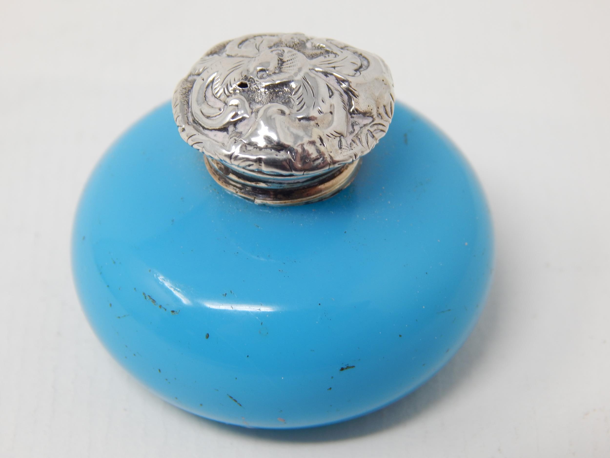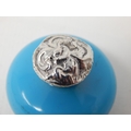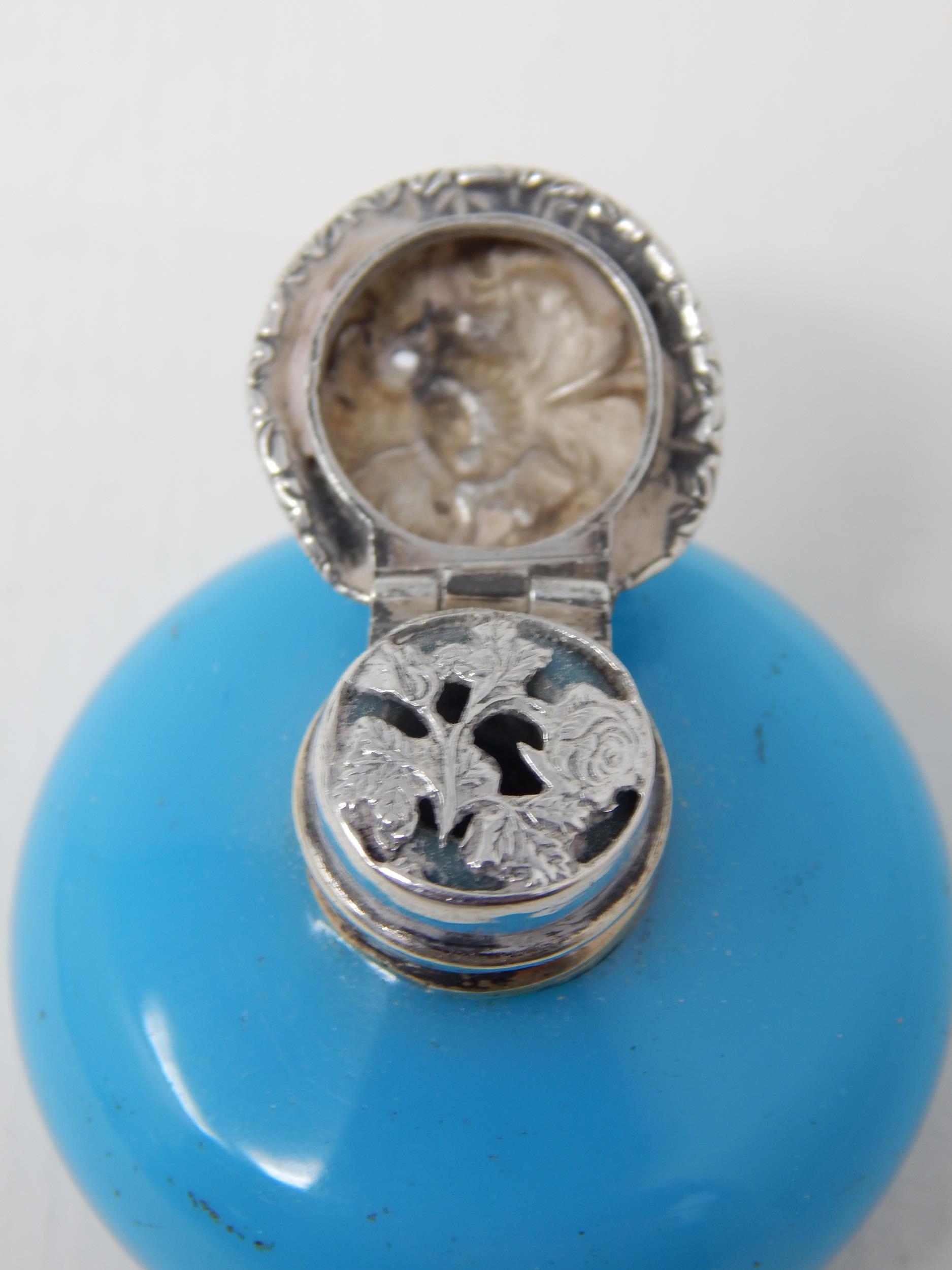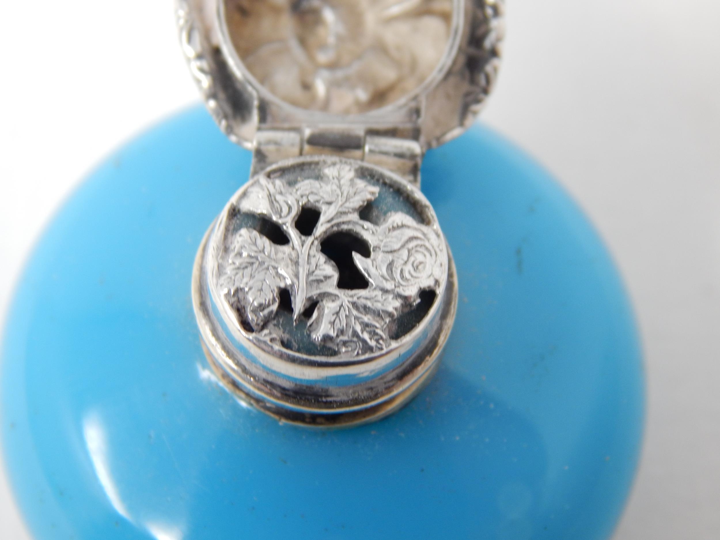 19th Century Continental Silver Mounted Vinaigrette with Sky Blue Turquoise Hardstone Body, Probably from Iran.