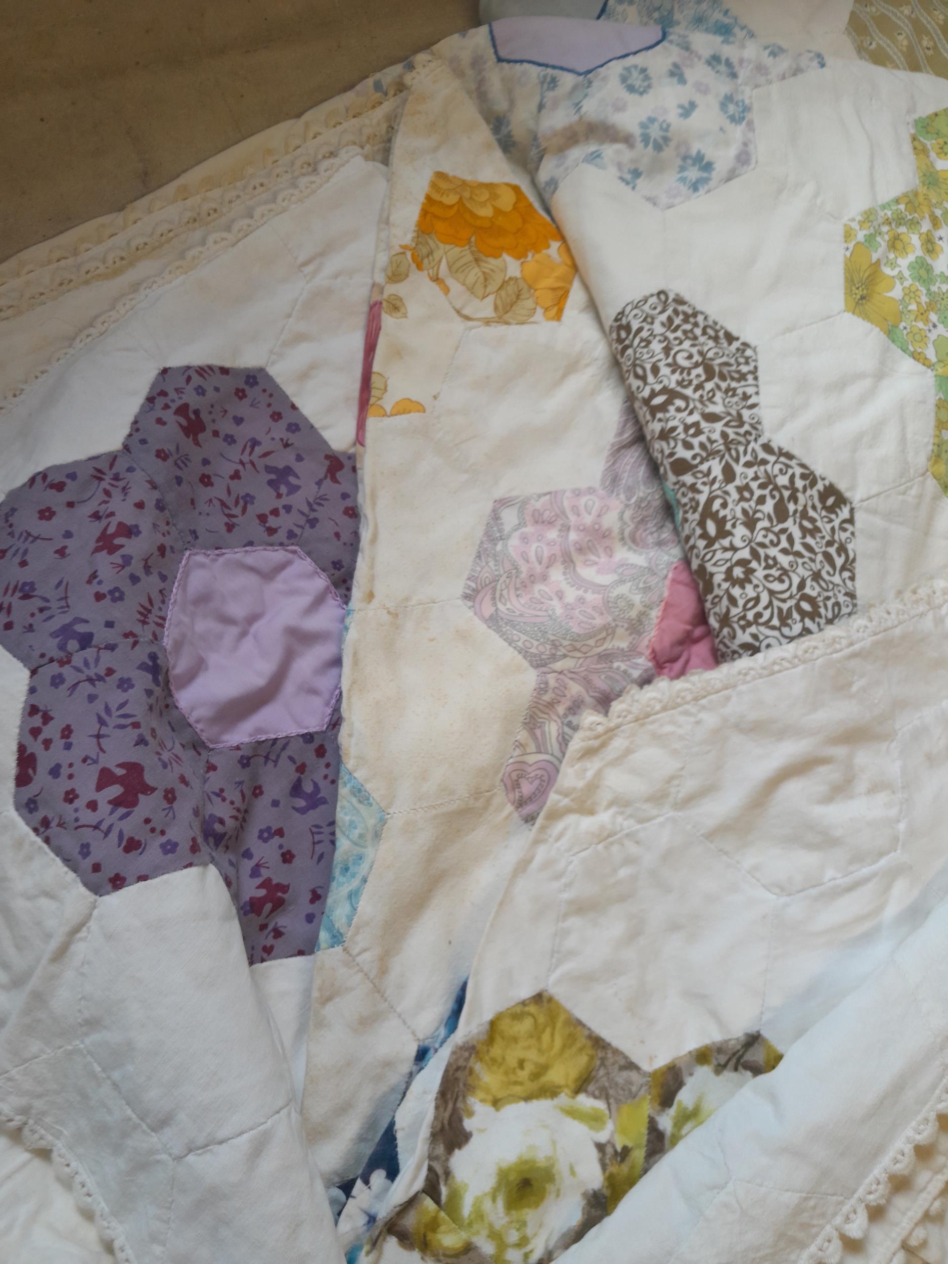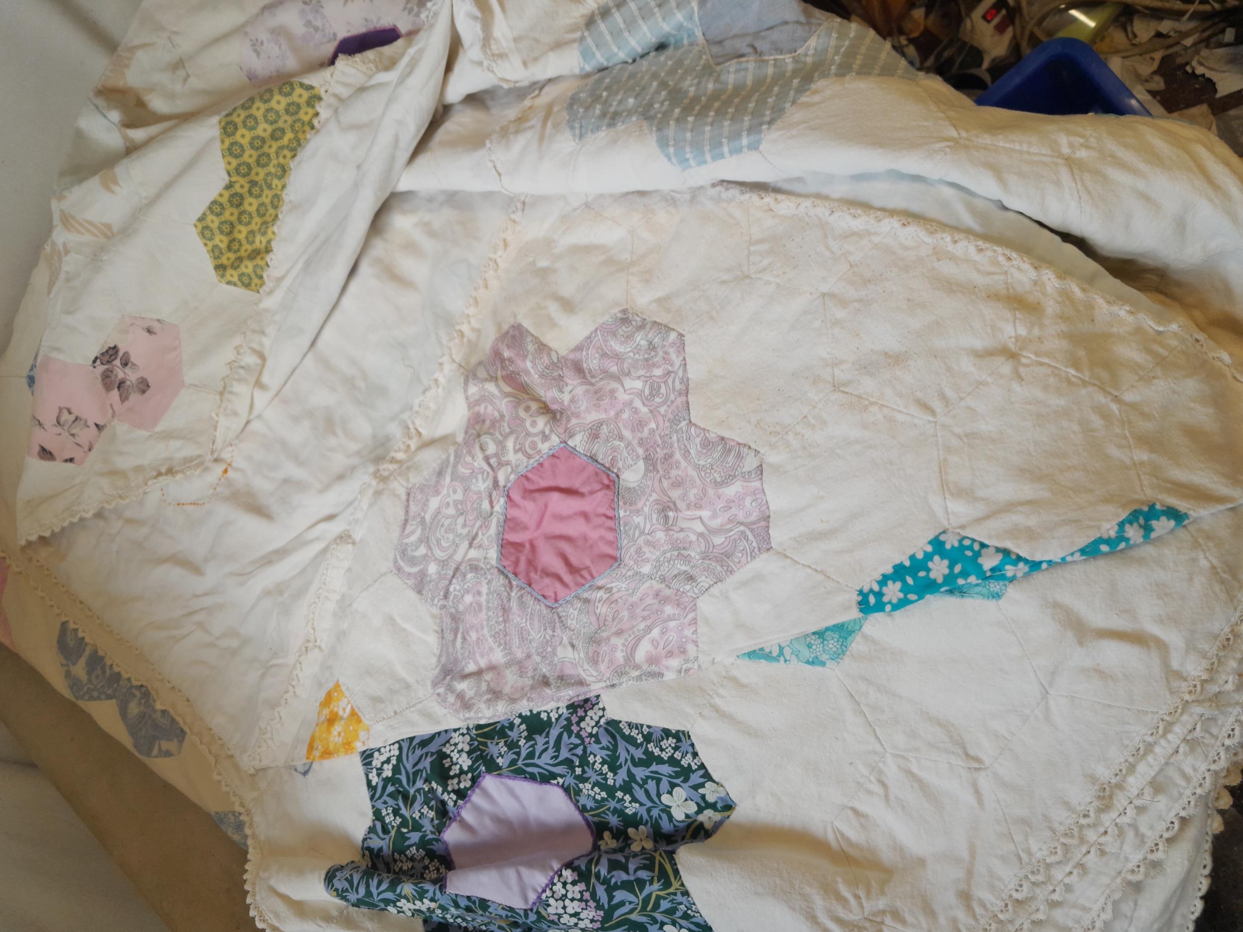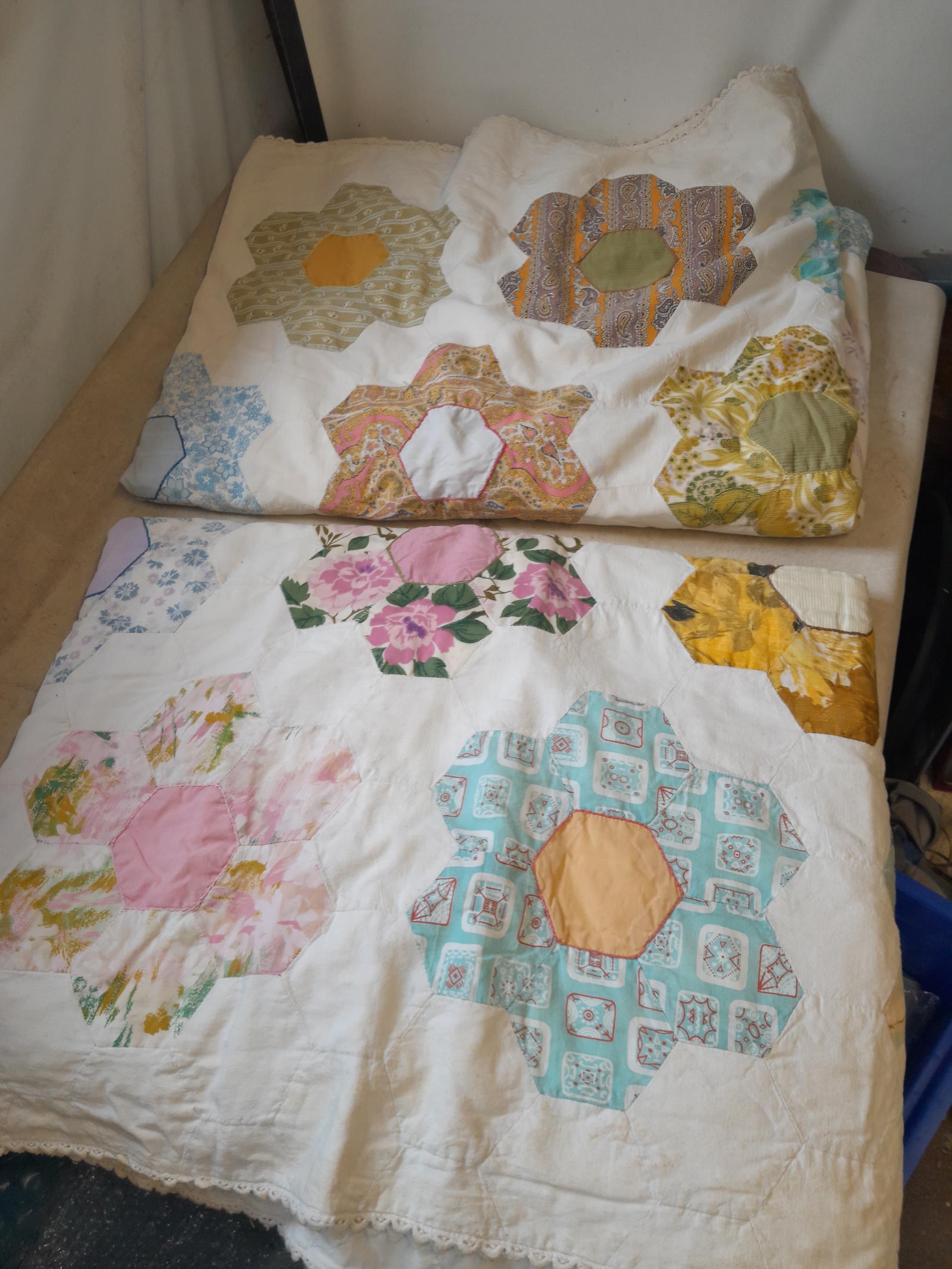 Vintage textiles : 2 x patchwork quilted bedspreads
