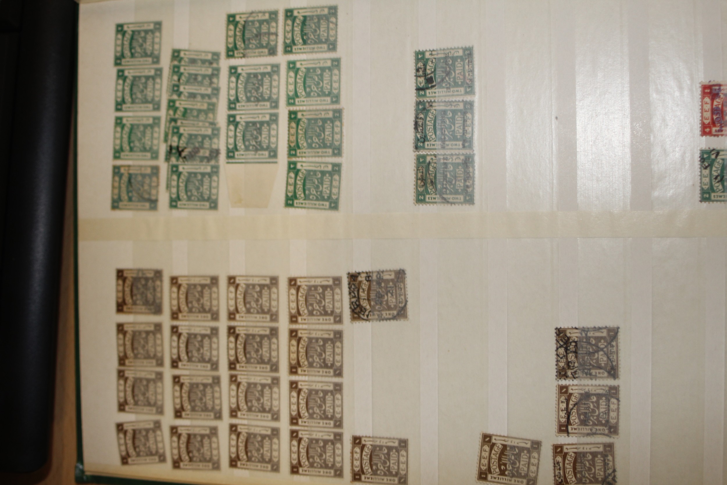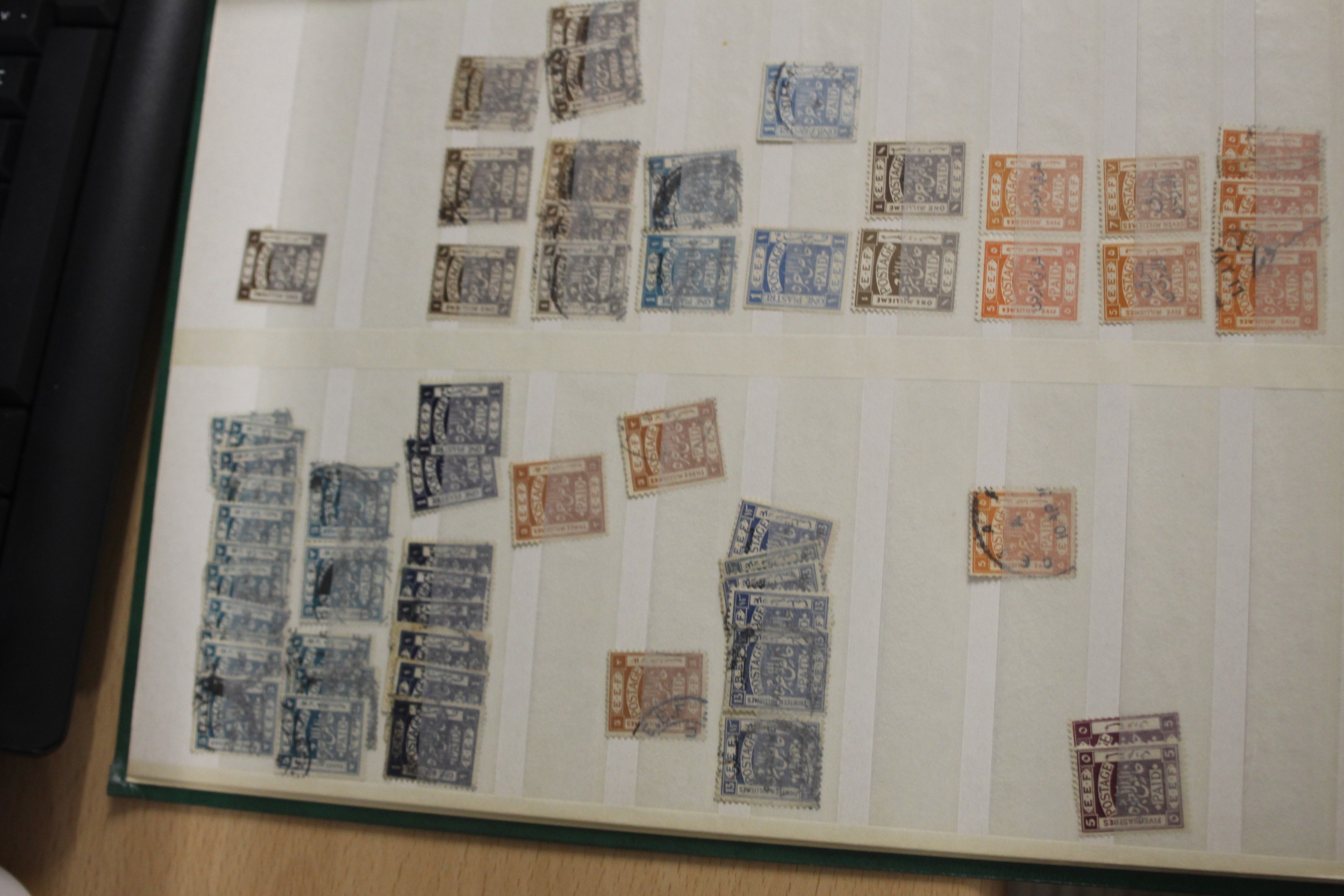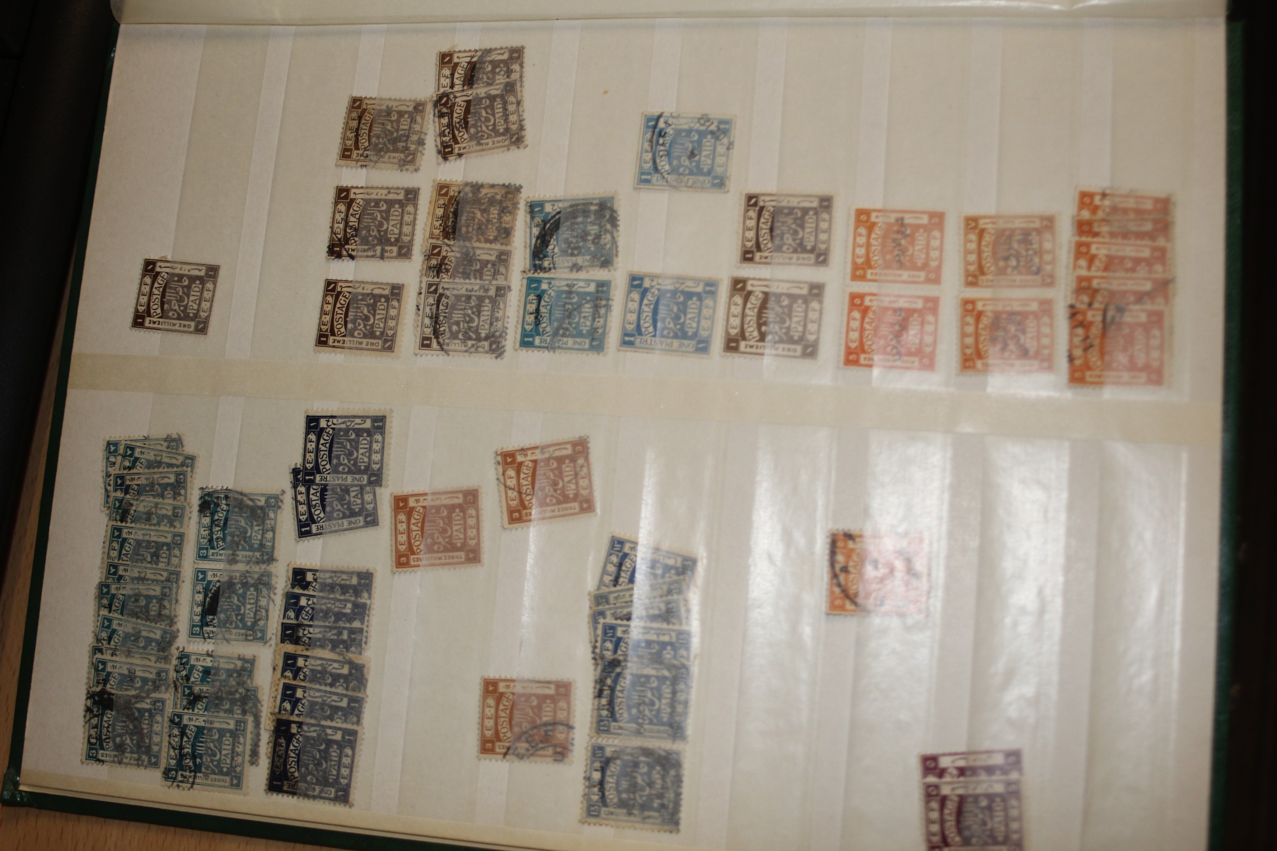 One A4 Stockbook of Palestine (Egyptian Expeditionary Force) Palestine British Mandate (1919-1948) definitive used stamps- about ten pages. Comprehensive 1920-1927 issues