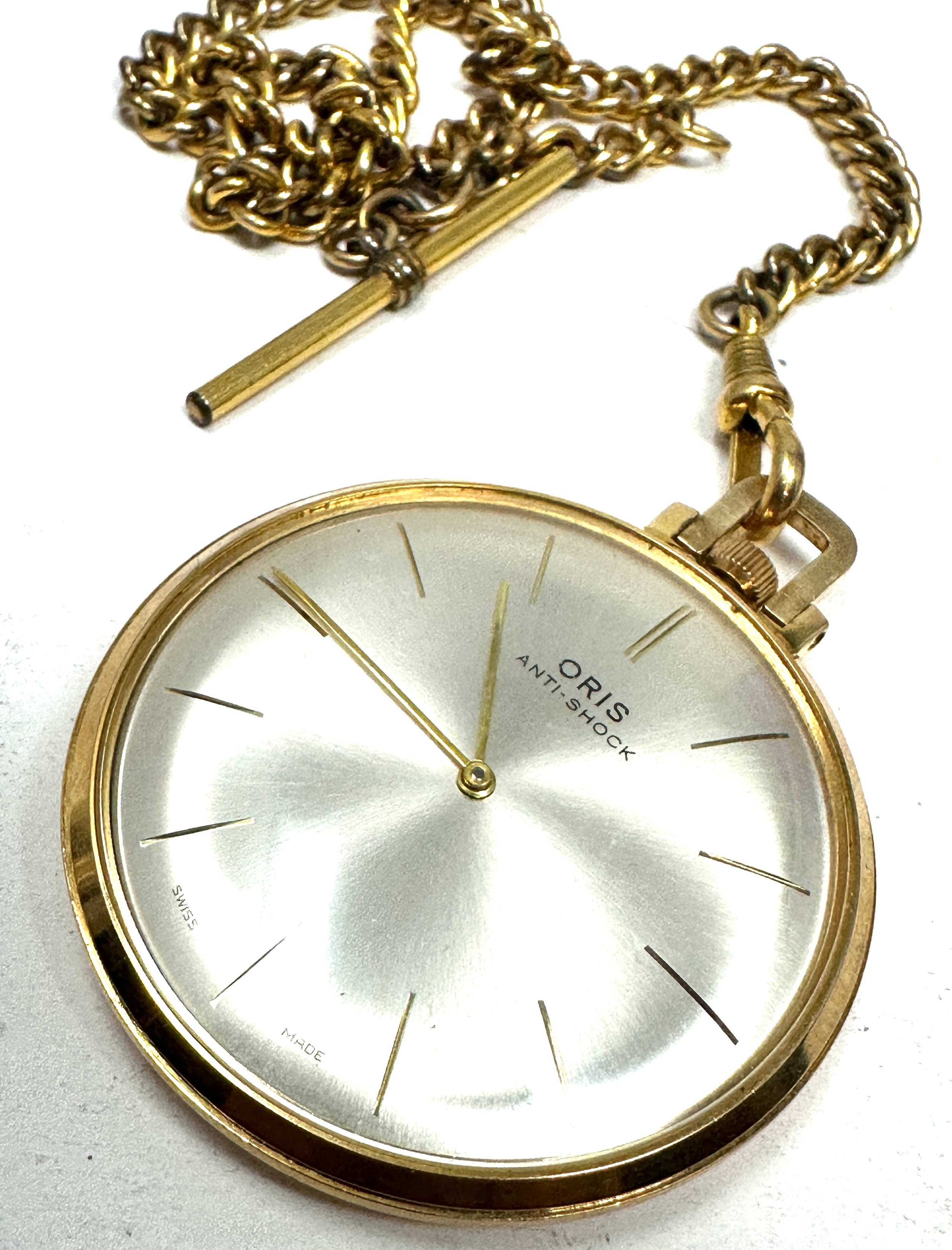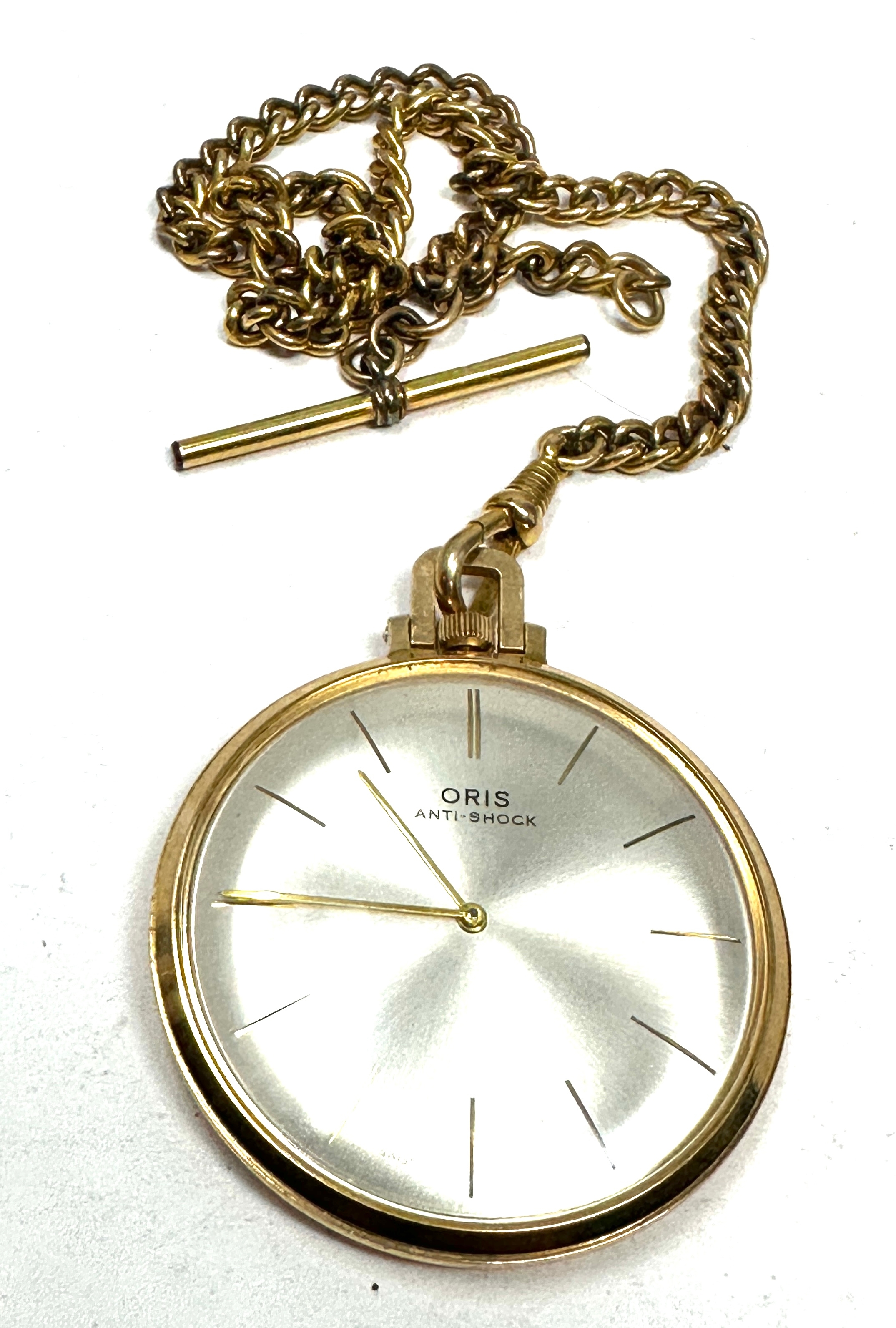 vintage oris slimline pocket watch & chain in working order gold plated